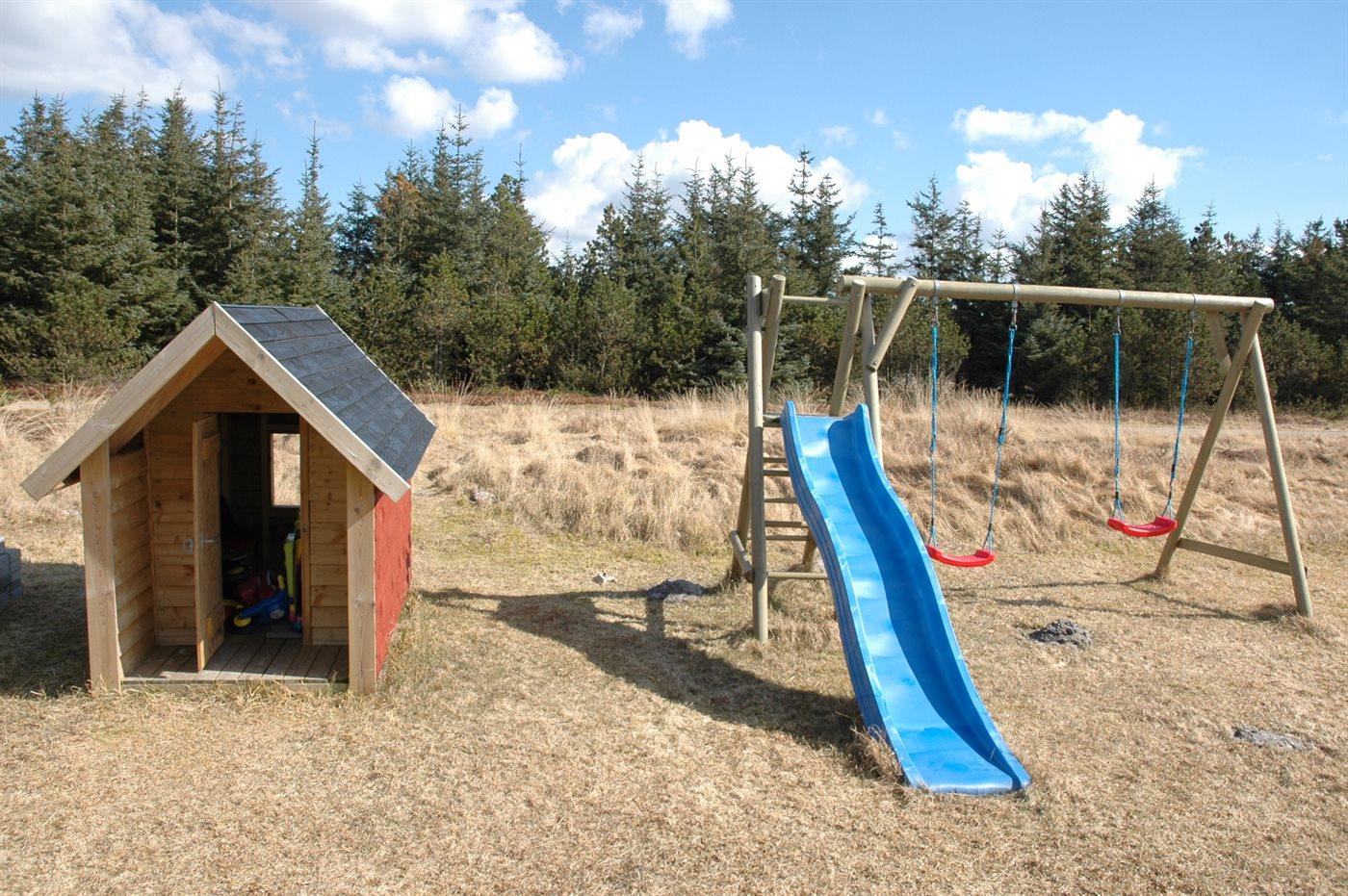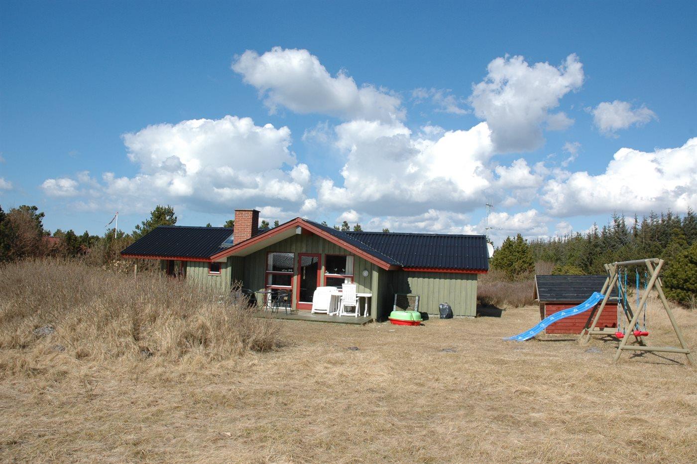 Ferieboligen er beliggende på en 2490 m² stor naturgrund. Der er 1000 m til havet. Nærmeste forretning er beliggende i en afstand af 500 m. Til ferieboligen hører 36 m² terrasseareal. Desuden er der 19 m² overdækket terrasse. Gynge. Legehus. Rutchebane. Parkering ved ferieboligen.