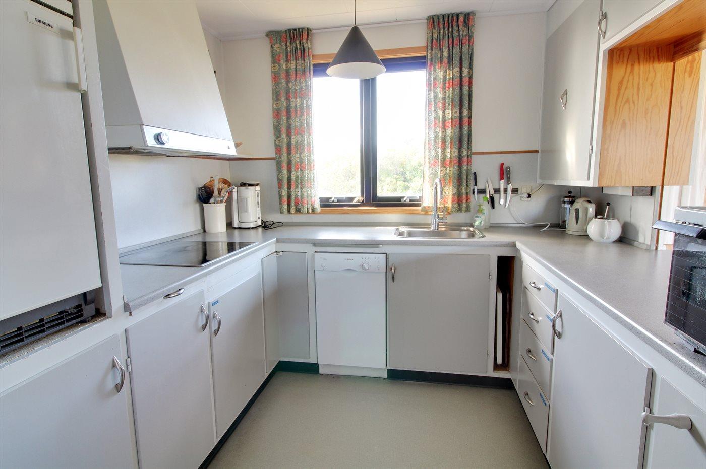 Køkkenet er udstyret med 1 køleskab. Der er 4 keramiske kogeplader. Kombineret miniovn og varmluftovn. samt opvaskemaskine.