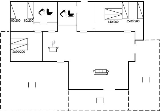 Der er i alt 2 soveværelser. Sovepladserne fordeler sig på: 2 sovepladser i dobbeltseng. 6 sovepladser i enkeltsenge.