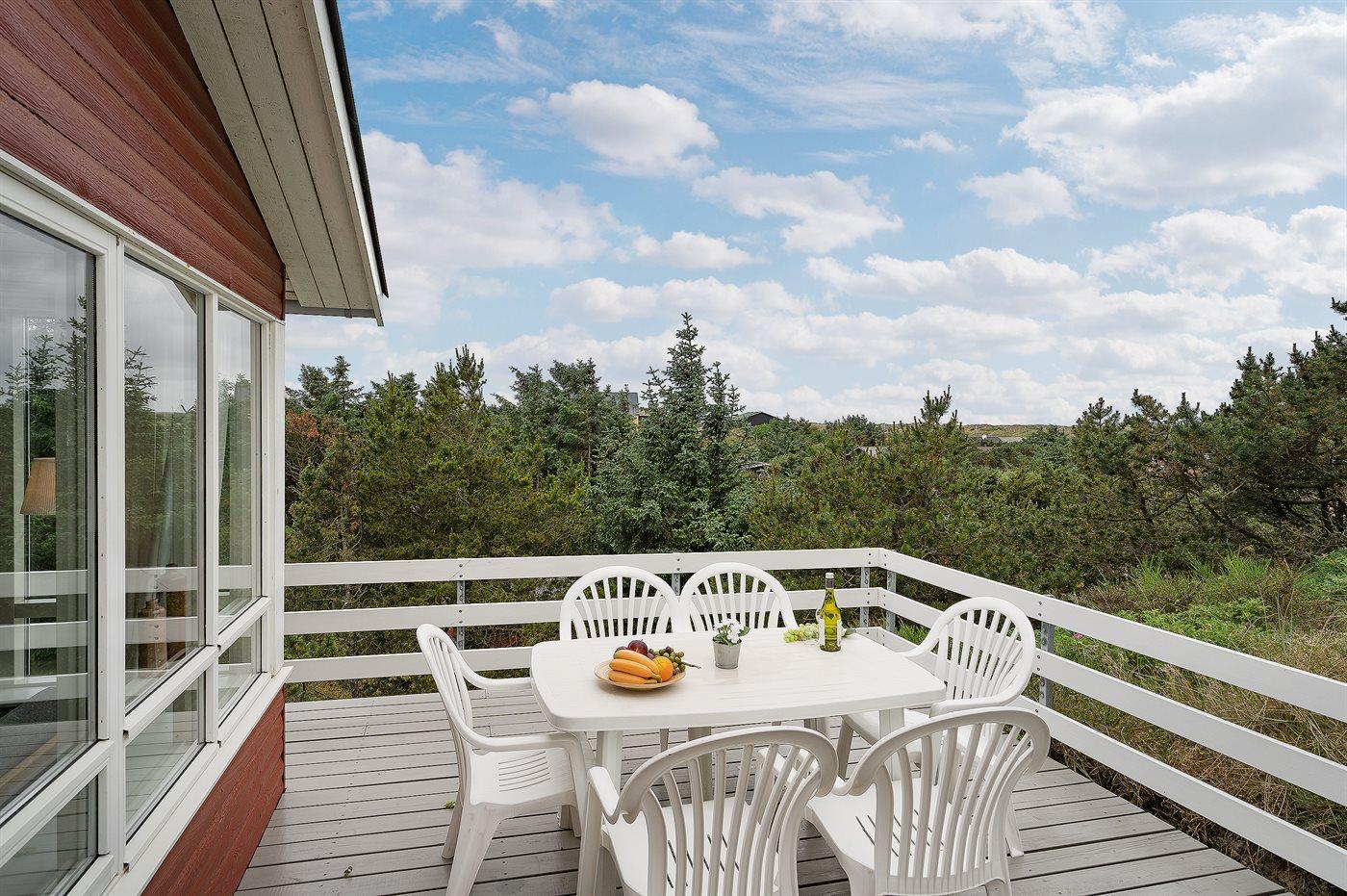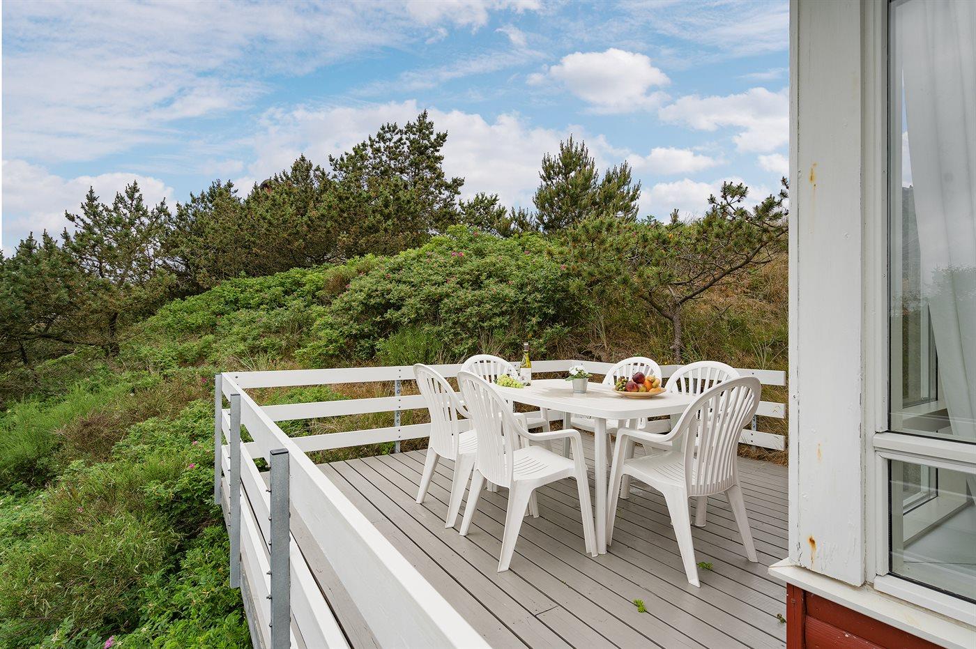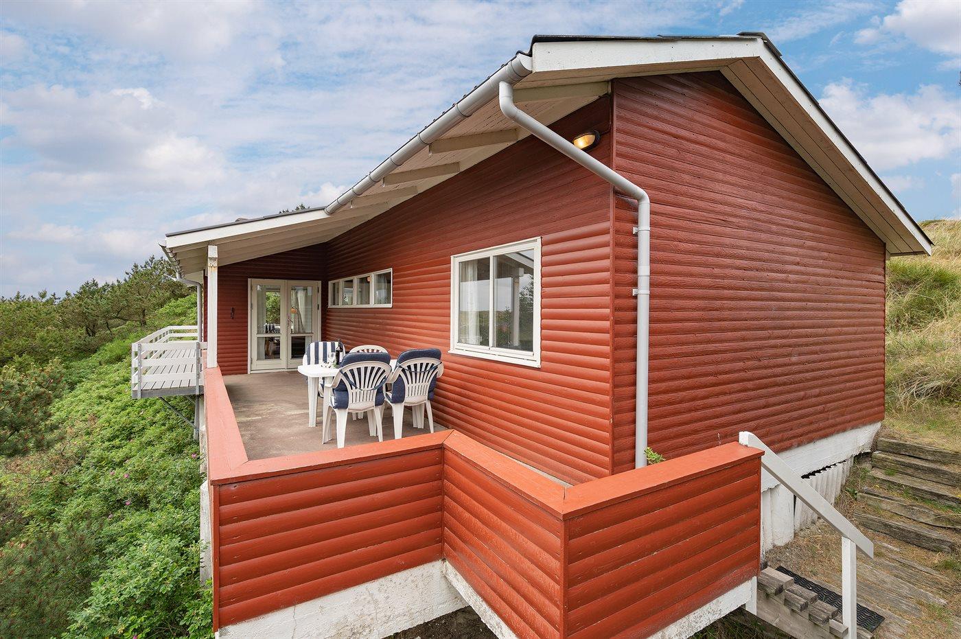 Hyggeligt sommerhus i Vejers Strand med flot udsigt og stor terrasse tæt på havet.