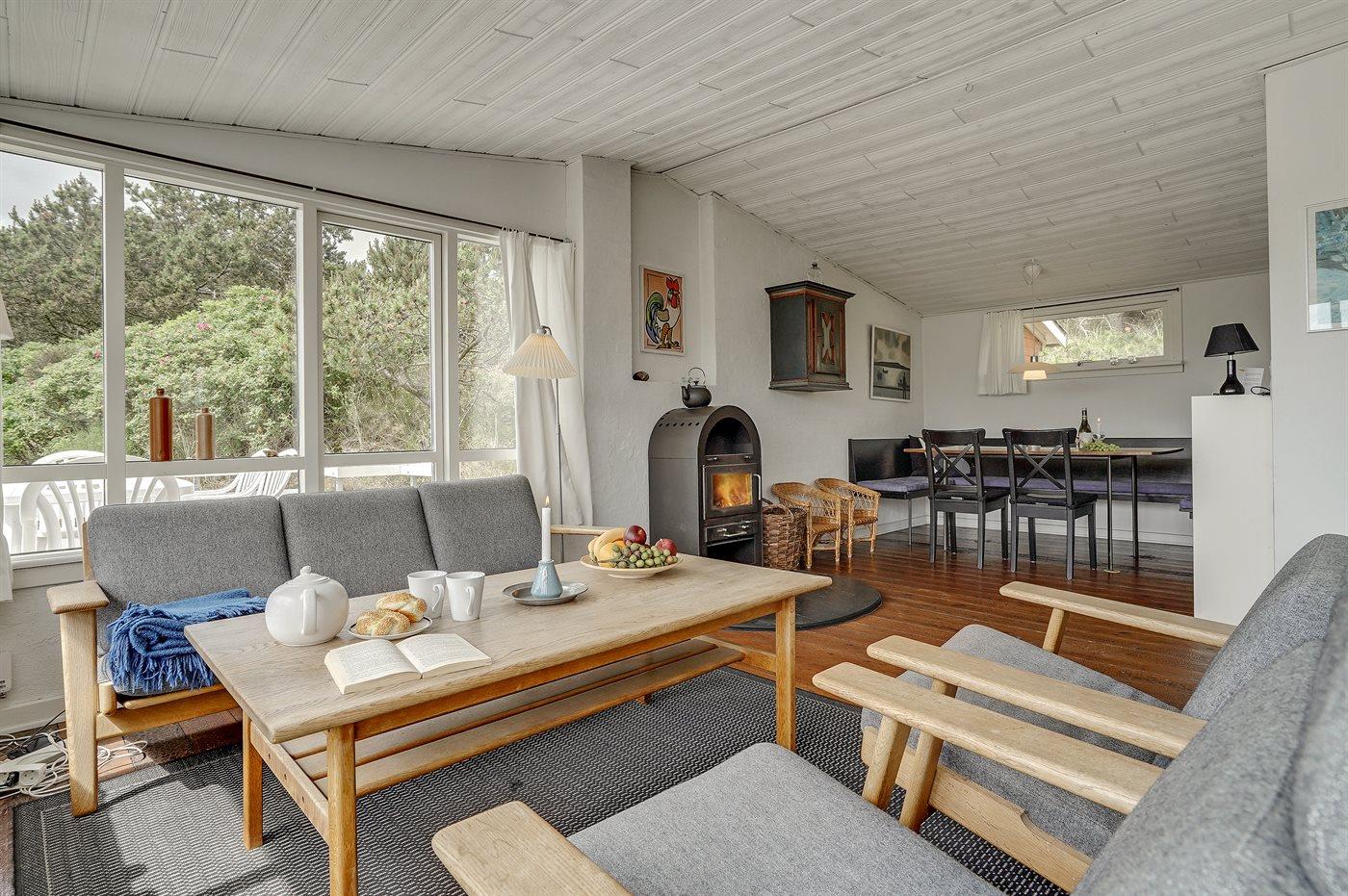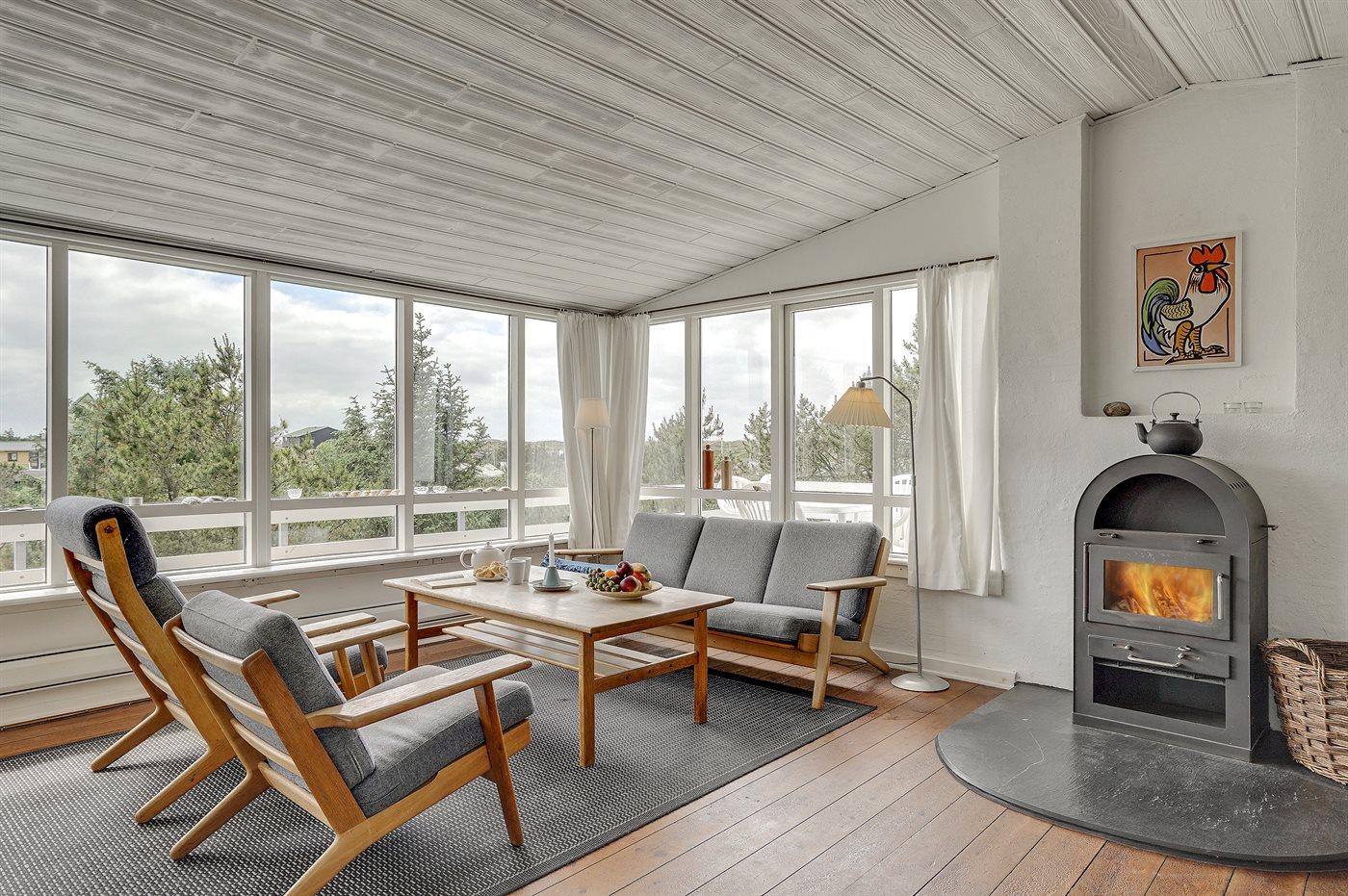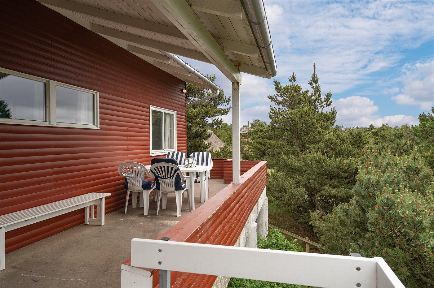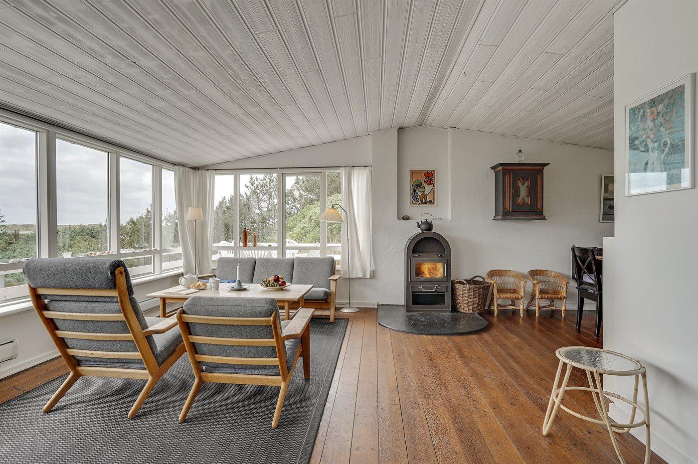 Hyggeligt sommerhus i Vejers Strand med flot udsigt og stor terrasse tæt på havet.