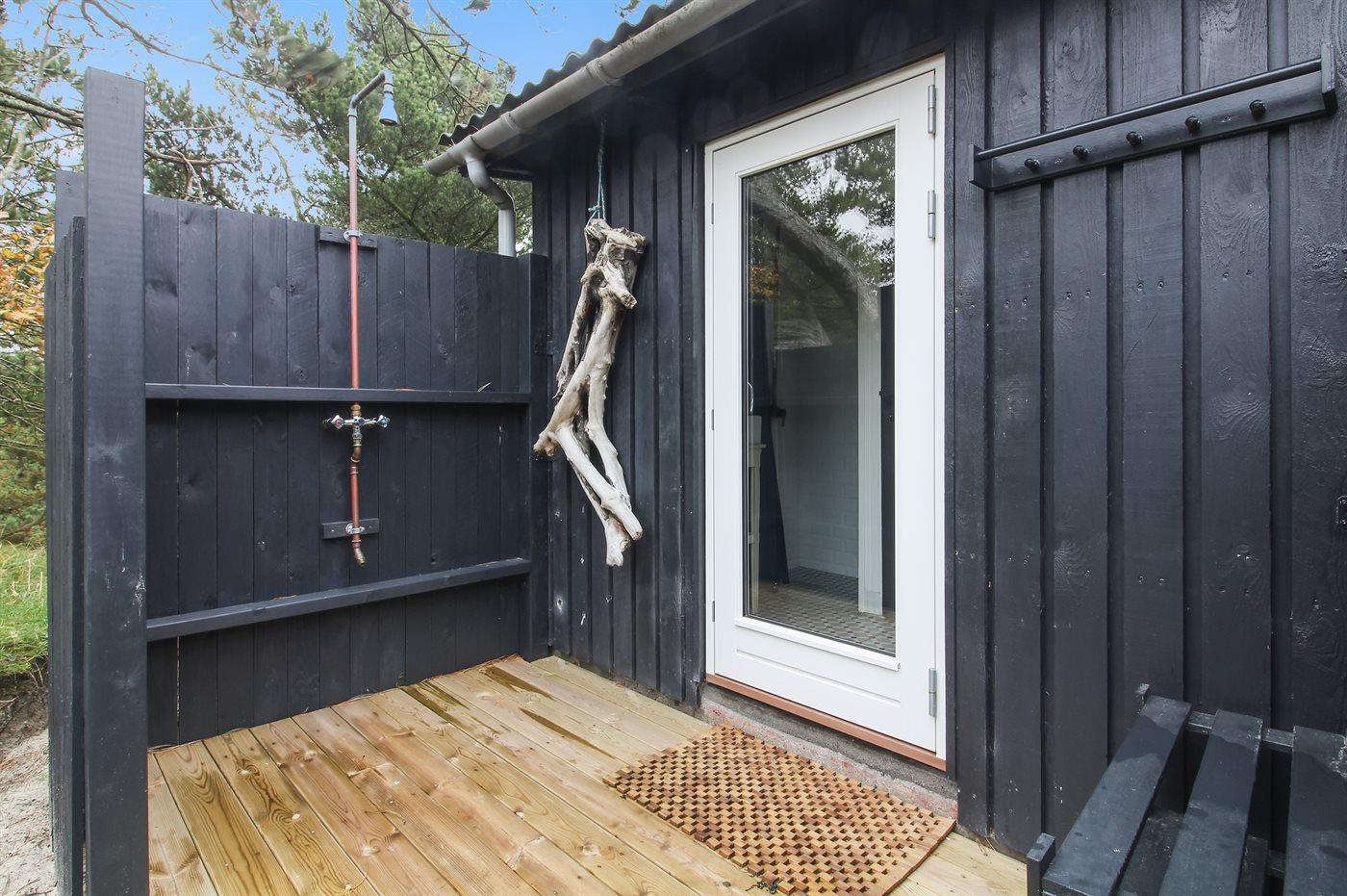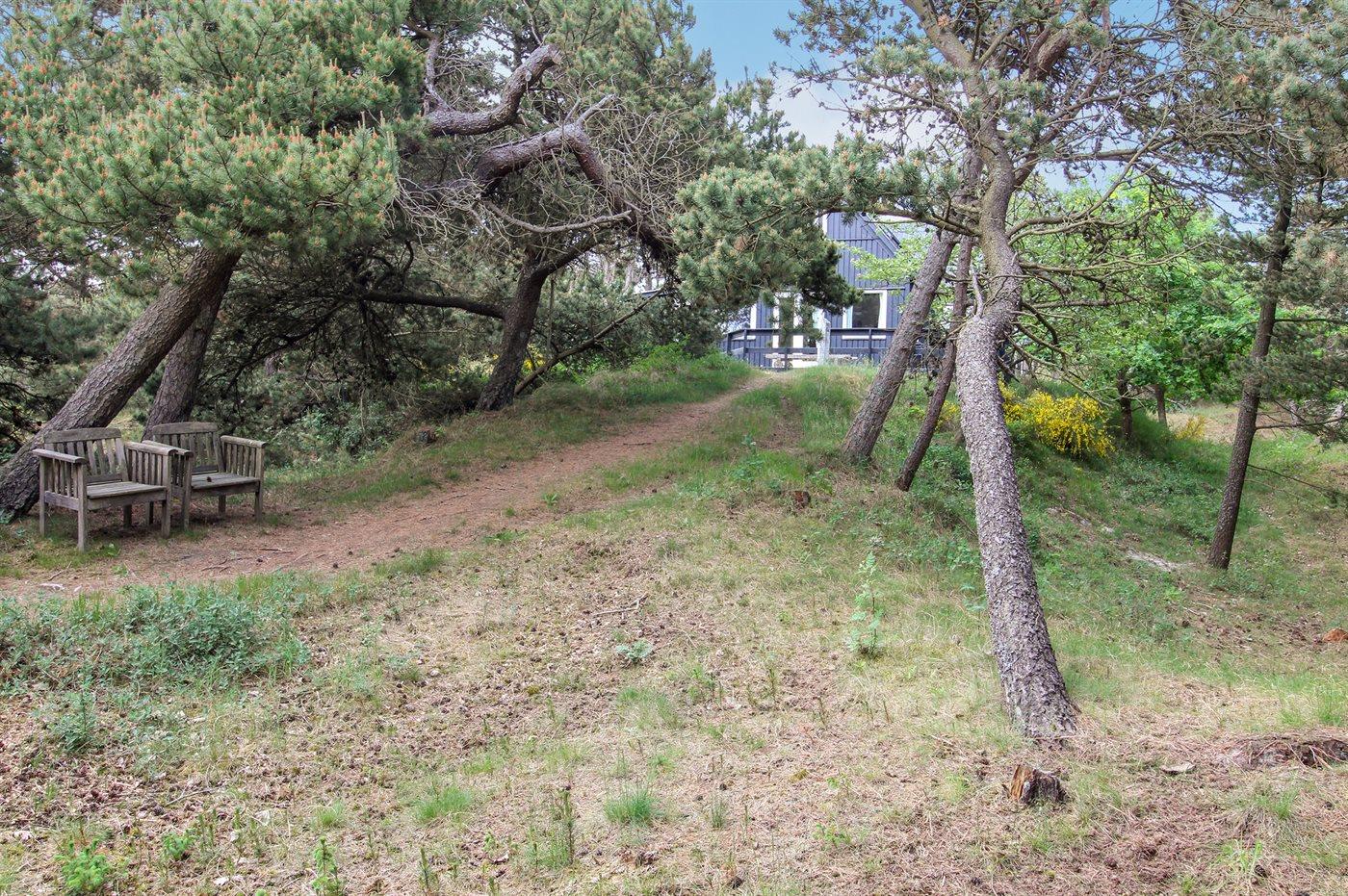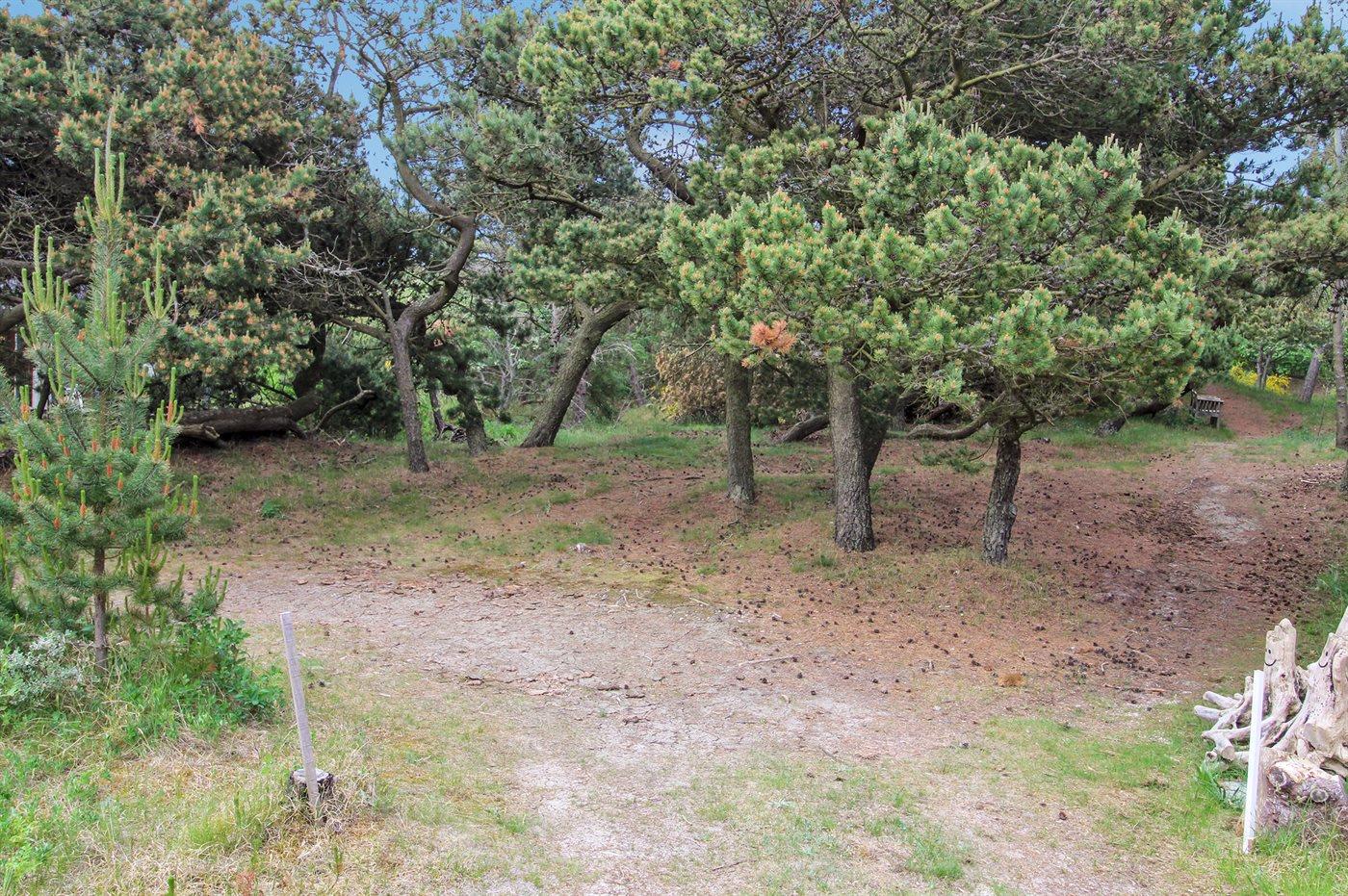 Ferieboligen er beliggende på en 2500 m² stor grund i skov/plantage. Der er 400 m til havet. Nærmeste forretning er beliggende i en afstand af 500 m. Til ferieboligen hører 40 m² terrasseareal. Udgang til altan. Udendørs bruser.