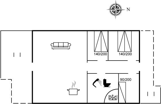 Der er i alt 3 soveværelser. Sovepladserne fordeler sig på: 4 sovepladser i dobbeltsenge. 1 soveplads i enkeltseng.