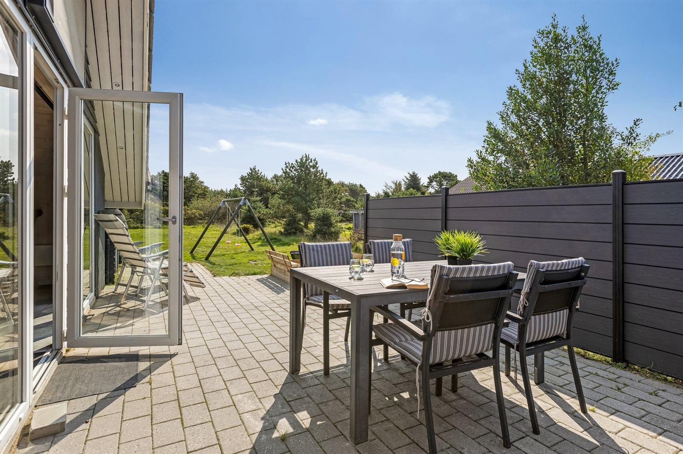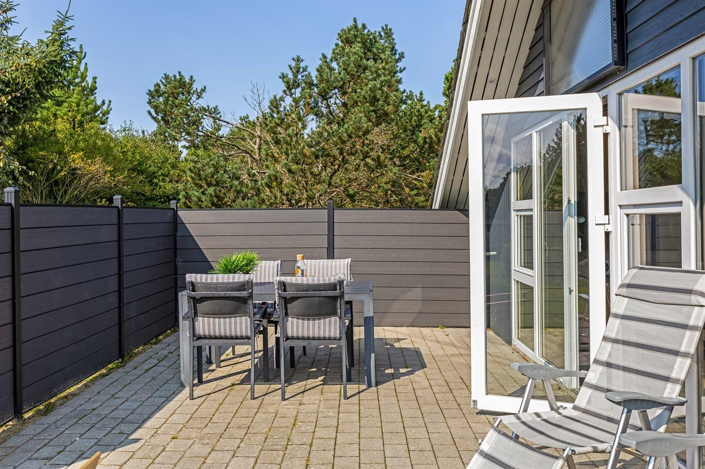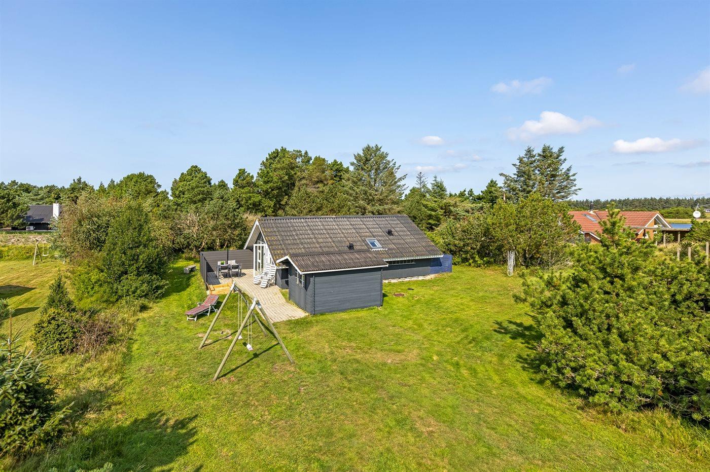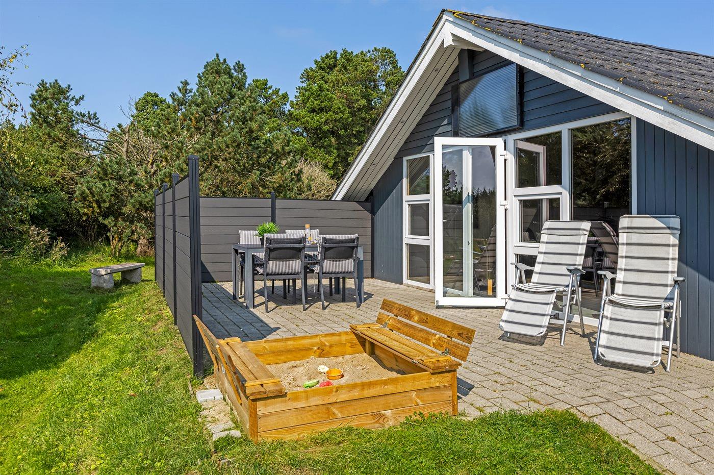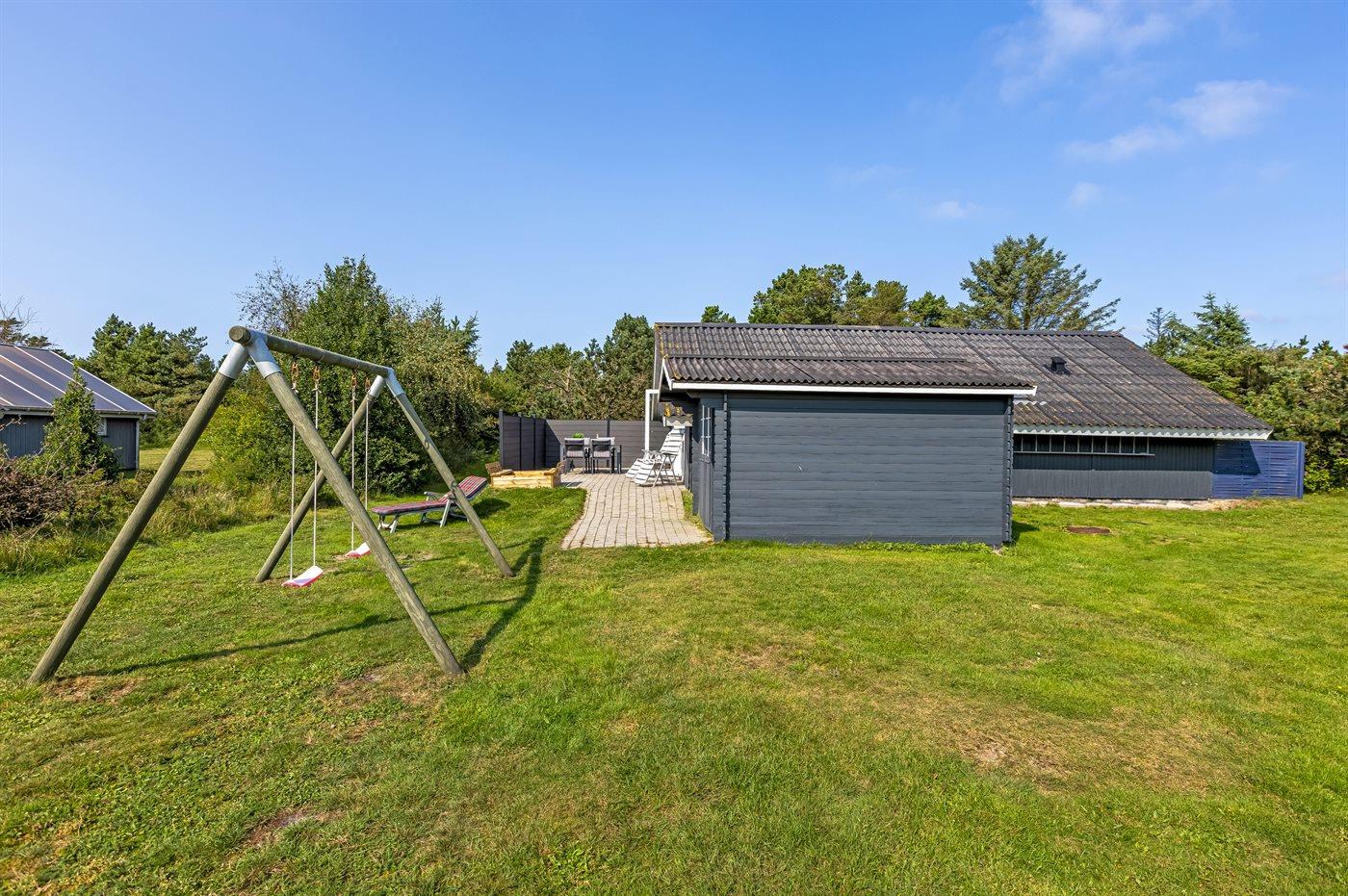 Ferieboligen er beliggende på en 1499 m² stor naturgrund. Der er 900 m til havet. Nærmeste forretning er beliggende i en afstand af 800 m. Til ferieboligen hører 25 m² terrasseareal. Der er redskabsrum. Gynge. Sandkasse. Der ligger en legeplads i en afstand af 800 m. Parkering ved ferieboligen.