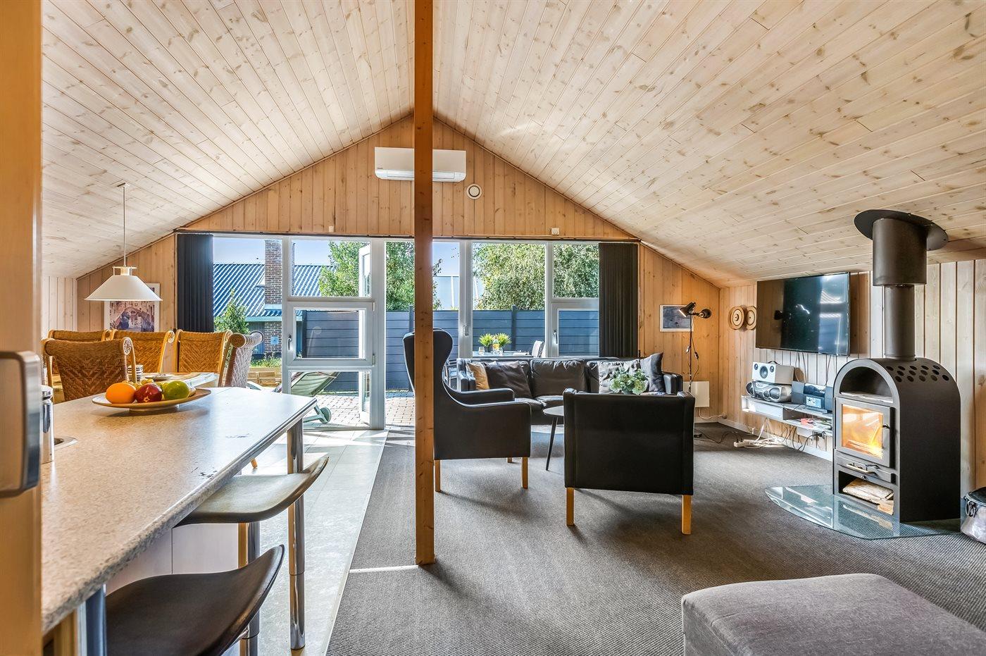Hyggeligt sommerhus nær Vejers Strand med spa, brændeovn og gulvvarme i rolige omgivelser.
