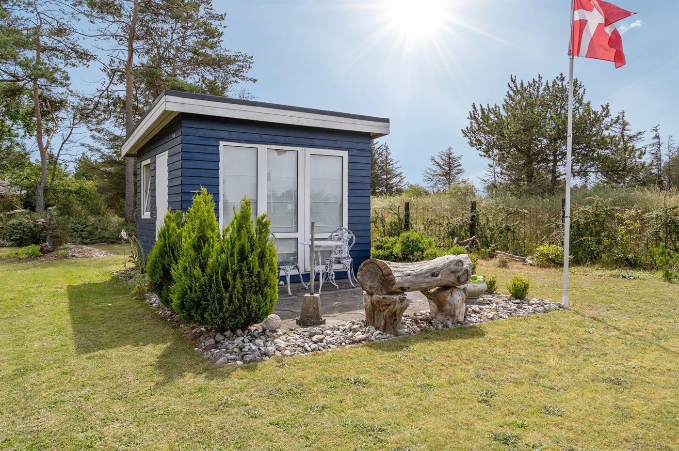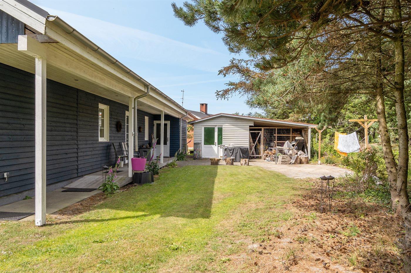 Ferieboligen er beliggende på en 1680 m² stor naturgrund. Grunden er indhegnet. Der er 1250 m til havet. Nærmeste forretning er beliggende i en afstand af 300 m. Til ferieboligen hører åbent terrasseareal. Sandkasse. Grill til rådighed. Parkering ved ferieboligen.
