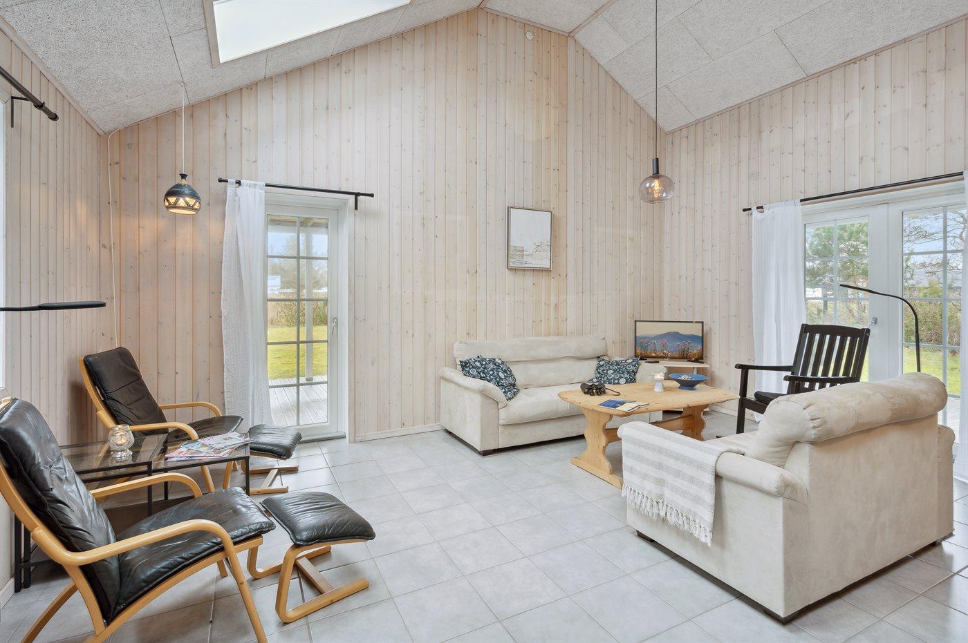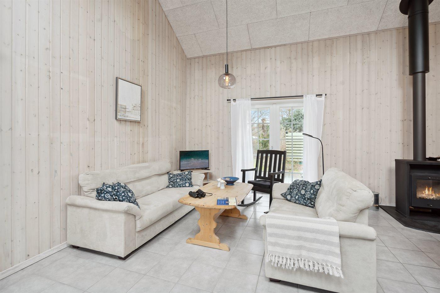 Sommerhuset er udstyret med 3 dejlige soverum og en ekstra soveplads (barn) på hems. Huset på 127 m2, og der er god plads til 6 personer.