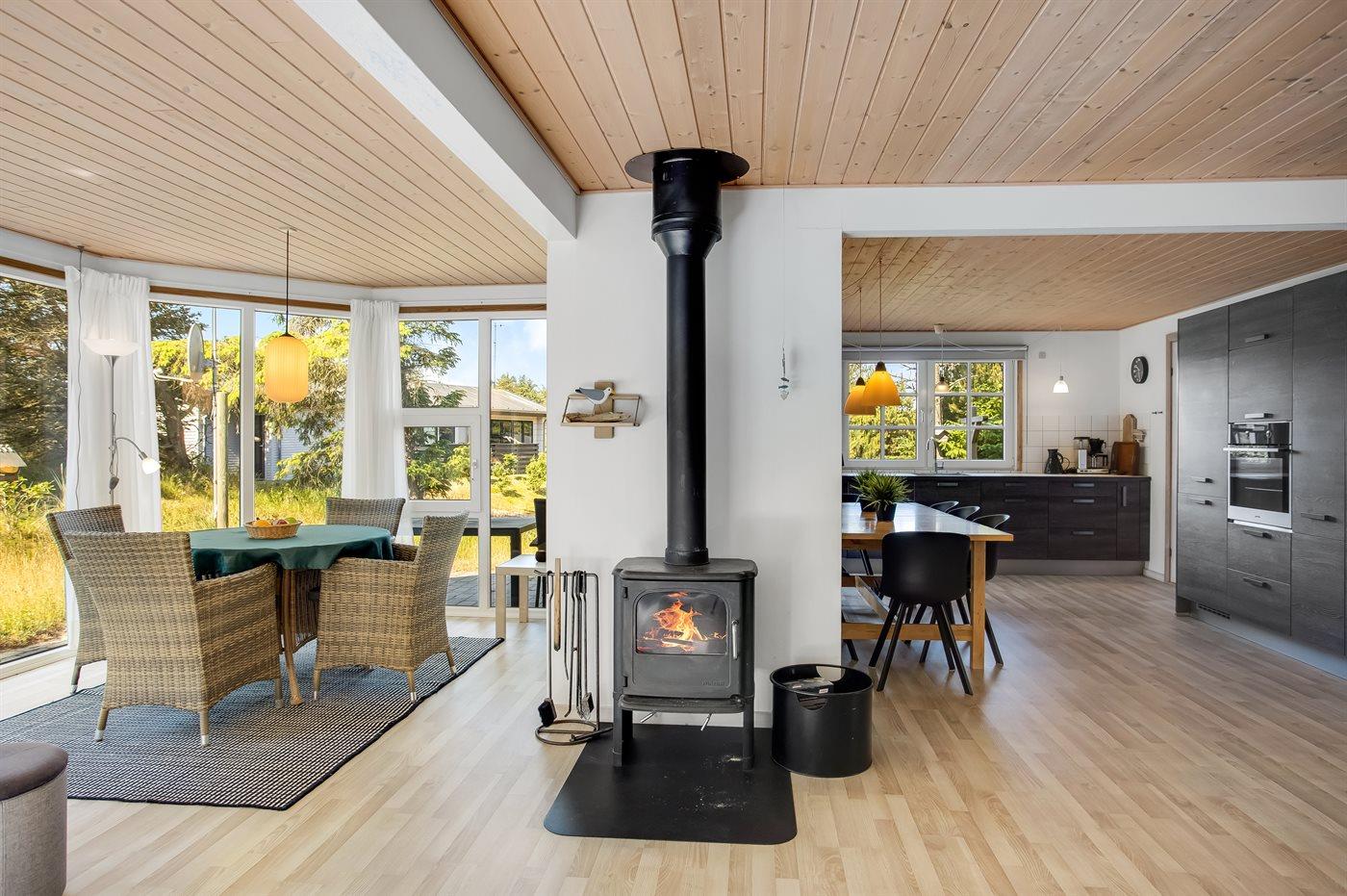 Huset har et stort køkkenalrum i forbindelse med stor lys opholdsstue med en hyggelig karnap, hvor der er udsigt over den skønne natur.