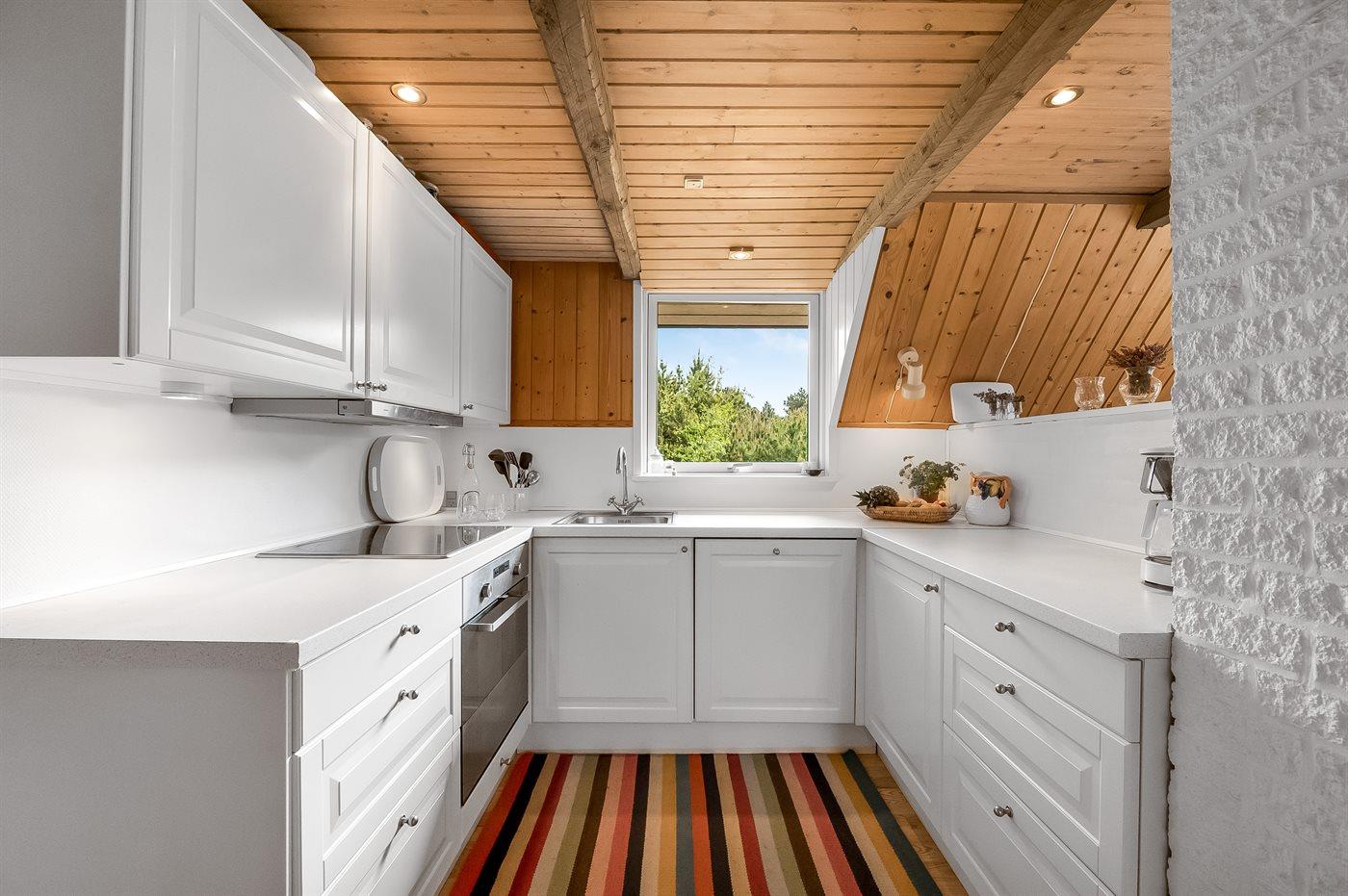 Køkkenet er udstyret med 1 køleskab. Der er 4 keramiske kogeplader, varmluftovn, mikrobølgeovn samt opvaskemaskine.