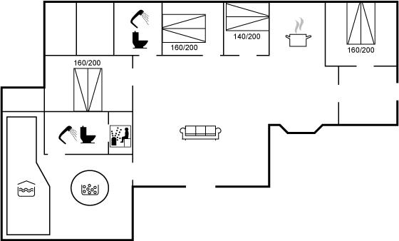 Der er i alt 4 soveværelser. Sovepladserne fordeler sig på: 8 sovepladser i dobbeltsenge.