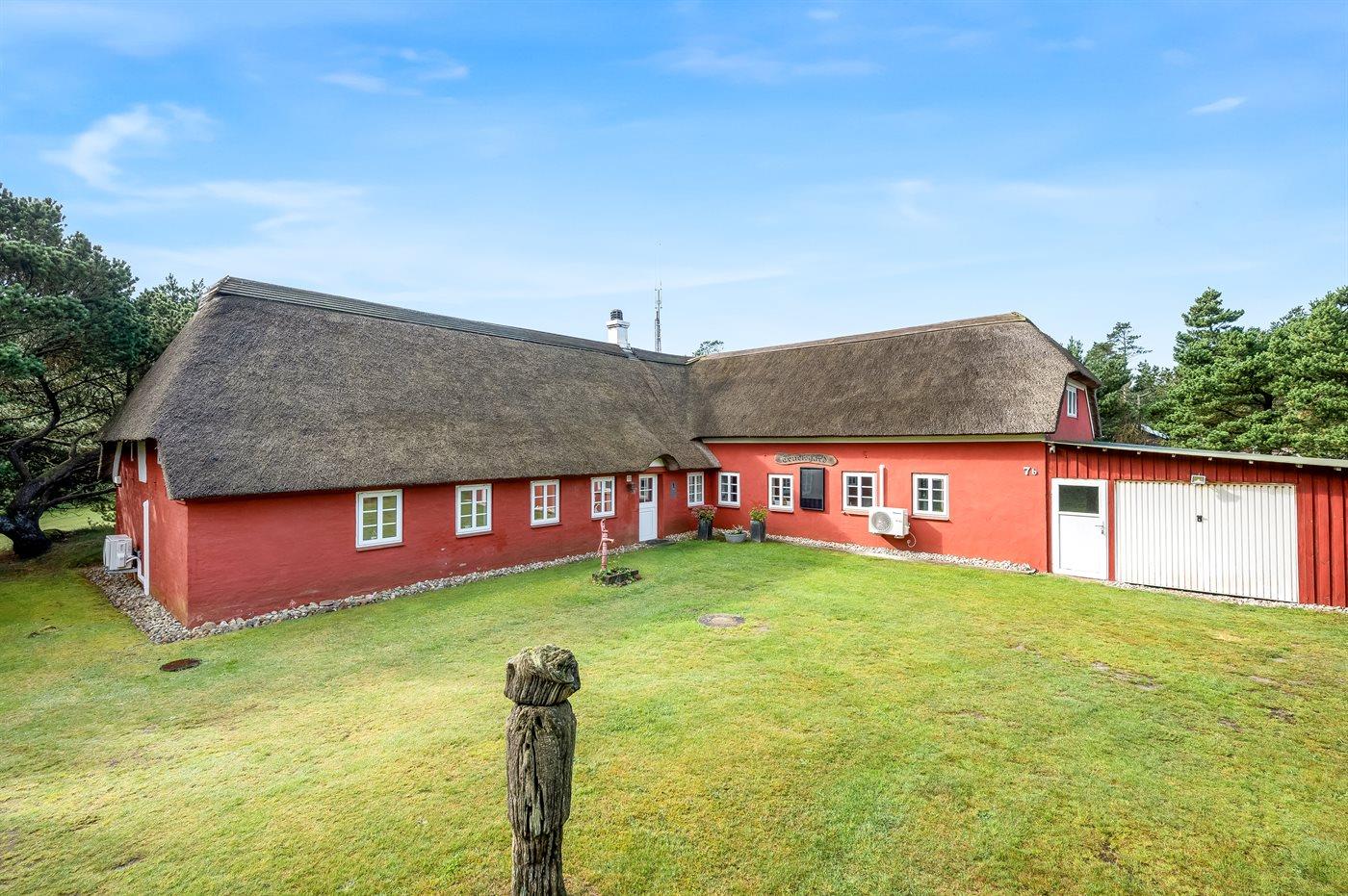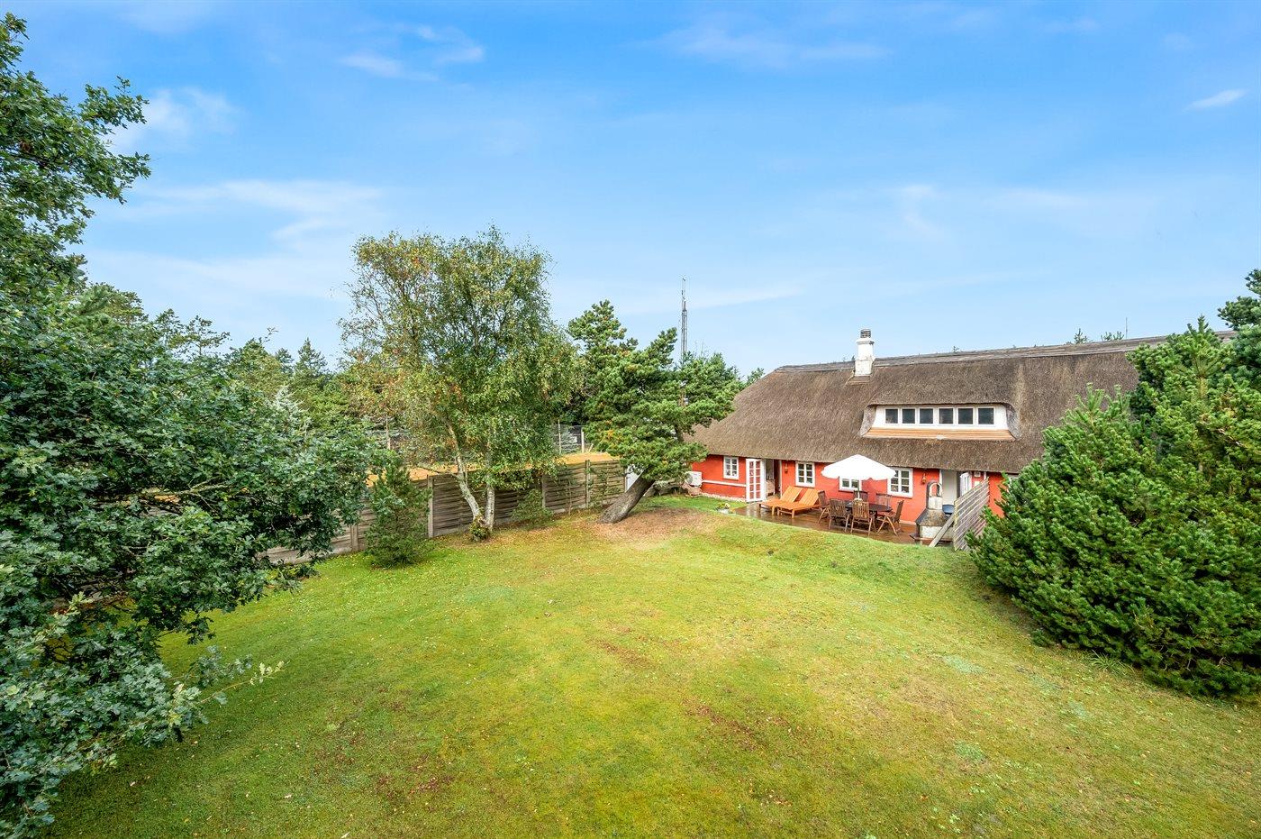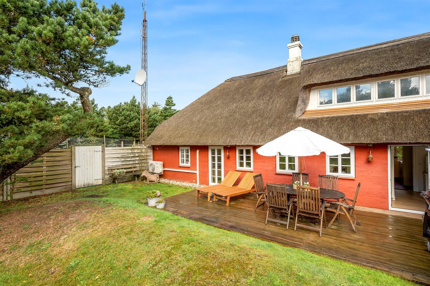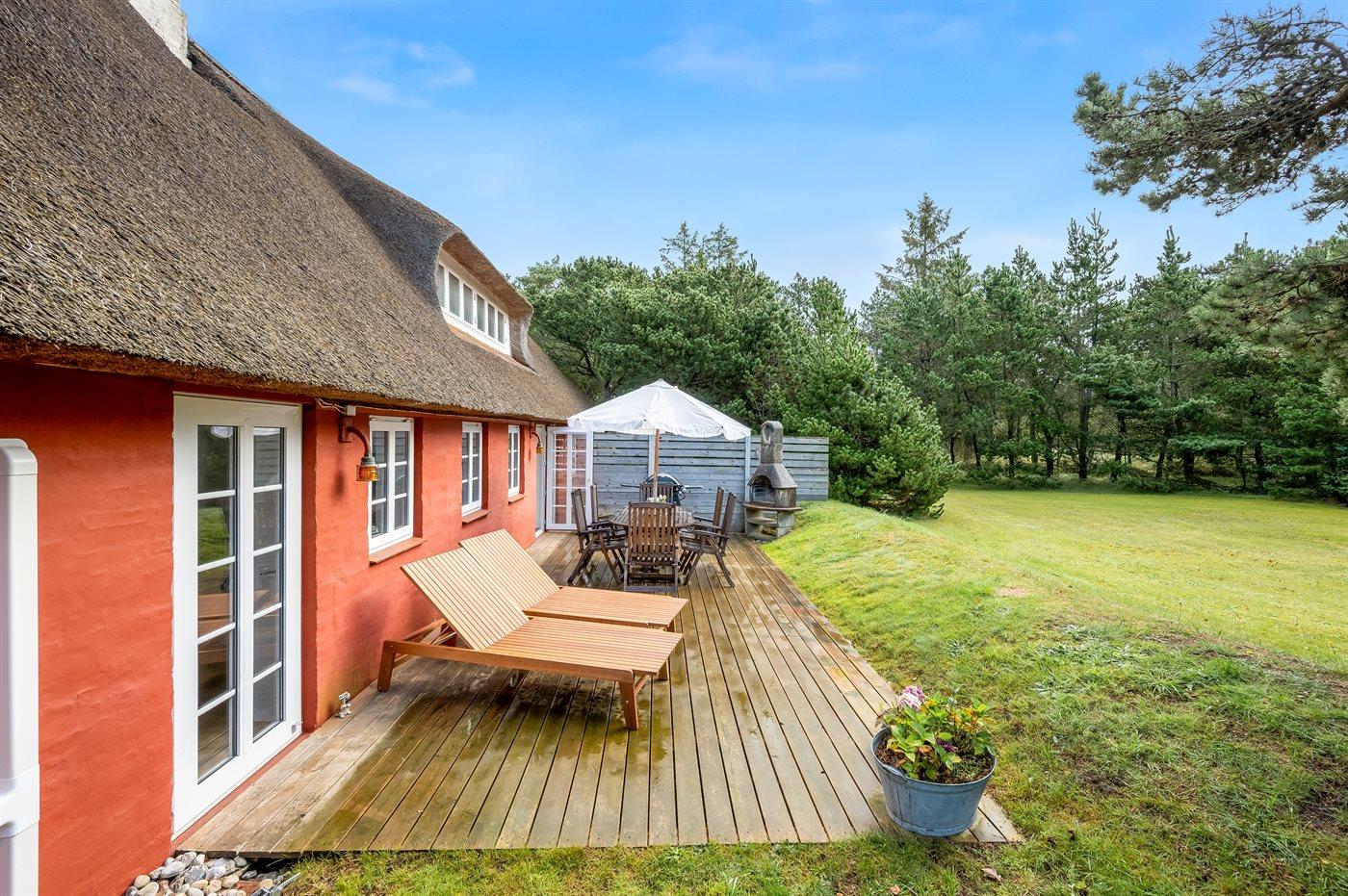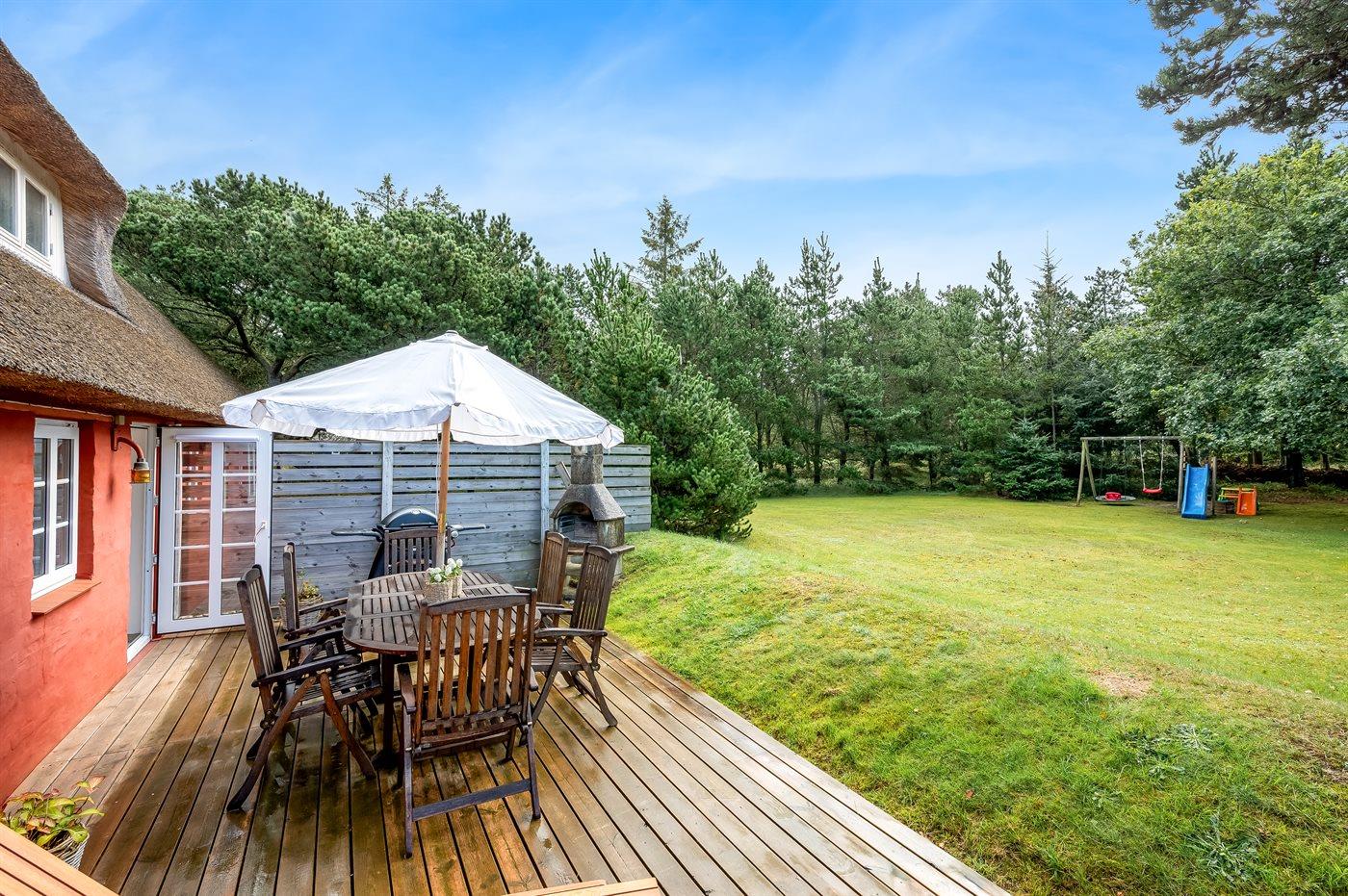 Hyggeligt sommerhus i Vejers Strand med sauna, spabad og naturgrund nær butik.