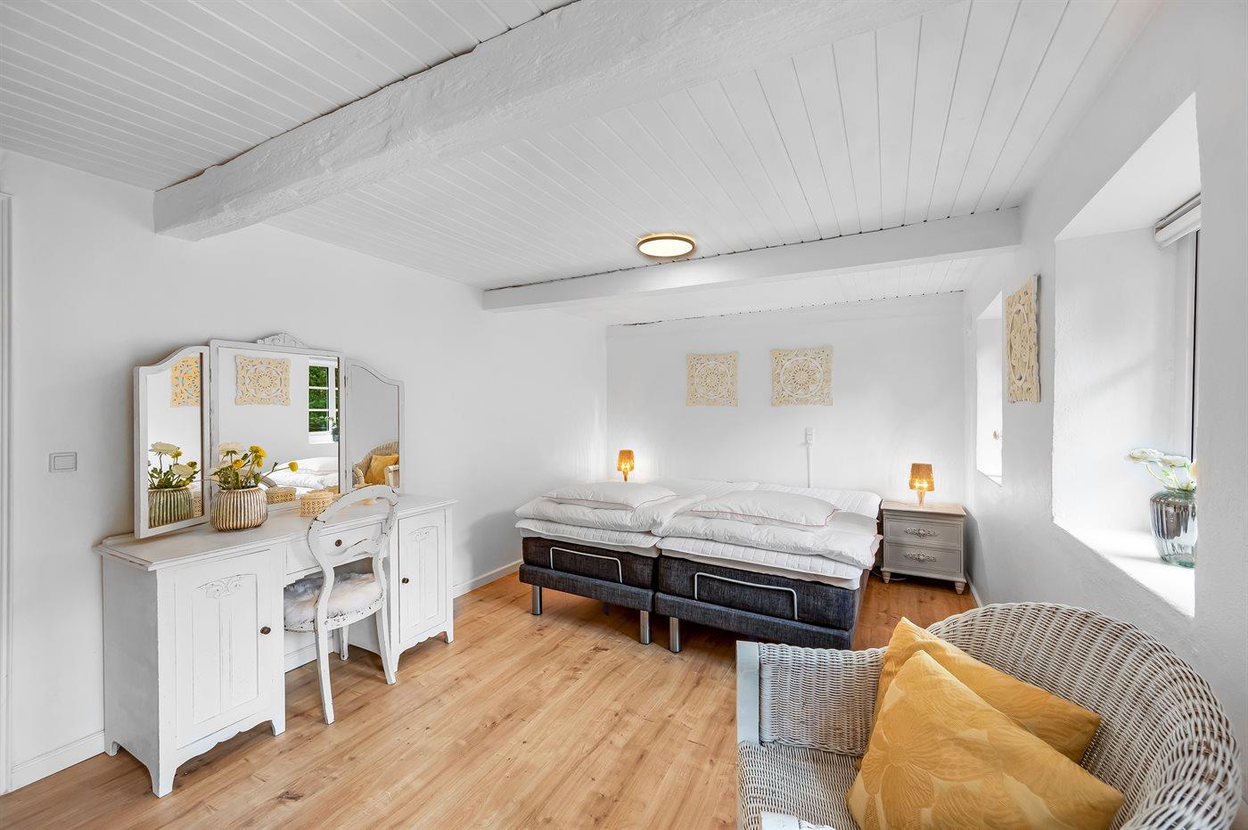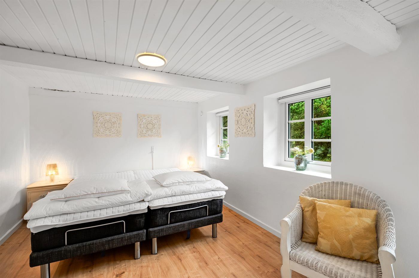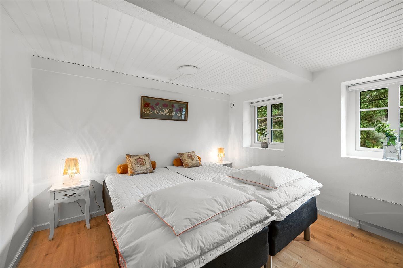 Der er i alt 4 soveværelser. Sovepladserne fordeler sig på: 2 sovepladser i dobbeltseng.5 sovepladser i elevationssenge.