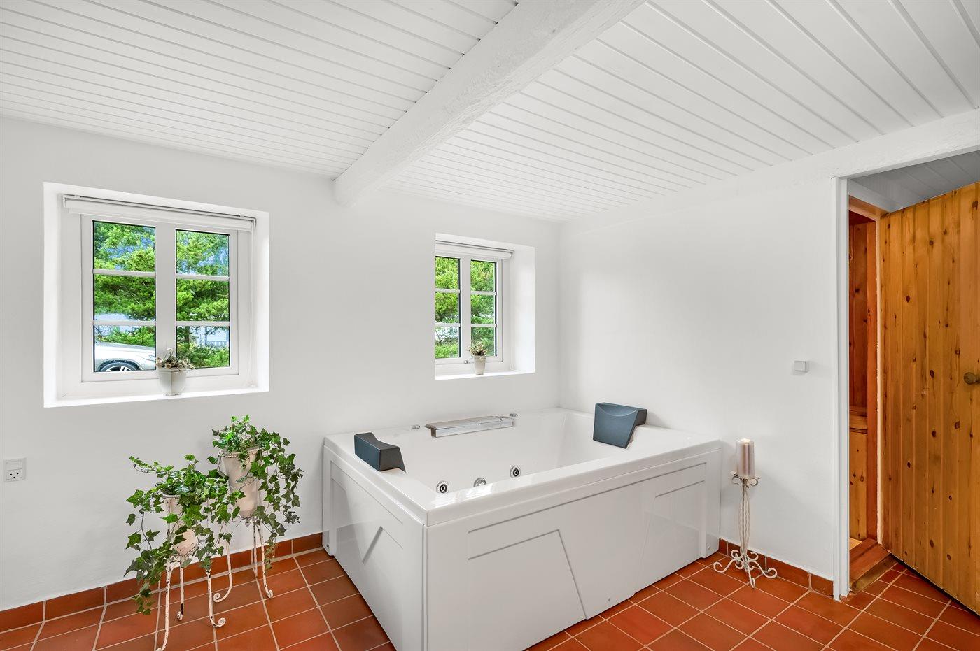 Der er 1 badeværelse med bruseniche og 1 toilet.. Der er gulvvarme på 1 badeværelse. I saunaen er der mulighed for afslapning.