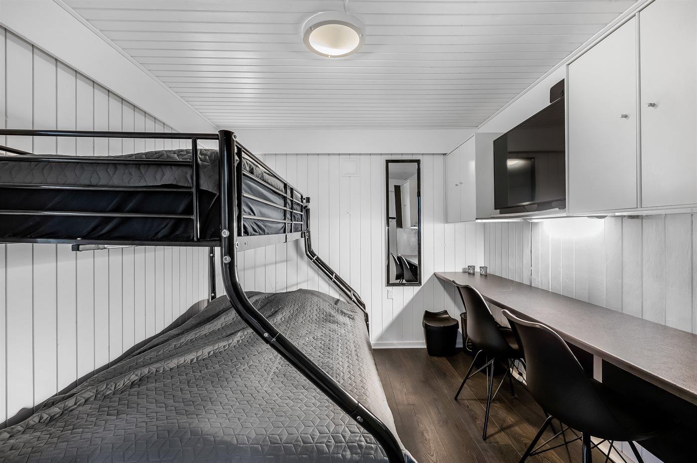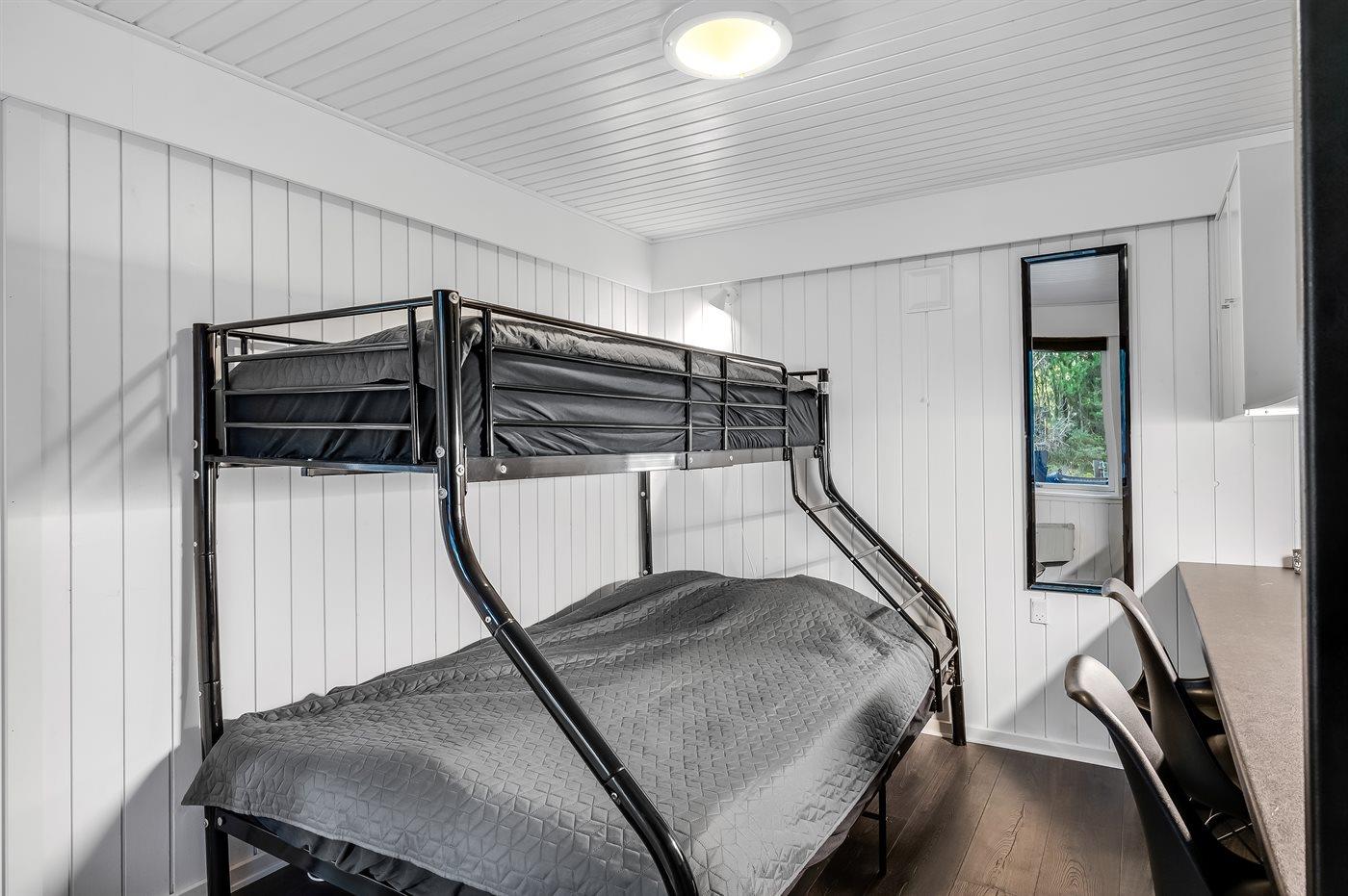 Der er i alt 3 soveværelser. Sovepladserne fordeler sig på: 2 sovepladser i dobbeltseng. 2 sovepladser i enkeltsenge.1 soveplads i køjeseng.