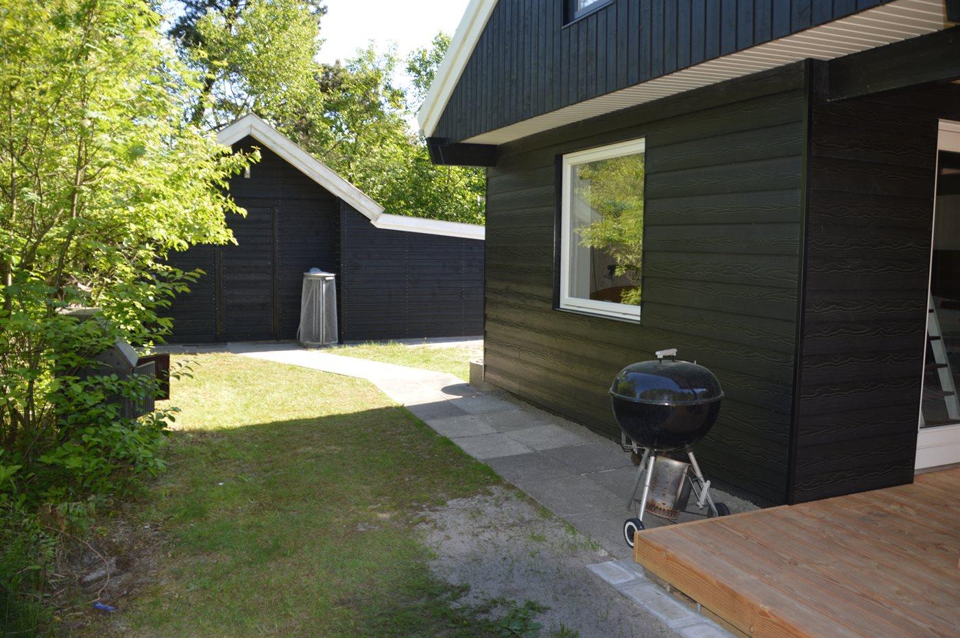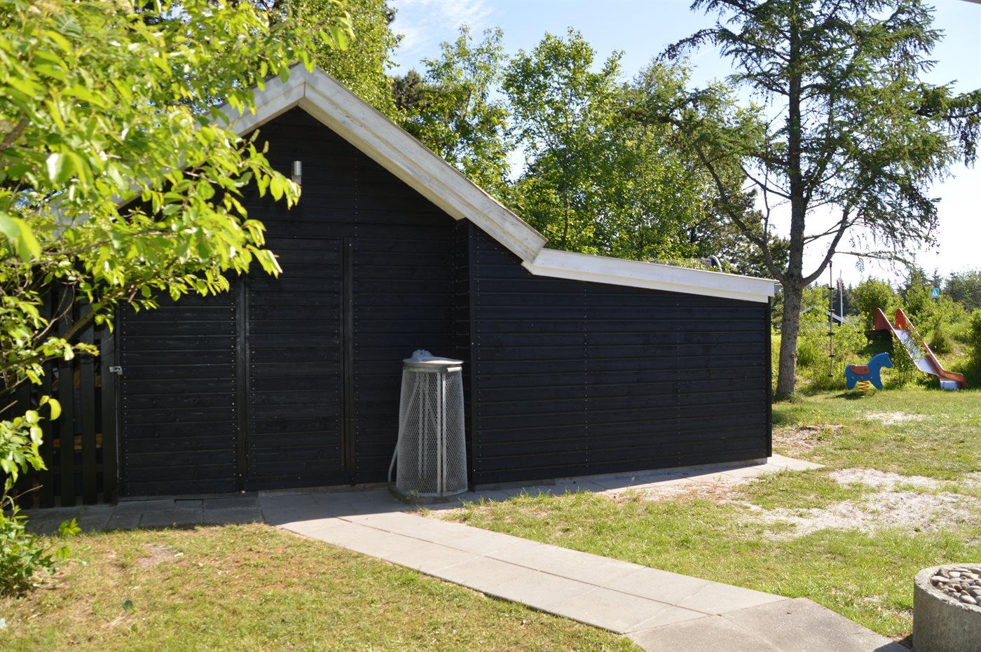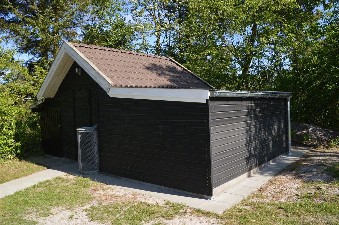 Ferieboligen er beliggende på en 1379 m² stor naturgrund. Der er 750 m til havet. Nærmeste forretning er beliggende i en afstand af 300 m. Der er redskabsrum. Gynge. Legehus. Trampolin. Vippe. Fodboldmål. Bålsted. Udendørs sauna. Grill til rådighed. Der er installeret stik til opladning af elbil. Type 2 stik. Parkering ved ferieboligen.