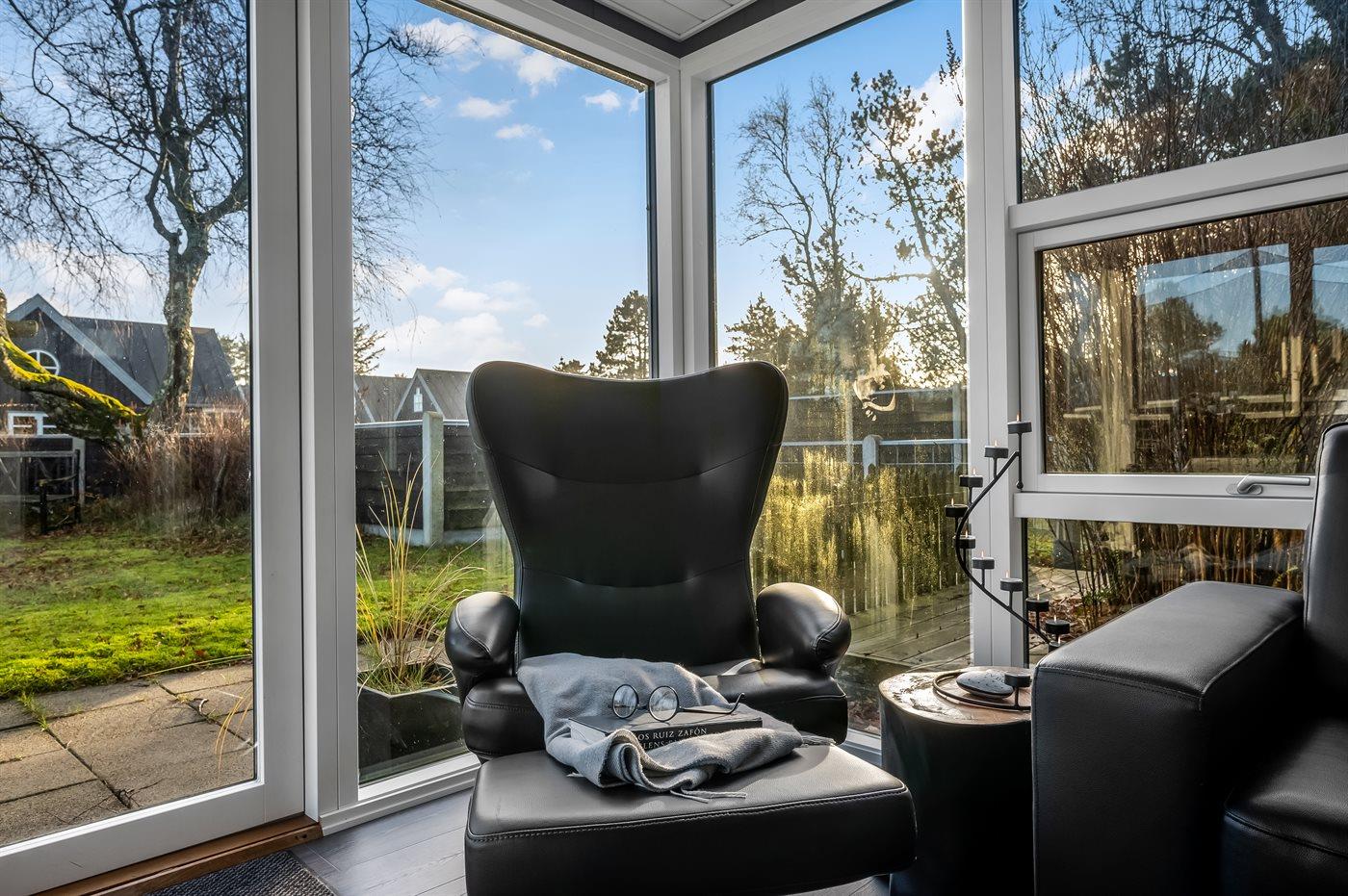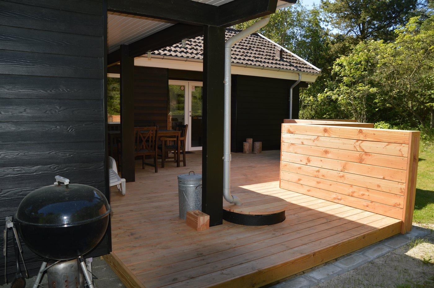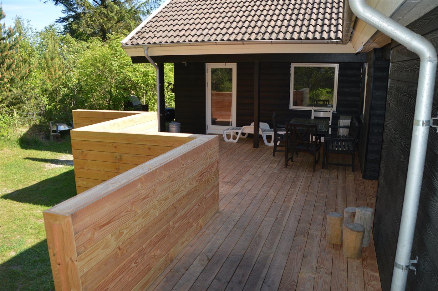 Ferieboligen er beliggende på en 1379 m² stor naturgrund. Der er 750 m til havet. Nærmeste forretning er beliggende i en afstand af 300 m. Der er redskabsrum. Gynge. Legehus. Trampolin. Vippe. Fodboldmål. Bålsted. Udendørs sauna. Grill til rådighed. Der er installeret stik til opladning af elbil. Type 2 stik. Parkering ved ferieboligen.