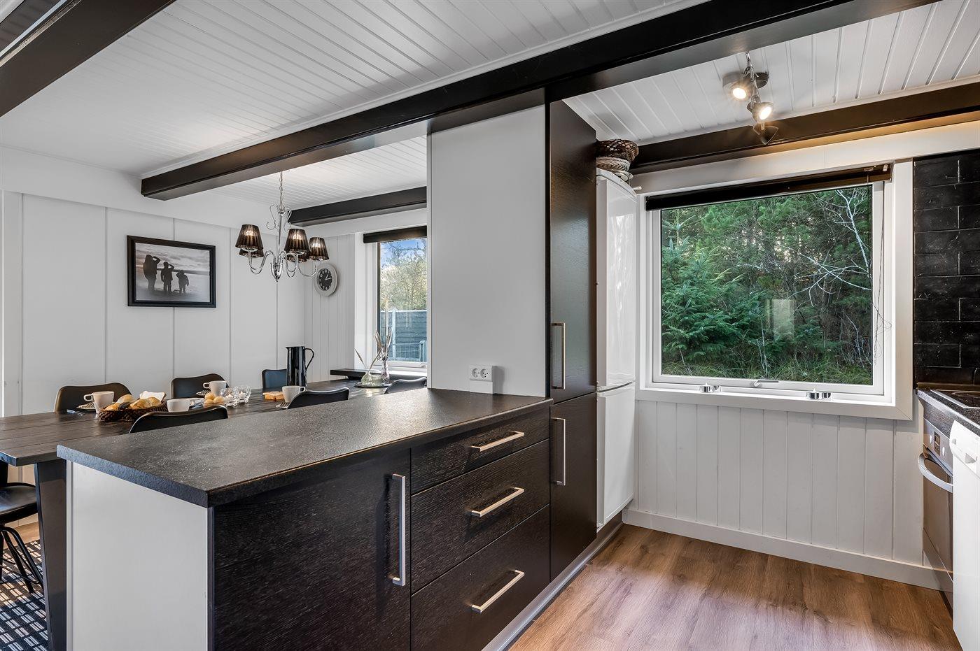 Køkkenet er udstyret med 1 køleskab. Der er 4 keramiske kogeplader, varmluftovn, mikrobølgeovn samt opvaskemaskine.
