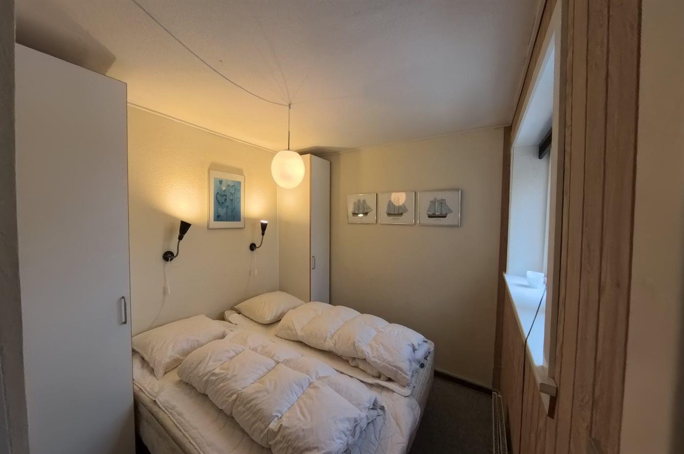 Der er i alt 2 soveværelser. Sovepladserne fordeler sig på: 2 sovepladser i dobbeltseng. 2 sovepladser i enkeltsenge.