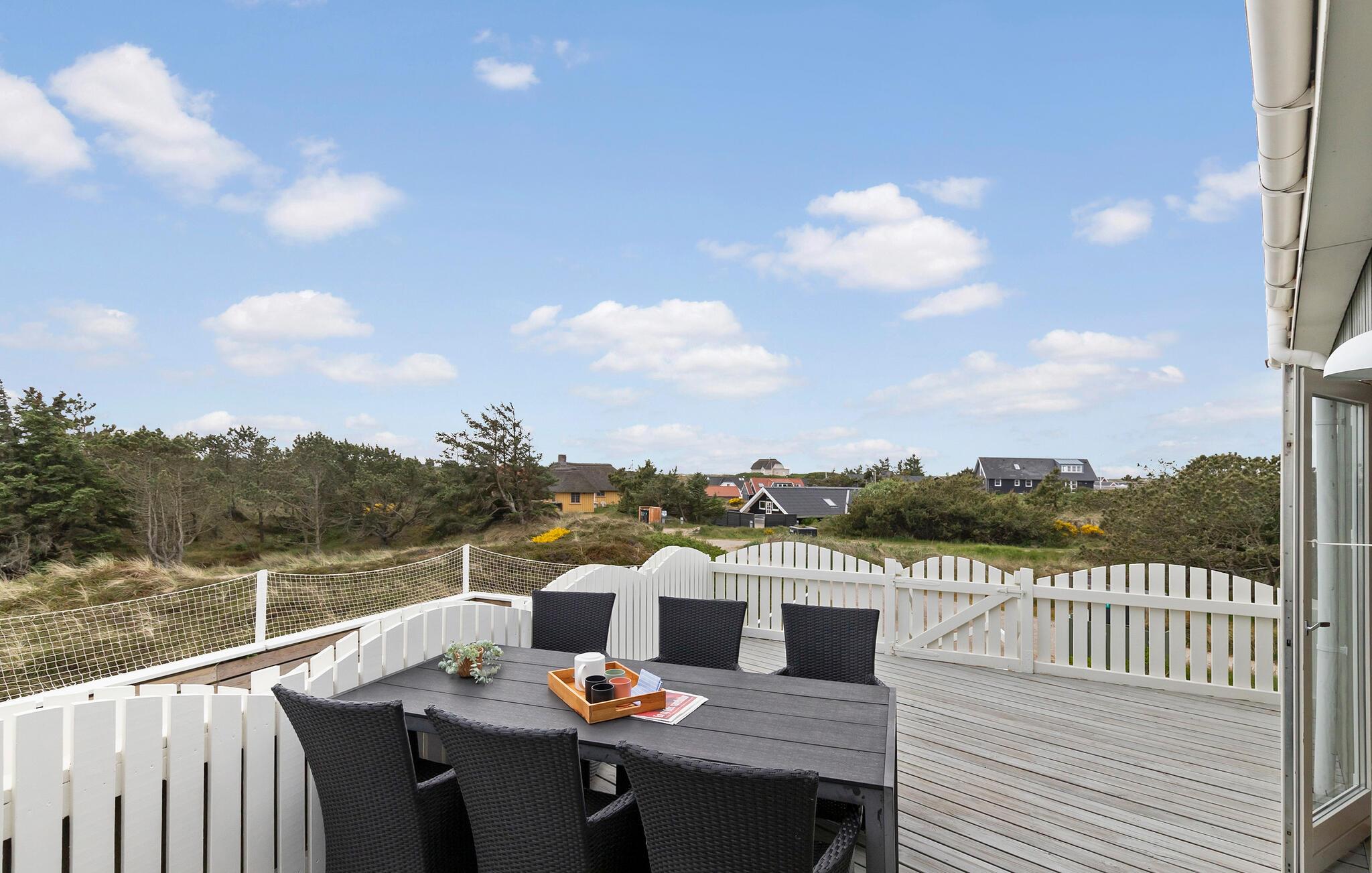 Højt oppe i klitterne med panoramaudsiigt over Vejers by og det naturskønne landskab ligger dette dejlige feriehus med både spabad og sauna.