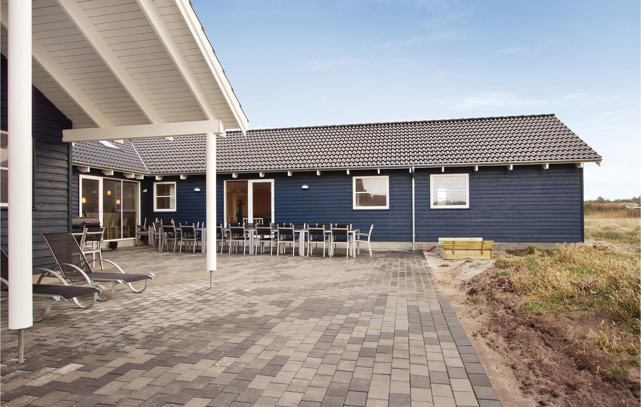 Feriehuset har eget badeland, hvor I kan nyde godt af den store swimmingpool med svømmetræner, vandrutsjebane, stort spabad og sauna. På terrassen kan I nyde både den danske sommer i gode havemøbler og en skøn grillaften med venner og familie. Den store klitgrund er beliggende ved et åløb. Der er opsat alarmanlæg i huset, og det udlejes ikke til ungdomsgrupper