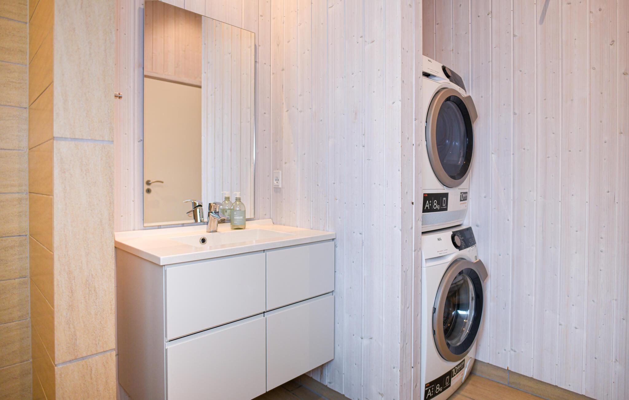 Gå ud på den afskærmede terrasse, og brug de behagelige havemøbler til rolige stunder på den dejlige naturgrund i den friske vesterhavsluft. Gyngerne og rutsjebanen indbyder børn til sjov og leg.
