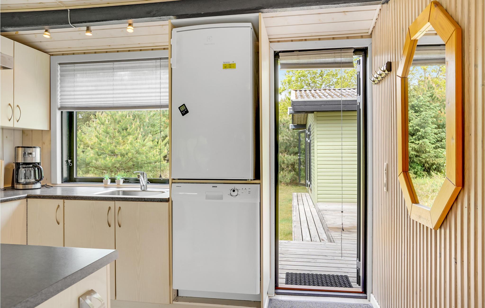 Huset er velindrettet med et praktisk køkken/alrum med brændeovn og et godt køkkenområde. Alle soveværelserne er lyse indrettede, og badeværelset fremstår pænt. Vejers Strand by er en hyggelig ferieby med gode indkøbsmuligheder, bolsjekogeri, galleri, et lille røgeri samt flere restauranter.