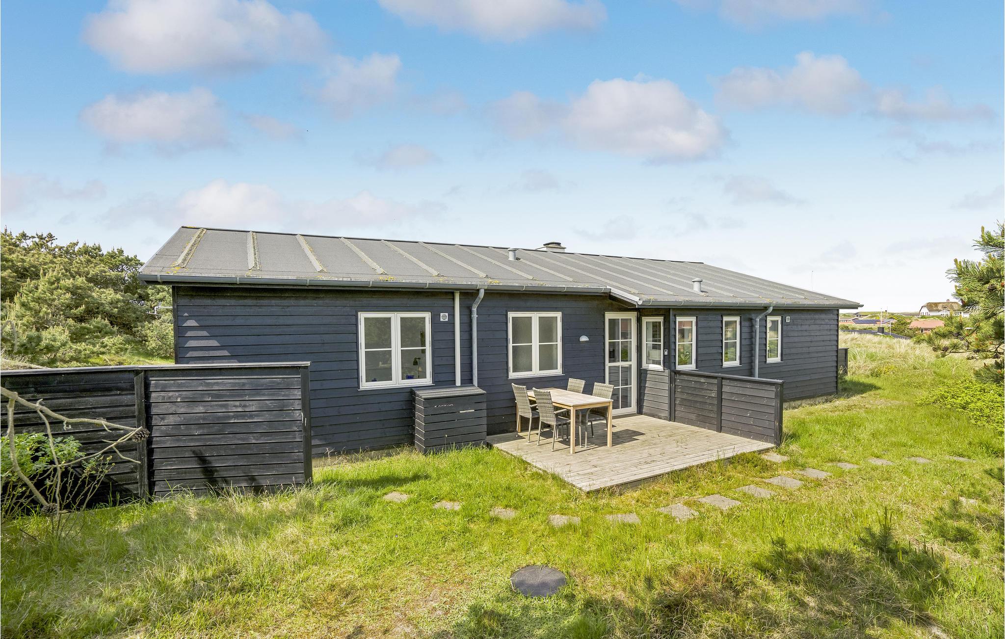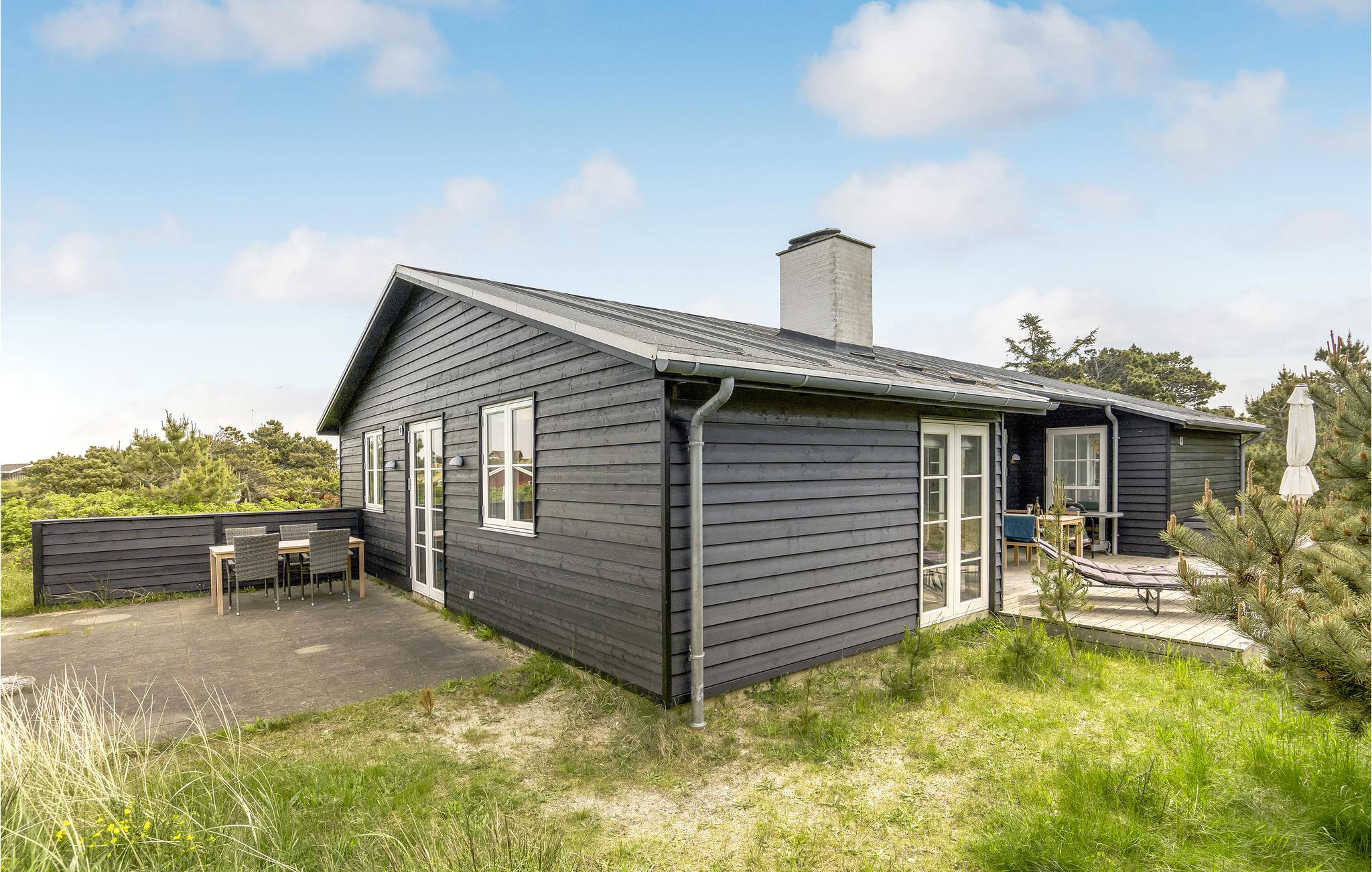 Flot sommerhus i Vejers Strand med panoramisk udsigt og tæt på strand og by.