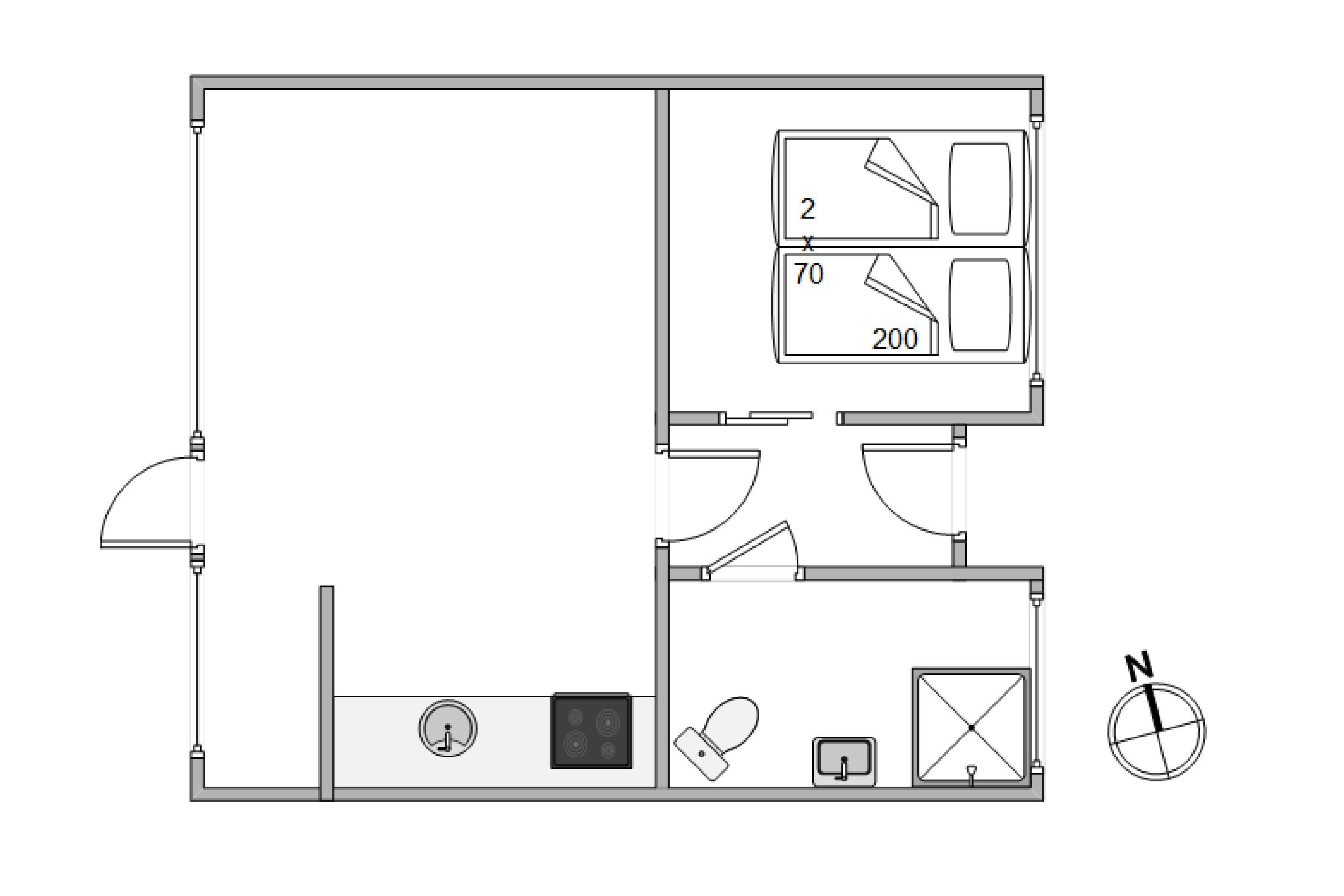 På ferielejlighedens 31 kvadratmeter finder I desuden 1 soveværelse, der er indrettet med en dobbeltseng, som I kan få jer en god nats søvn i, så I bliver helt klar til jeres kommende feriedage i Vejers. Derudover er der 1 badeværelse i ferielejligheden.