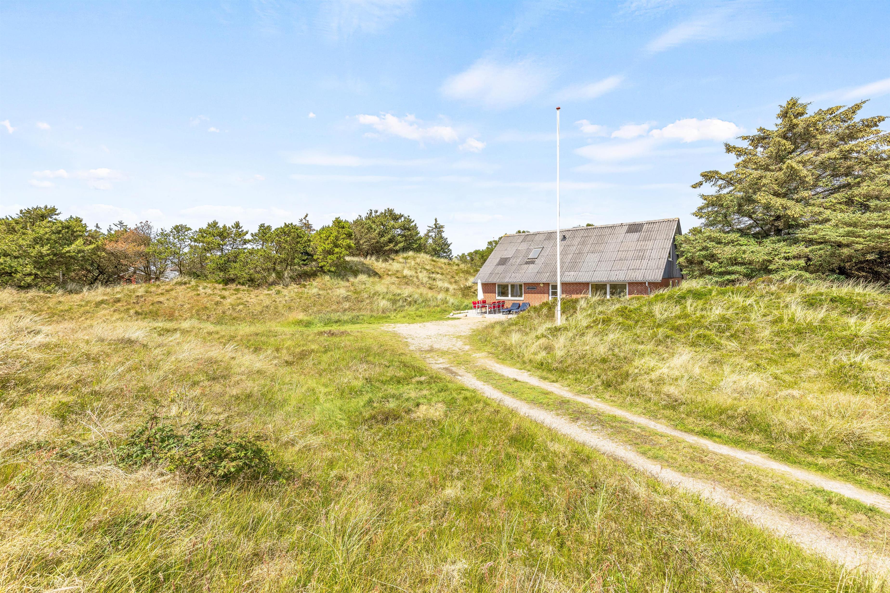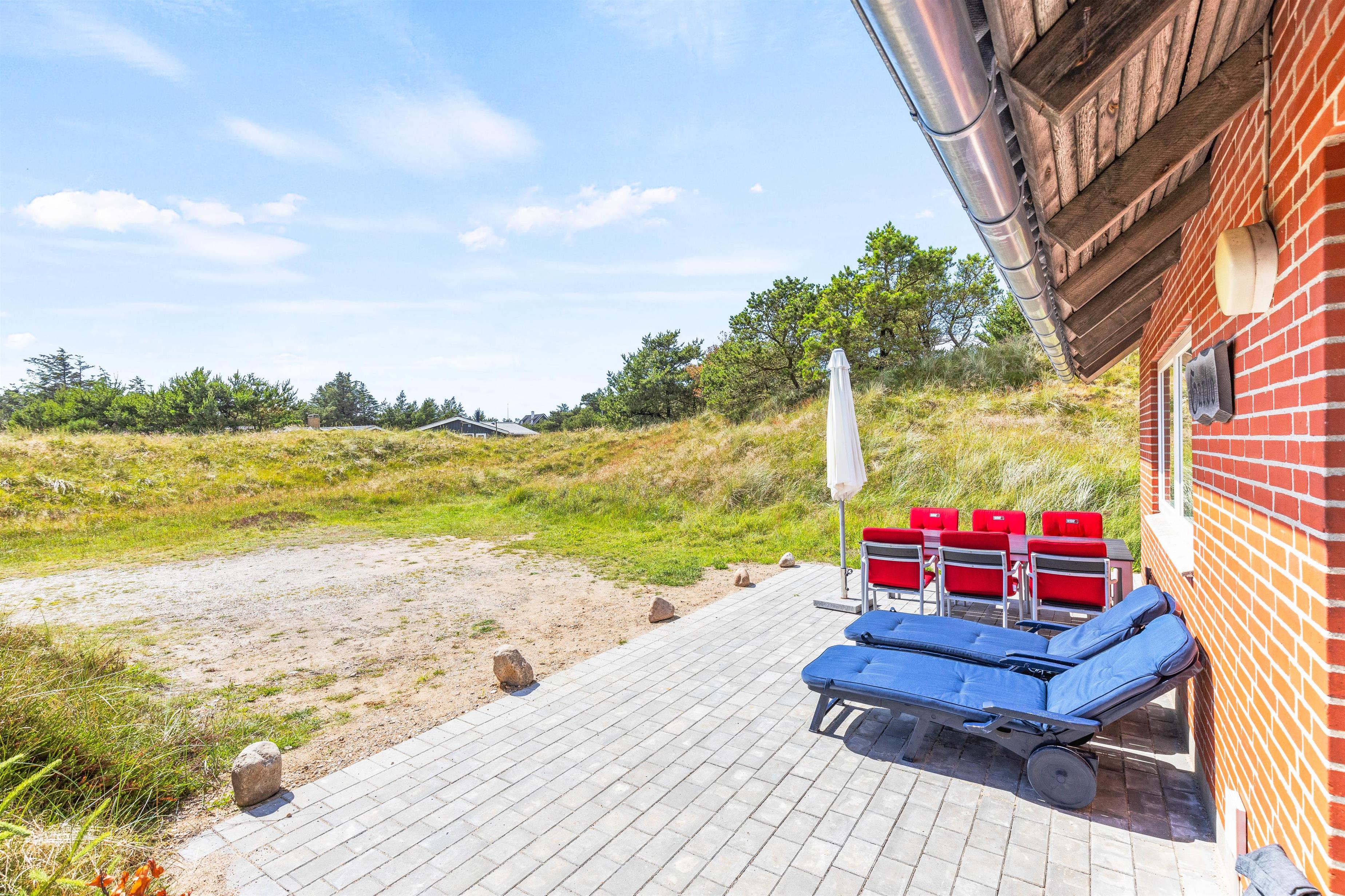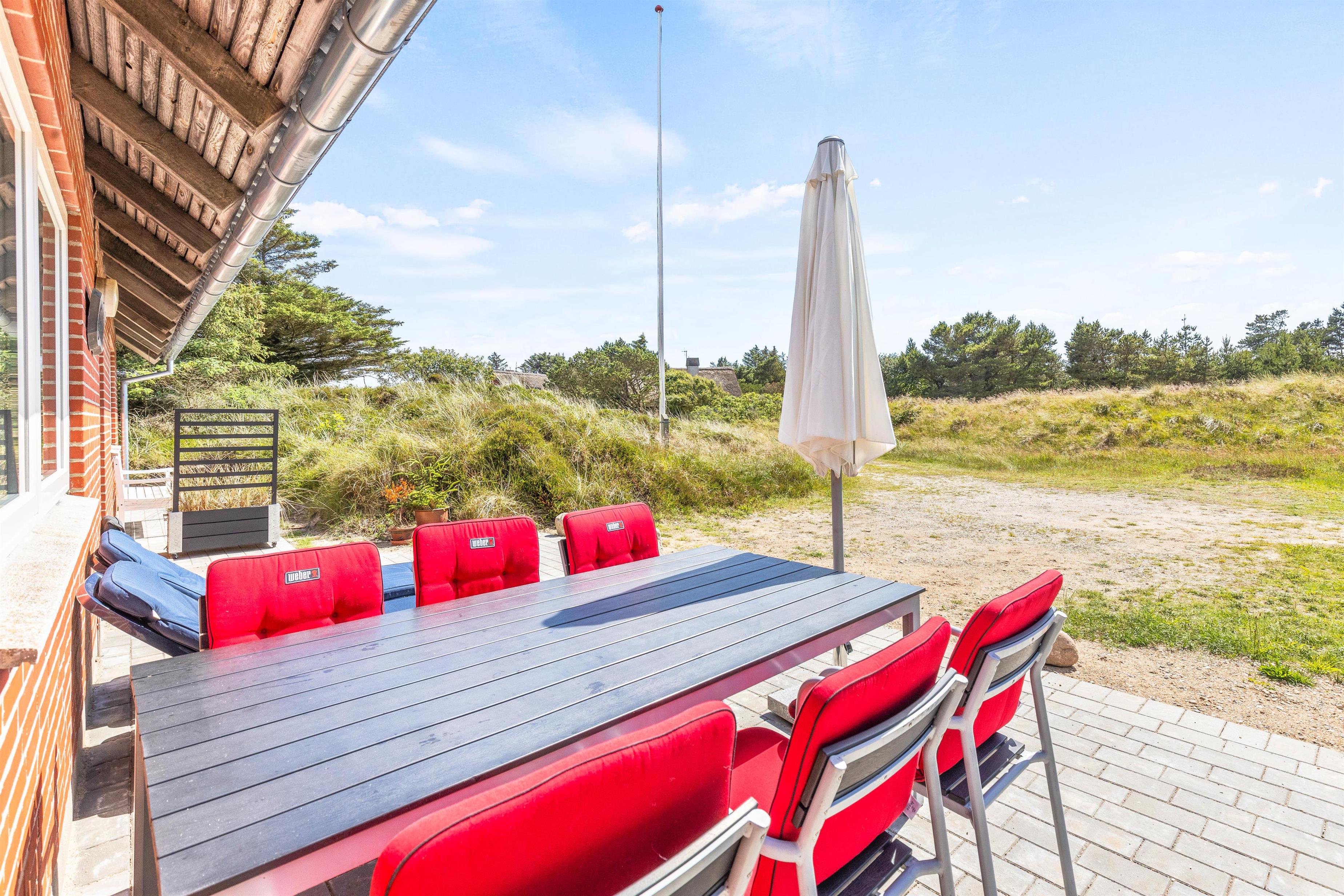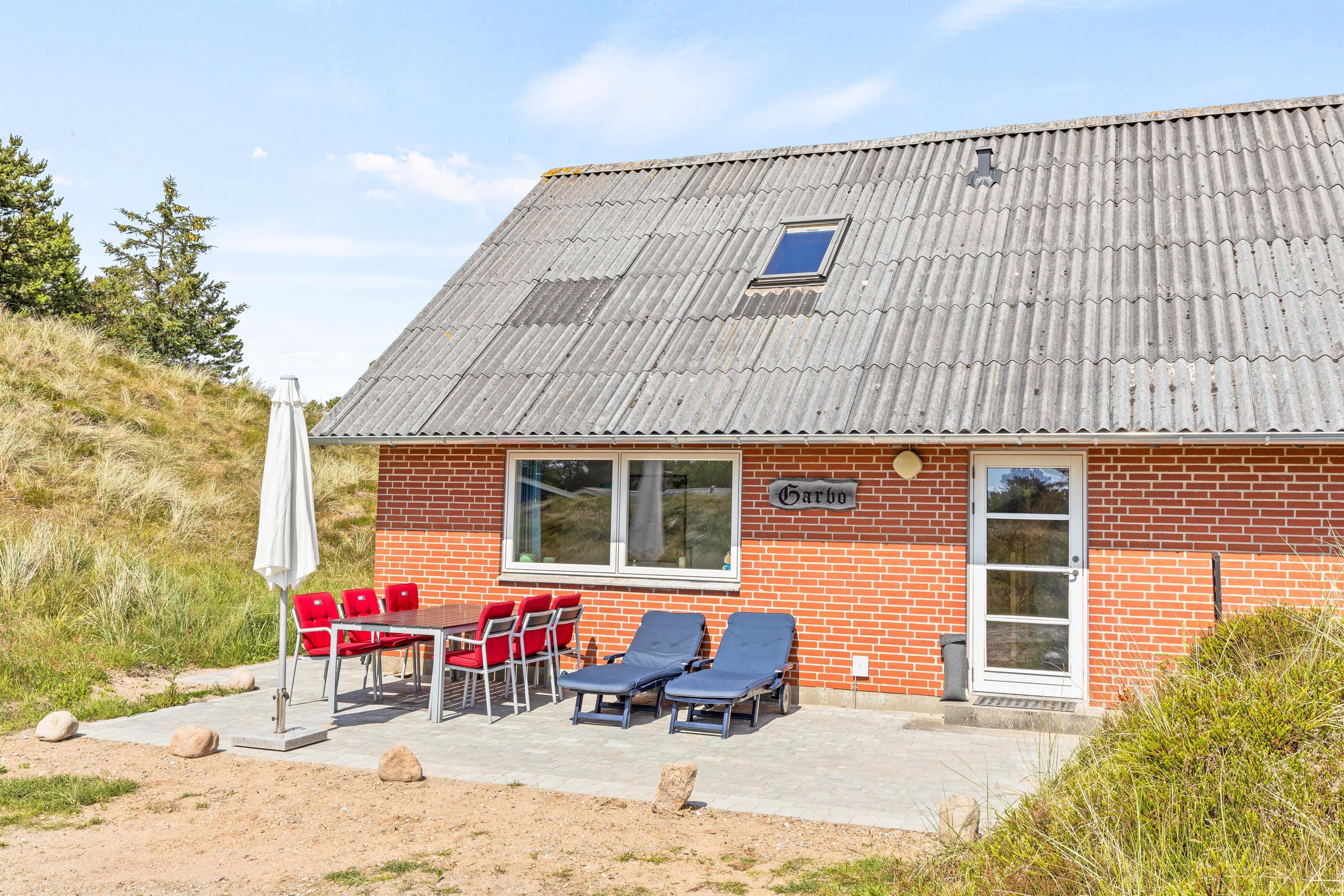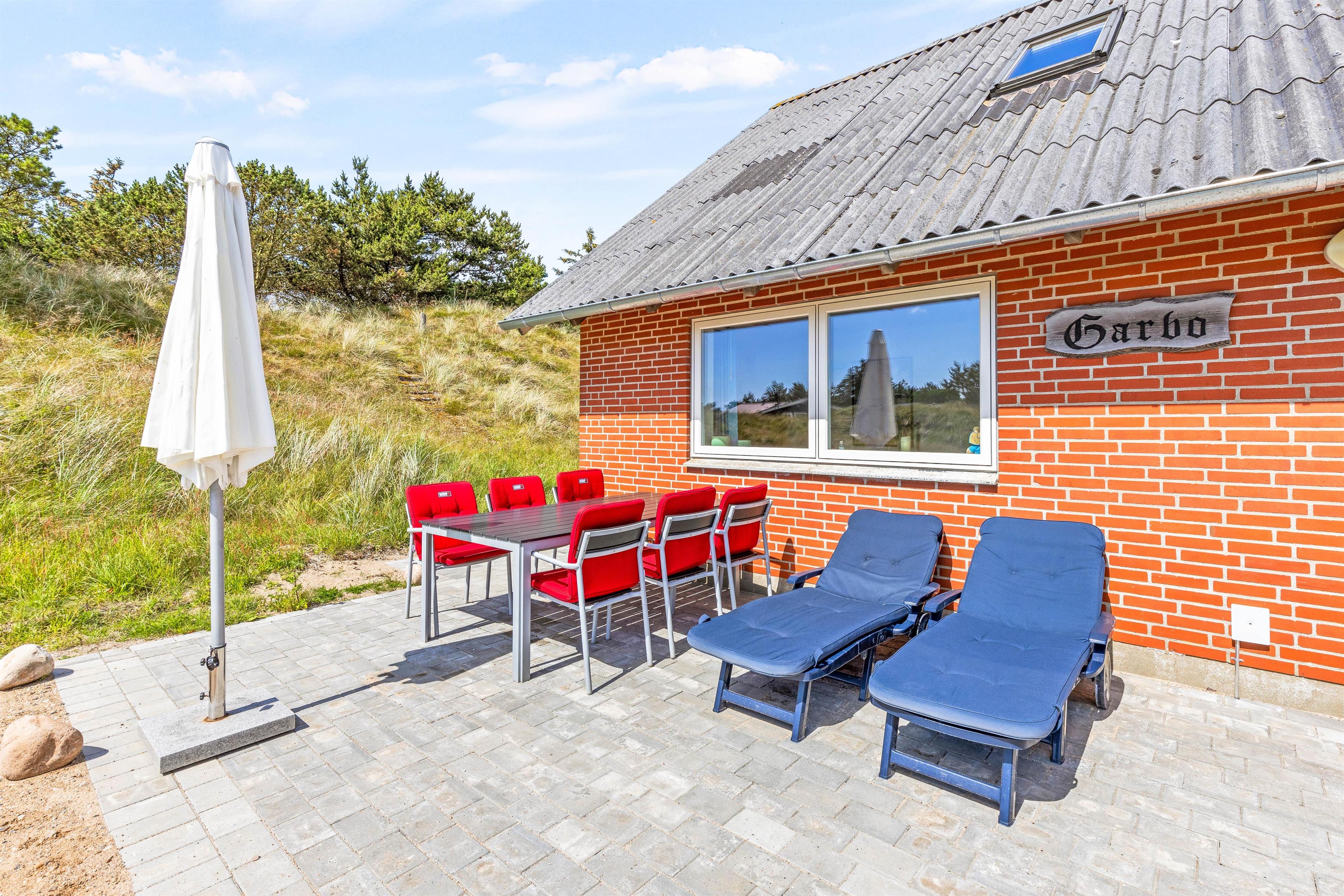 Udendørslivet kan I nyde på en åben stenterrasse med hyggelige havemøbler til afslapning. Tænd op i grillen til aften, og nyd et lækkert grillmåltid sammen, imens skyggerne bliver lange. Bagefter kan I nå en vandretur til stranden, hvor I kan opleve solnedgangen i Vesterhavet.