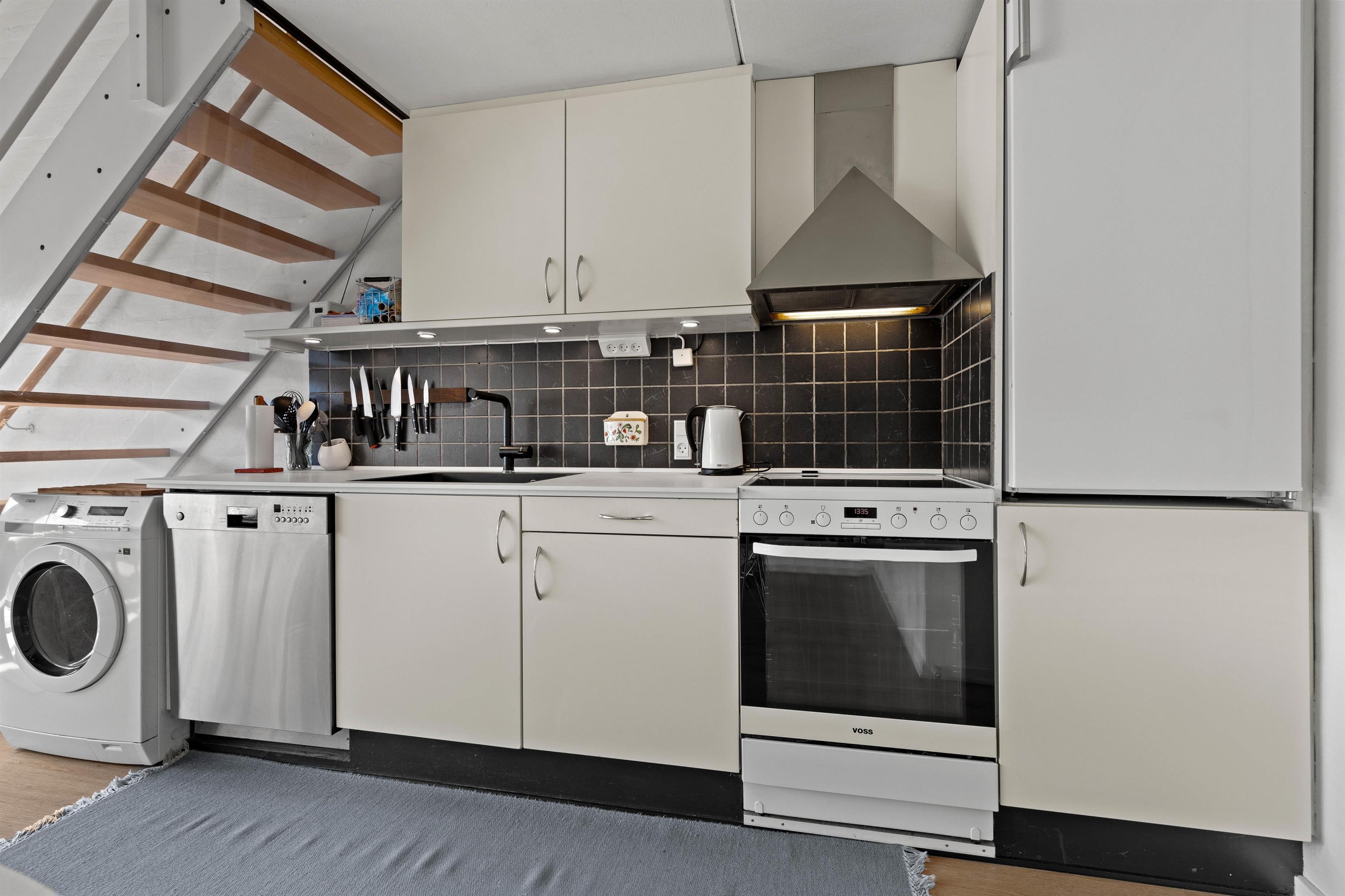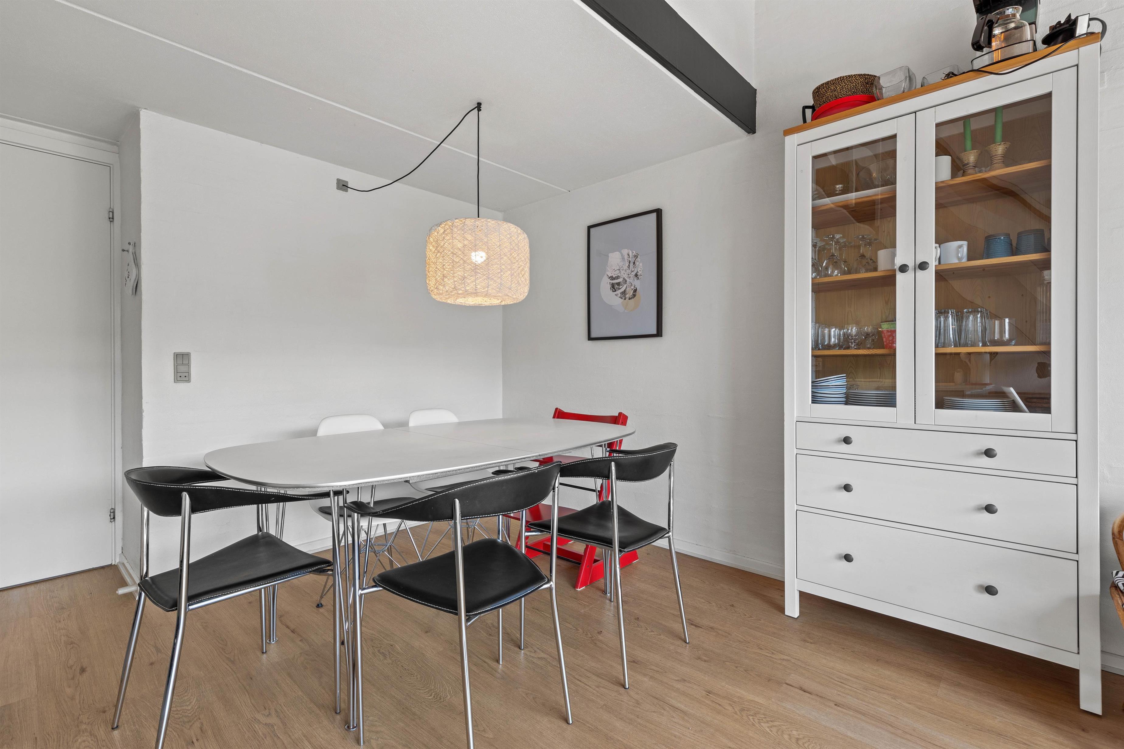Når du træder ind i lejligheden, bliver du mødt af en lys og moderne atmosfære. Lejligheden byder på en flot indretning, samt lyse og rolige farver. Du har muligheden for at slappe af i det lækre sofaområde eller hygge dig med madlavning i det åbne køkken. Køkken og stue ligger i forlængelse af hinanden, hvilket giver dig og familien mulighed for at være sammen, selv om nogen laver mad og andre slapper af i sofaen.