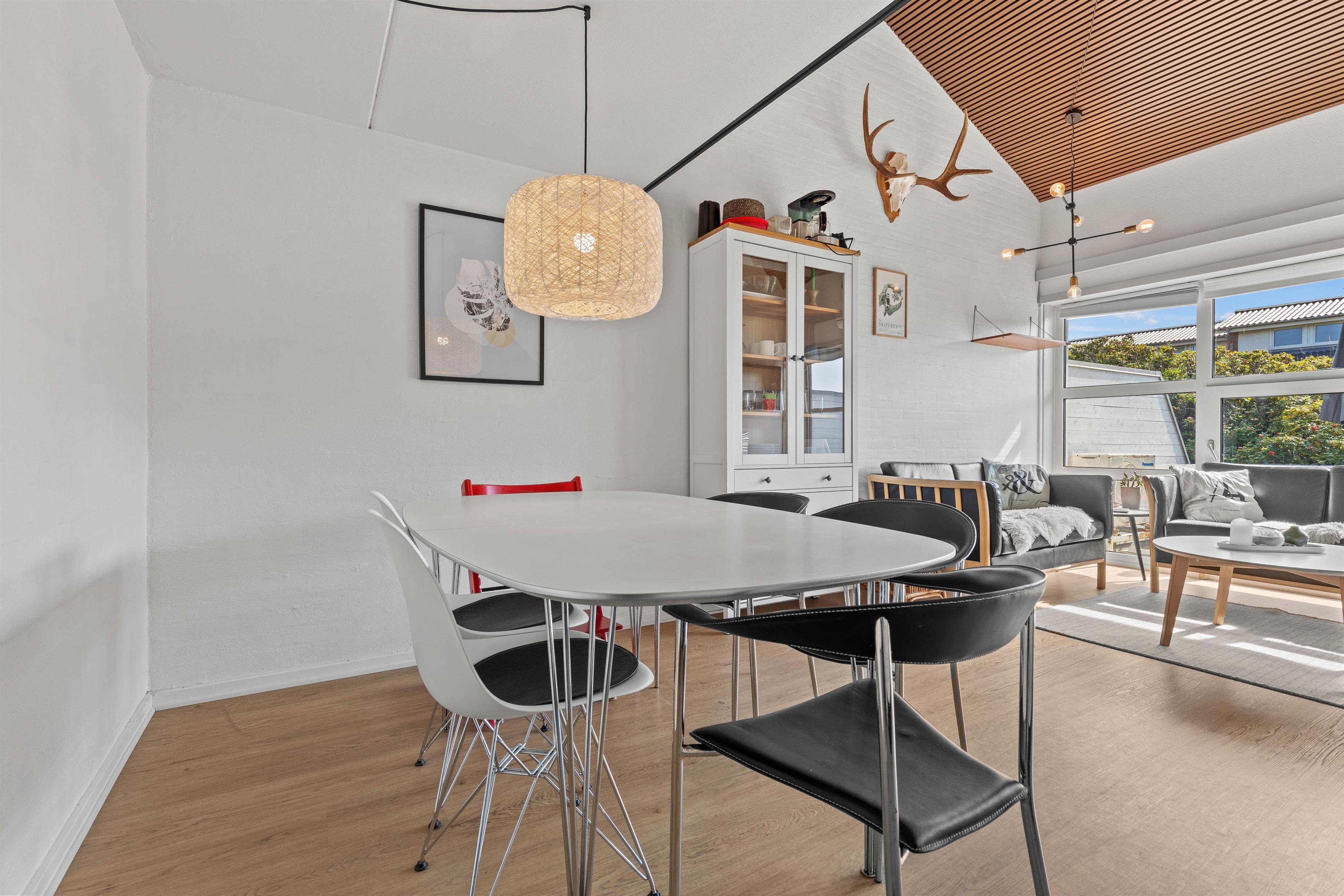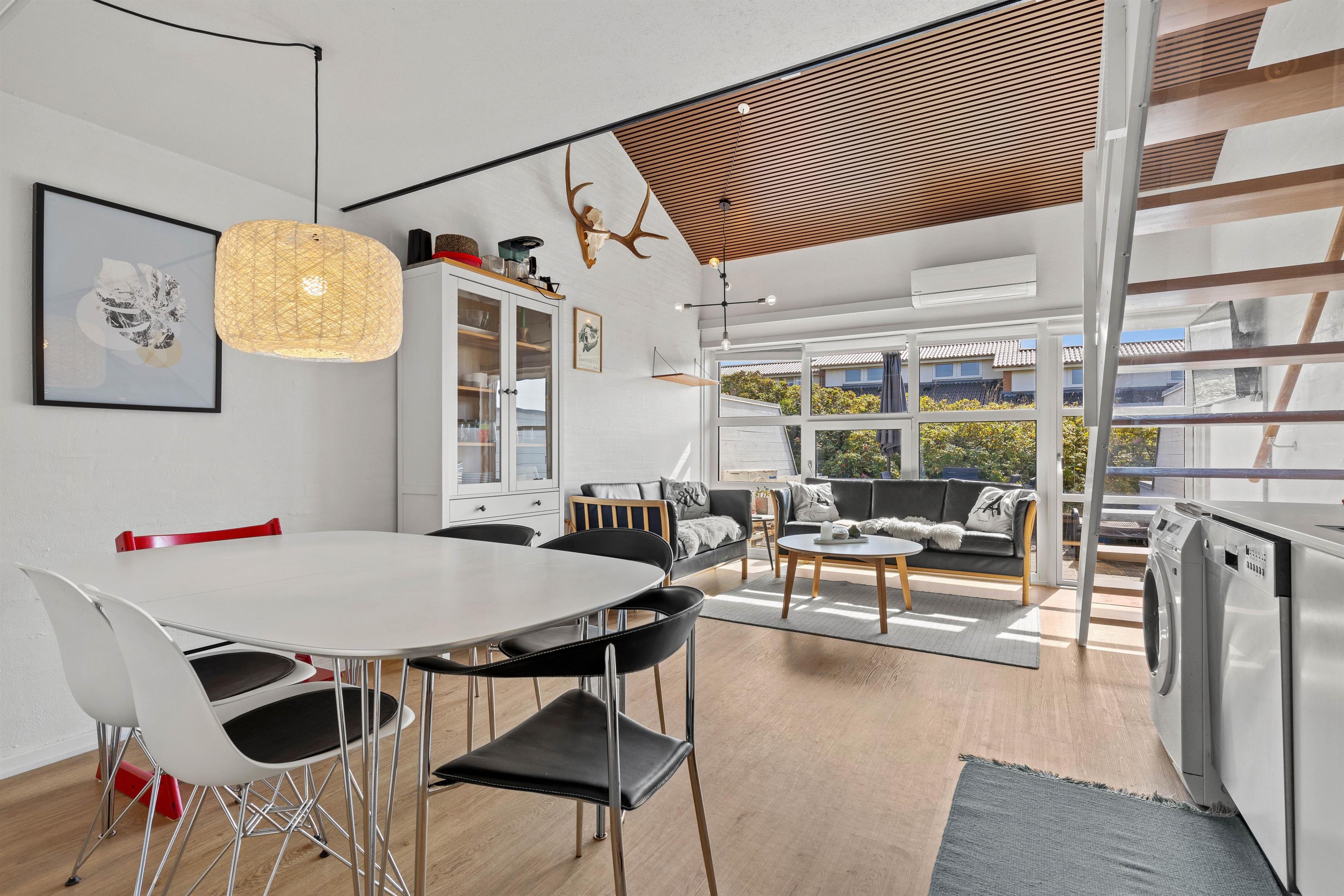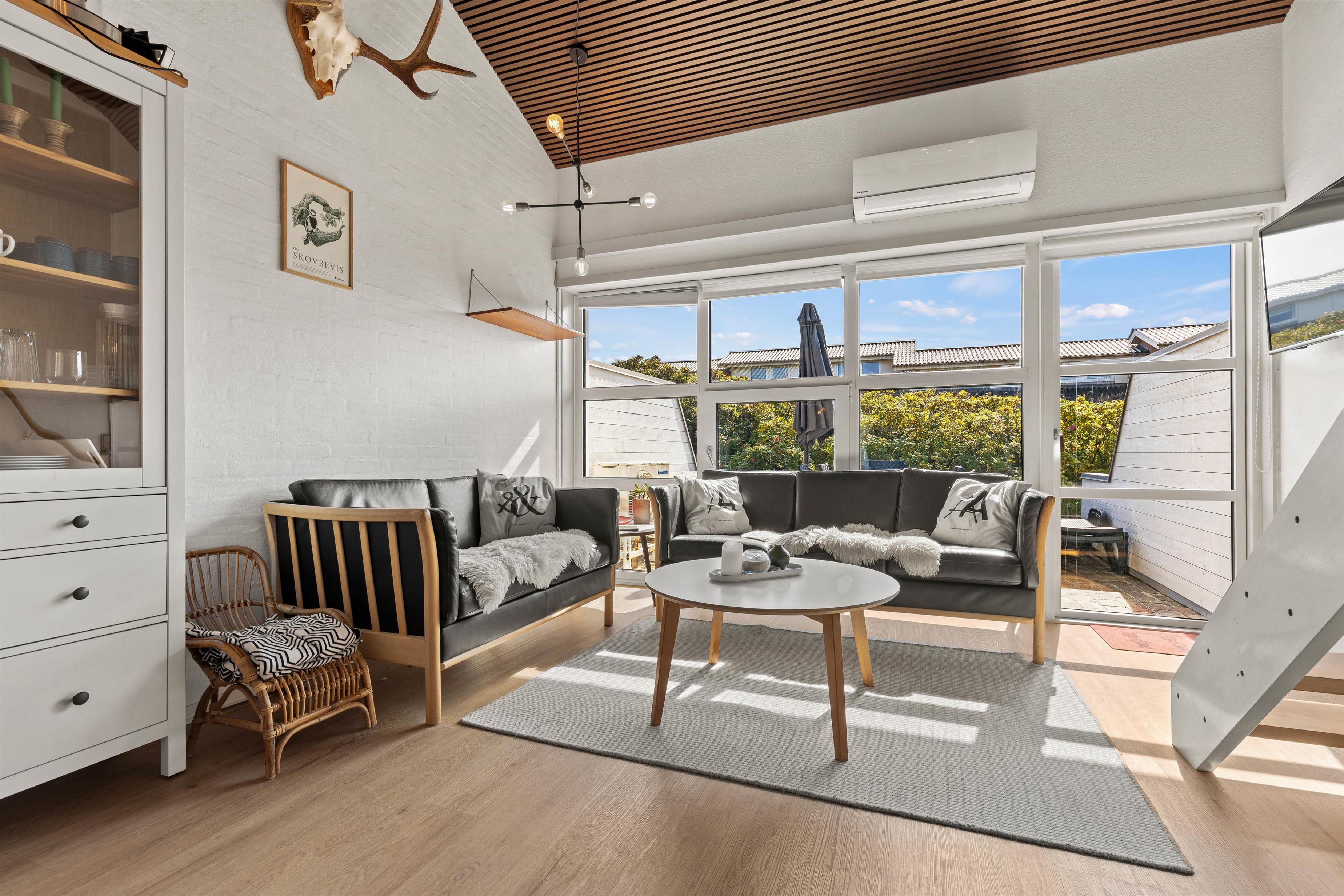 Fra sofaområdet er det muligt at gå direkte ud på den sydvestvendte terrasse, hvor du kan sidde og nyde solen eller sidde ude og spise i det gode vejr.