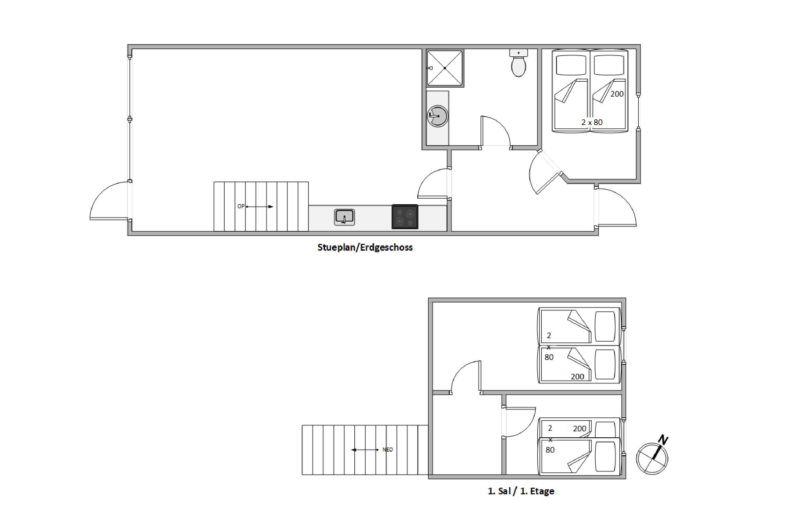 Jeres feriedomicil består af 2 soverum, et bad og det klassiske åbne stue-køkken område, hvor der kan hygges med fælles madlavning, en god film, familiespil eller måske med en god bog på sofaen – evt. afløst af lidt surfen på nettet, her er naturligvis gratis internet. Et af soverummene befinder sig på 1. sal.
