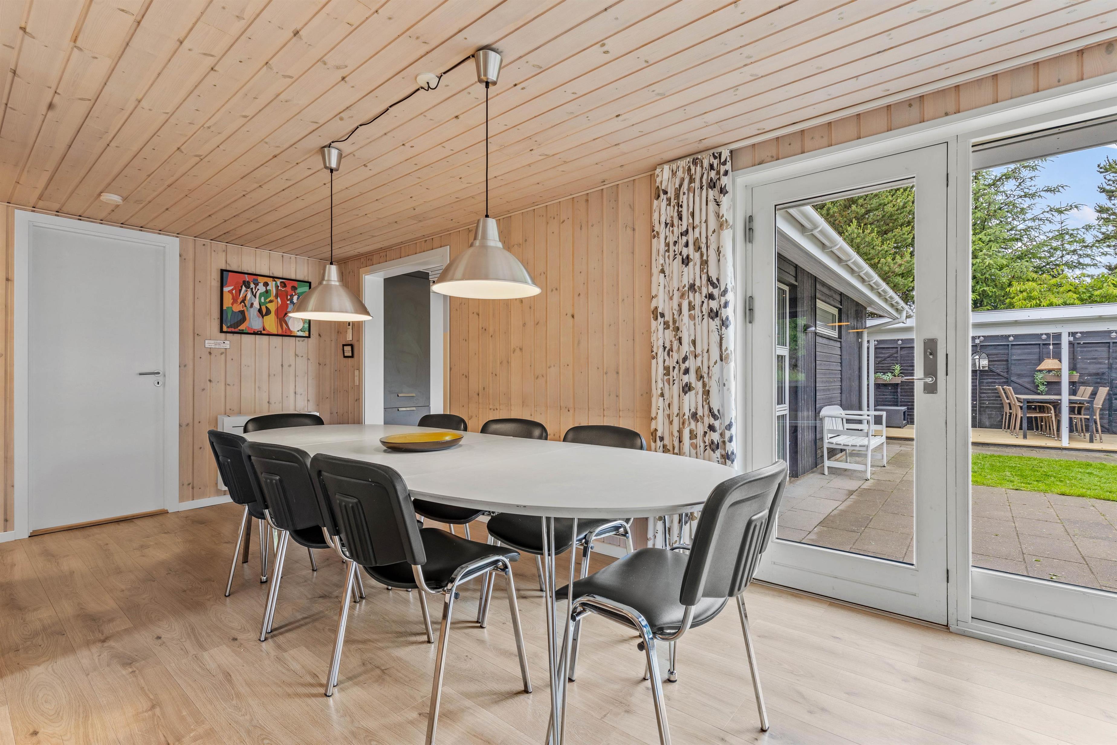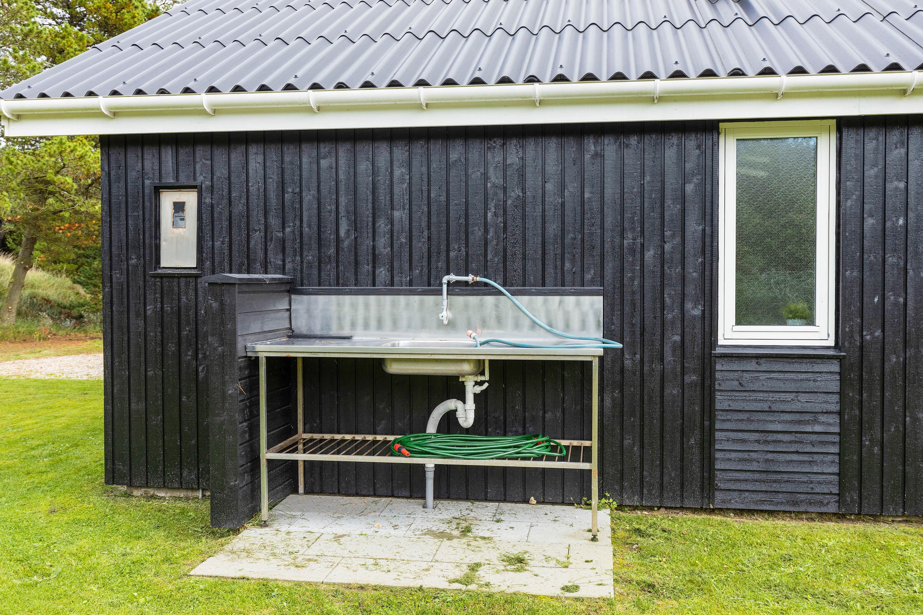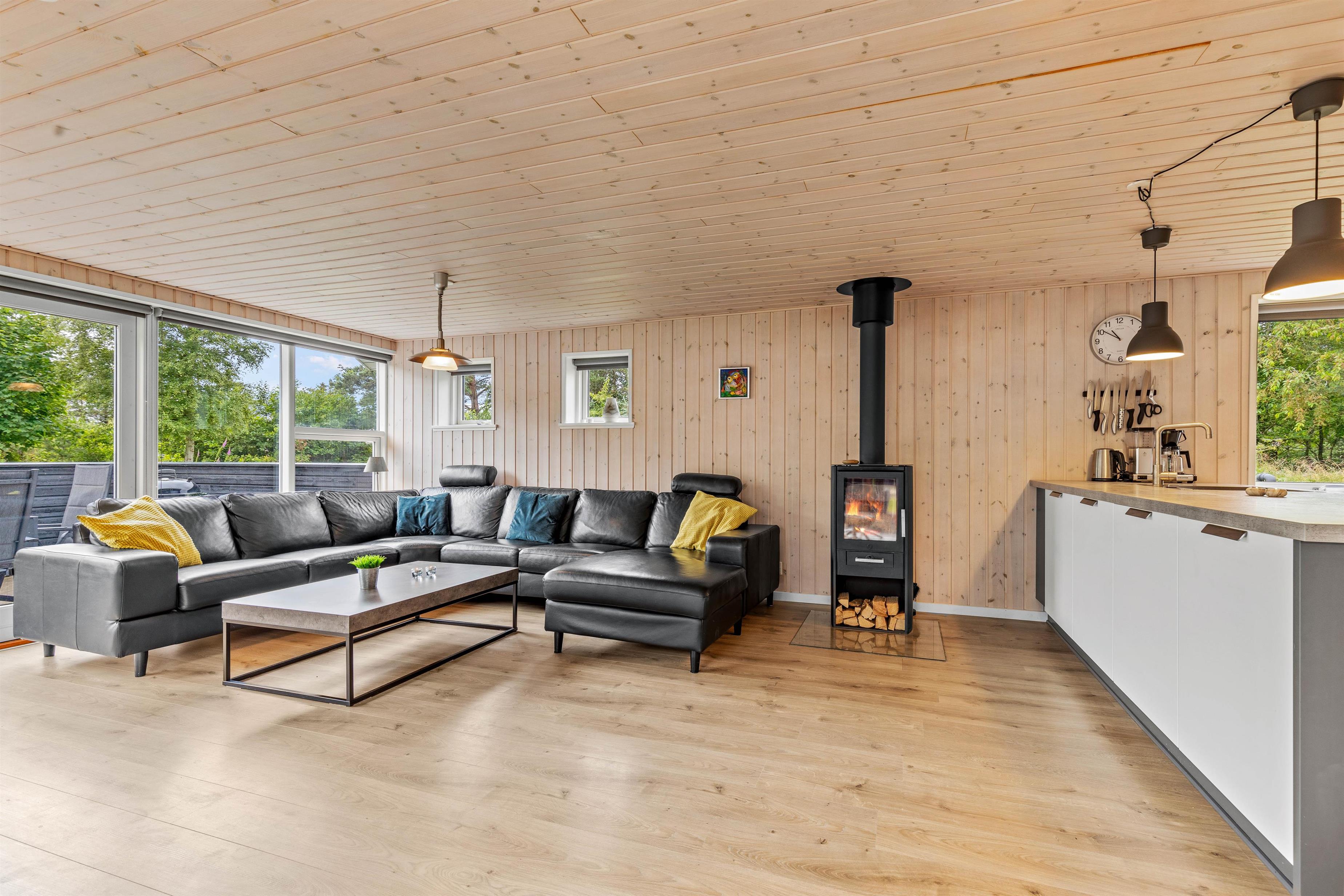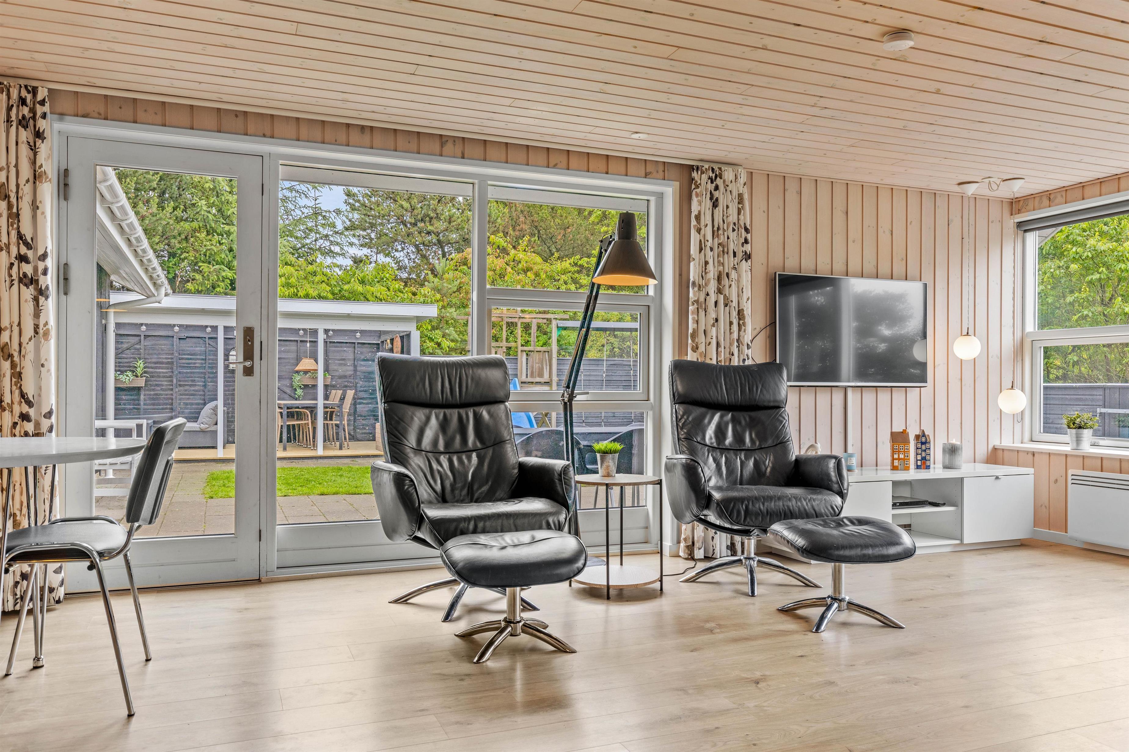 Det er ikke kun indvendigt, sommerhuset er spækket med fede feriehighlights. I får også et helt fantastisk udendørsareal. En stor, lukket terrasse – med markise! – sørger for, at I roligt kan lade både børnene og hundene lege, mens I læser en god bog i solen. På terrassen befinder der sig desuden et stykke græsplæne og et legeområde til børnene.