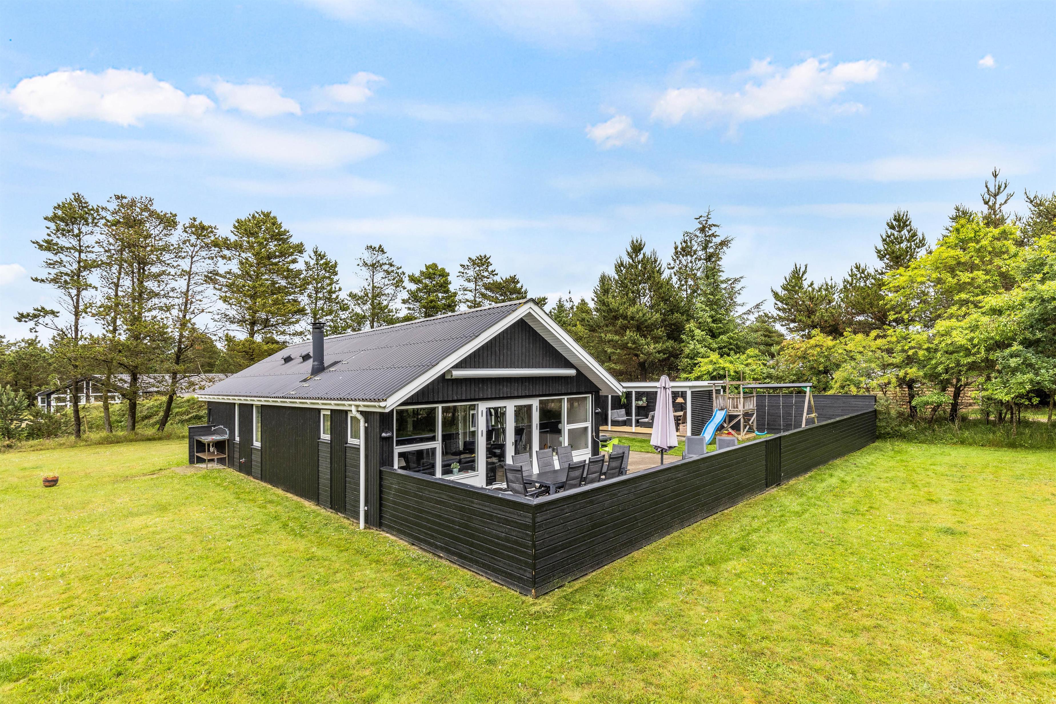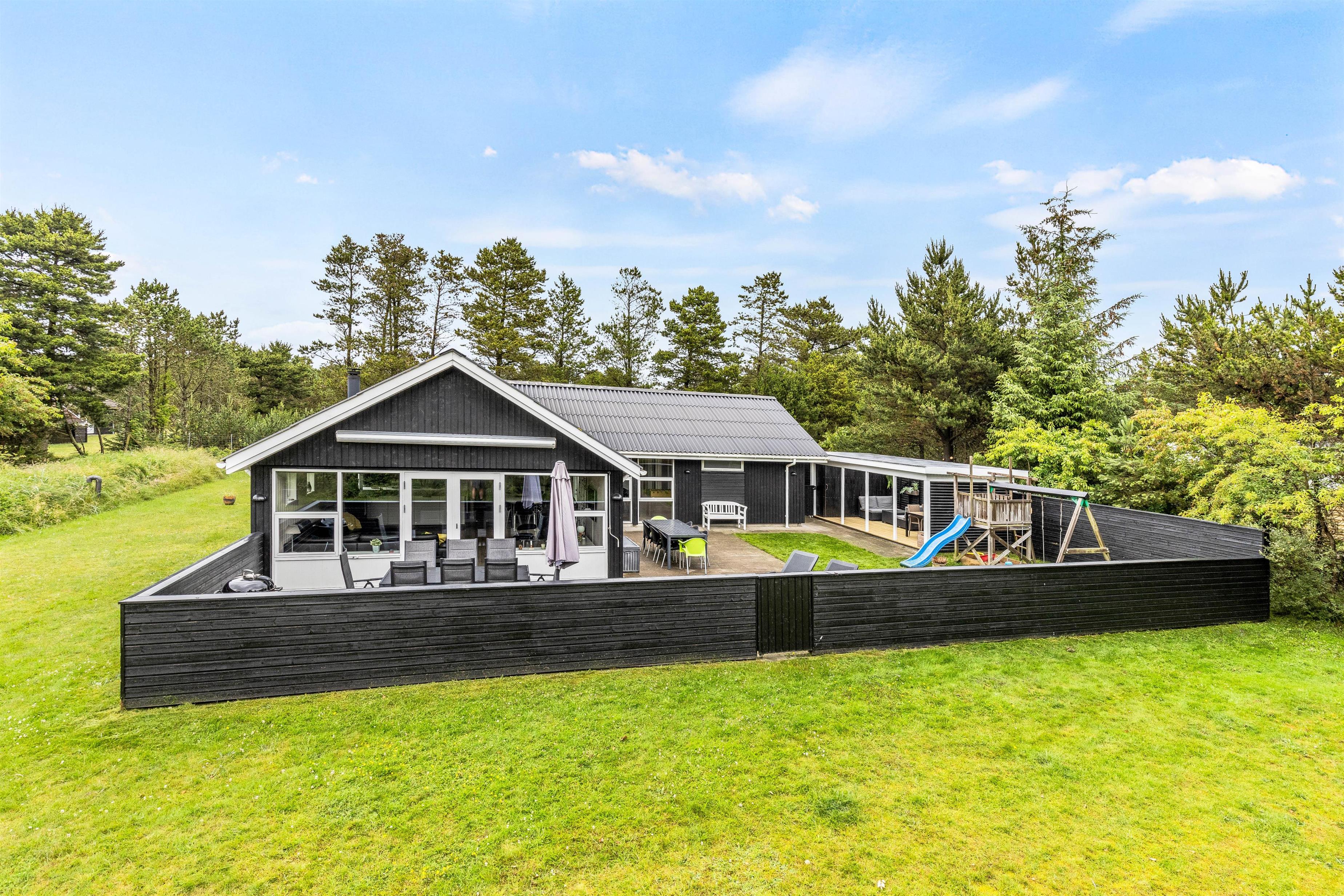 Dette skønne sommerhus i Vejers Strand er et oplagt valg til den næste familieferie. Her er plads til 8 personer og 3 hunde – så ingen familiemedlemmer behøver at blive hjemme. Den indbydende indretning har noget for enhver smag, både et aktivitetsrum og et luksuriøst wellnessbadeværelse. Prikken over i’et er det fantastiske udeareal med lukket terrasse, legeplads og en stor og velholdt græsplæne.