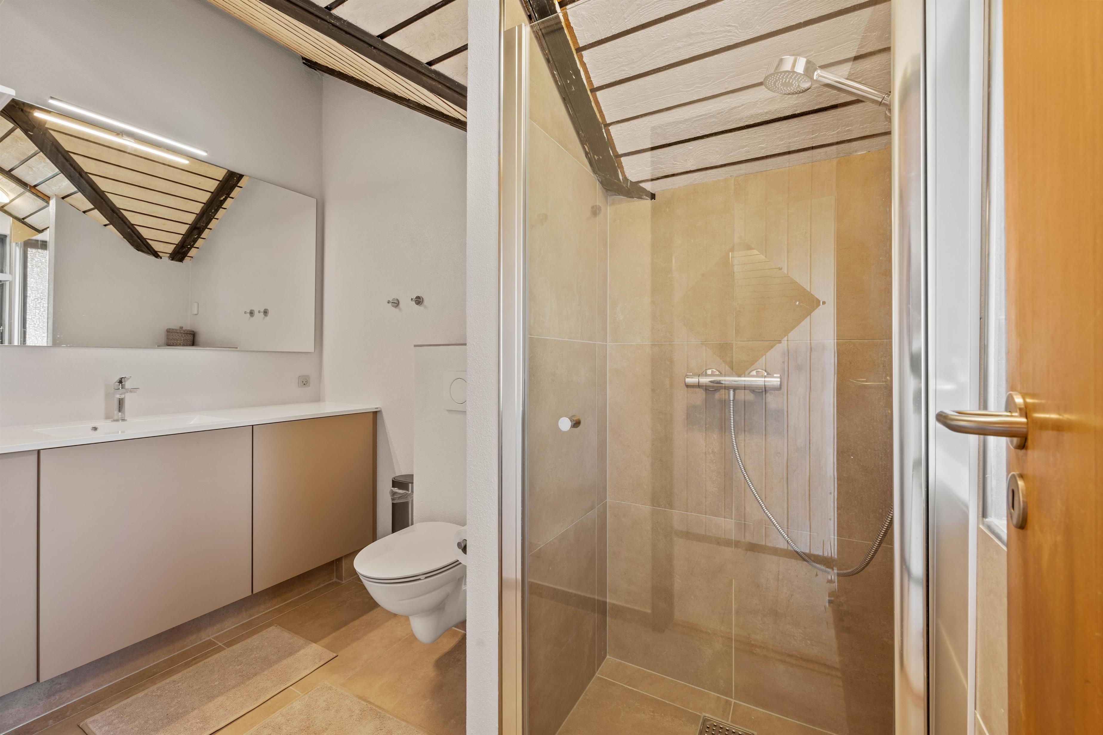 Om sommeren afspiller ferielivet sig sikkert mest på den skønne terrasse og den dejligt store naturgrund. Bare følg med solen rund om huset, til alle sider finder I gode og hyggelige muligheder for at sidde med kaffen eller at slappe af på liggestolene. Udebruseren kan benyttes fra 1. maj til 1. oktober.