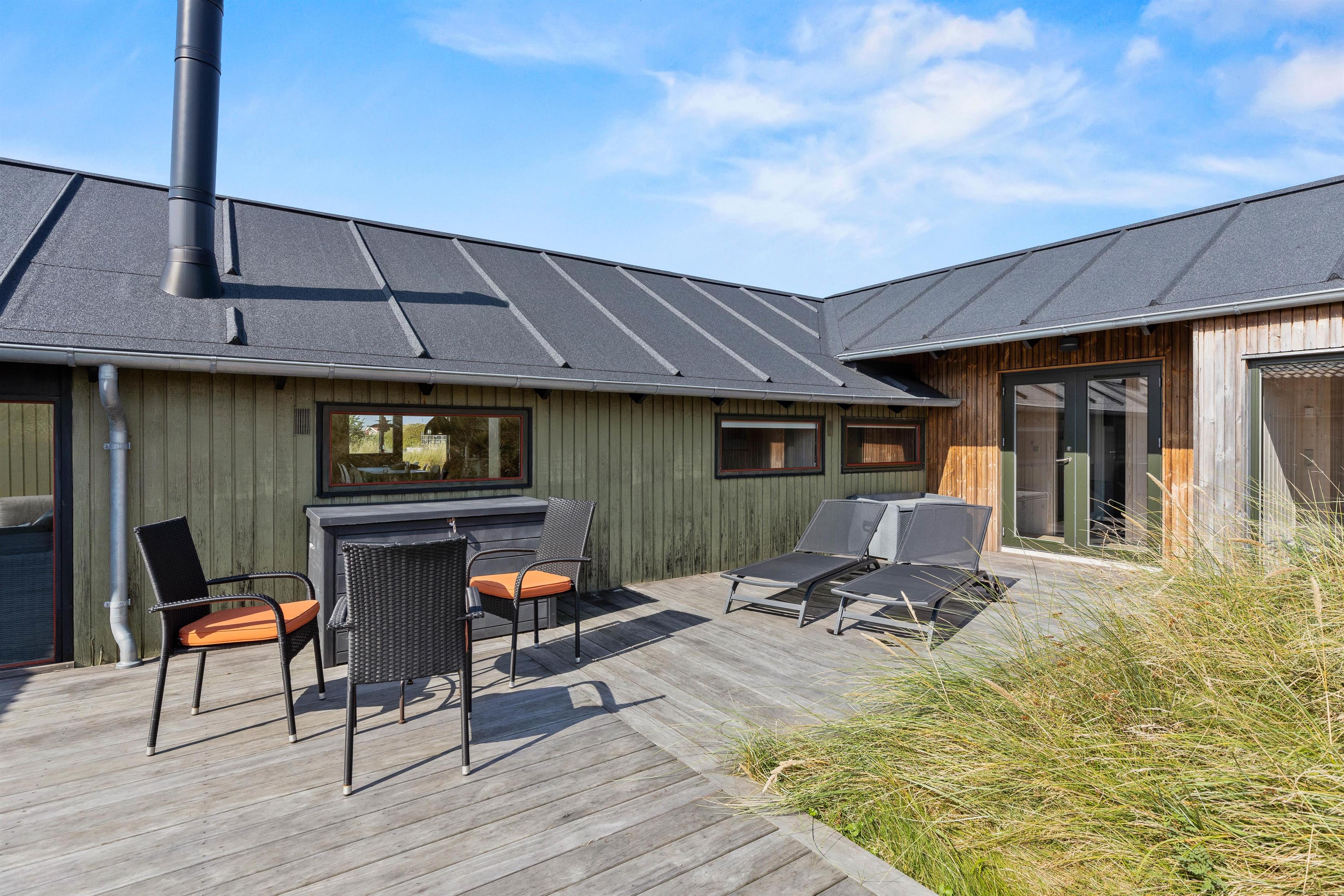 Også i regnvejr eller blæst er det muligt at tilbringe tid uden for og nyde naturen og den skønne salte vestvind, da I på Nordvej 40 har en dejlig afskærmet til dels overdækket terrasse.