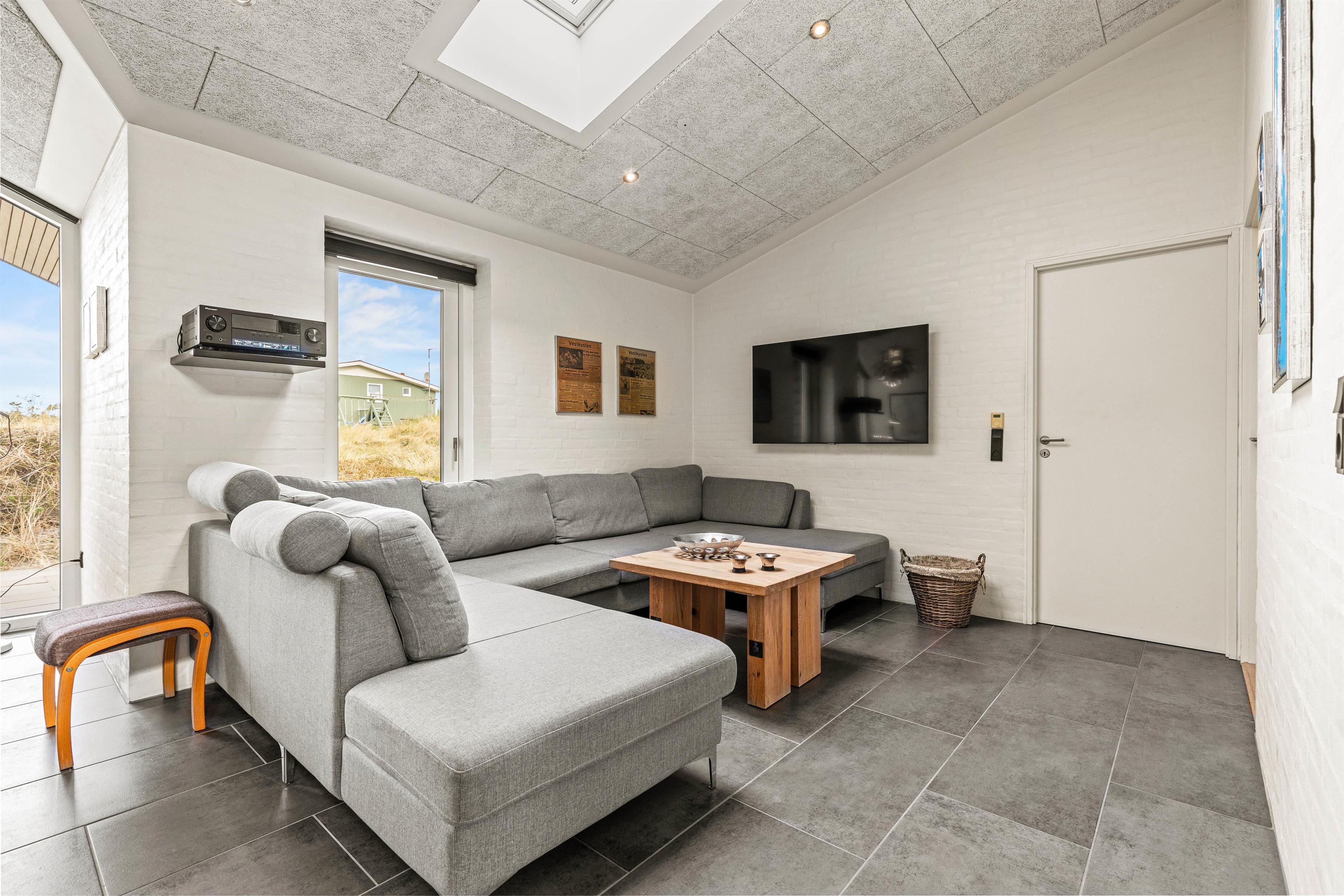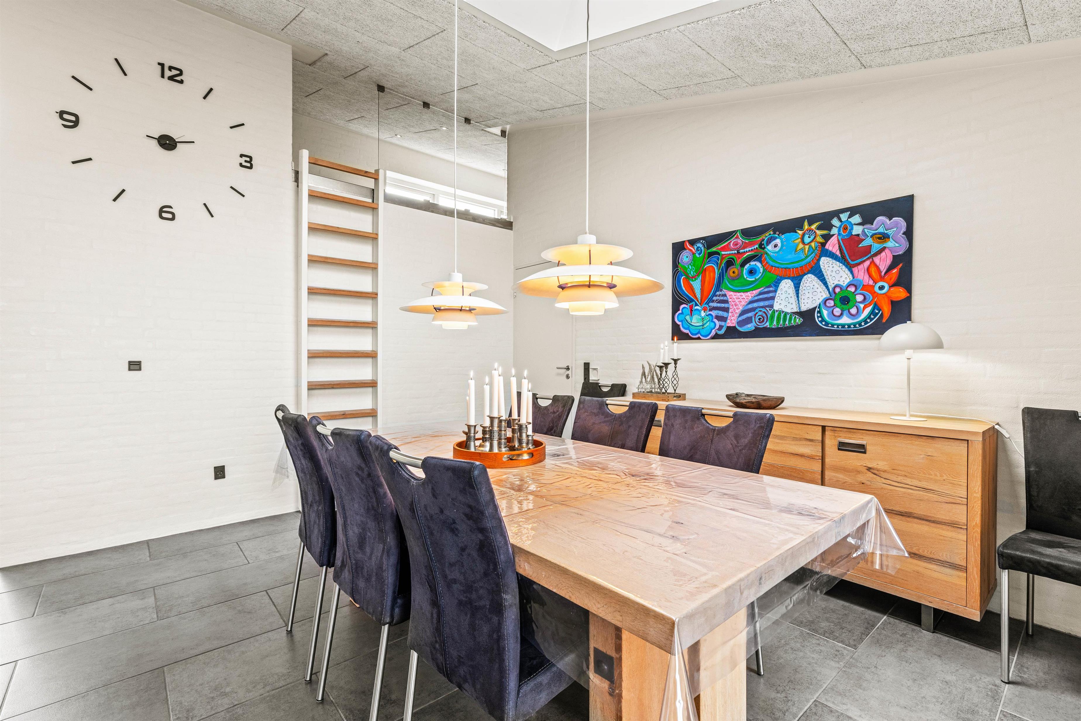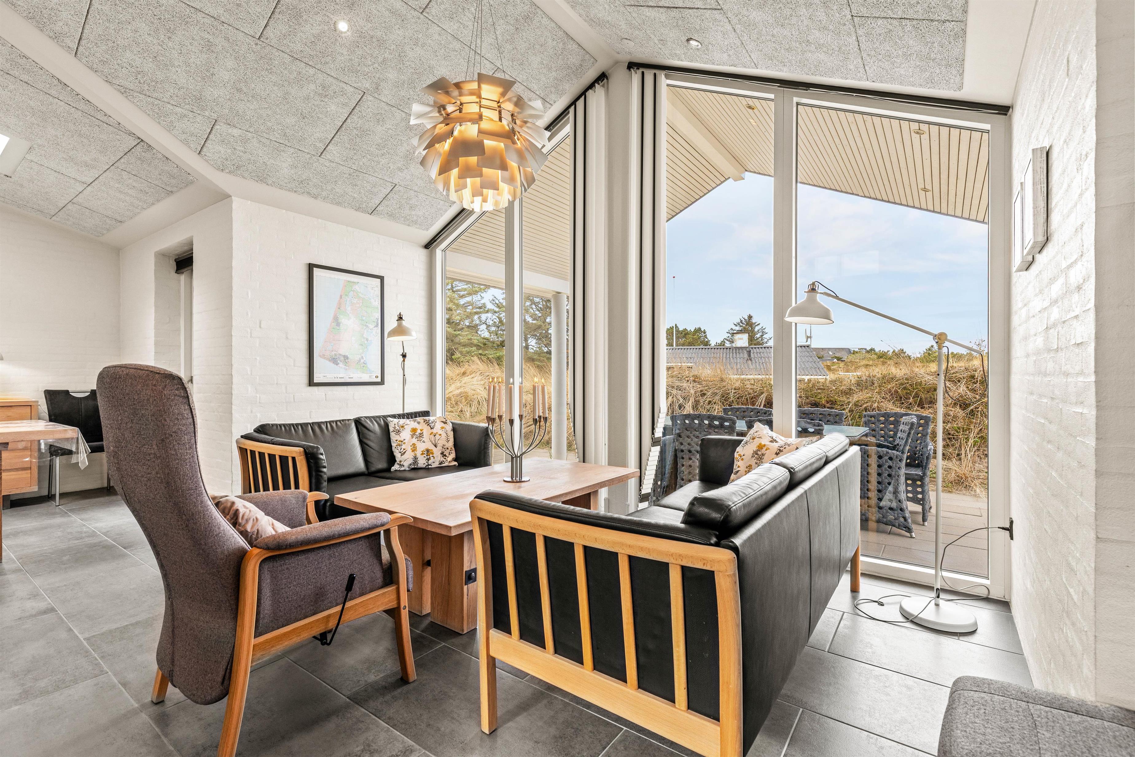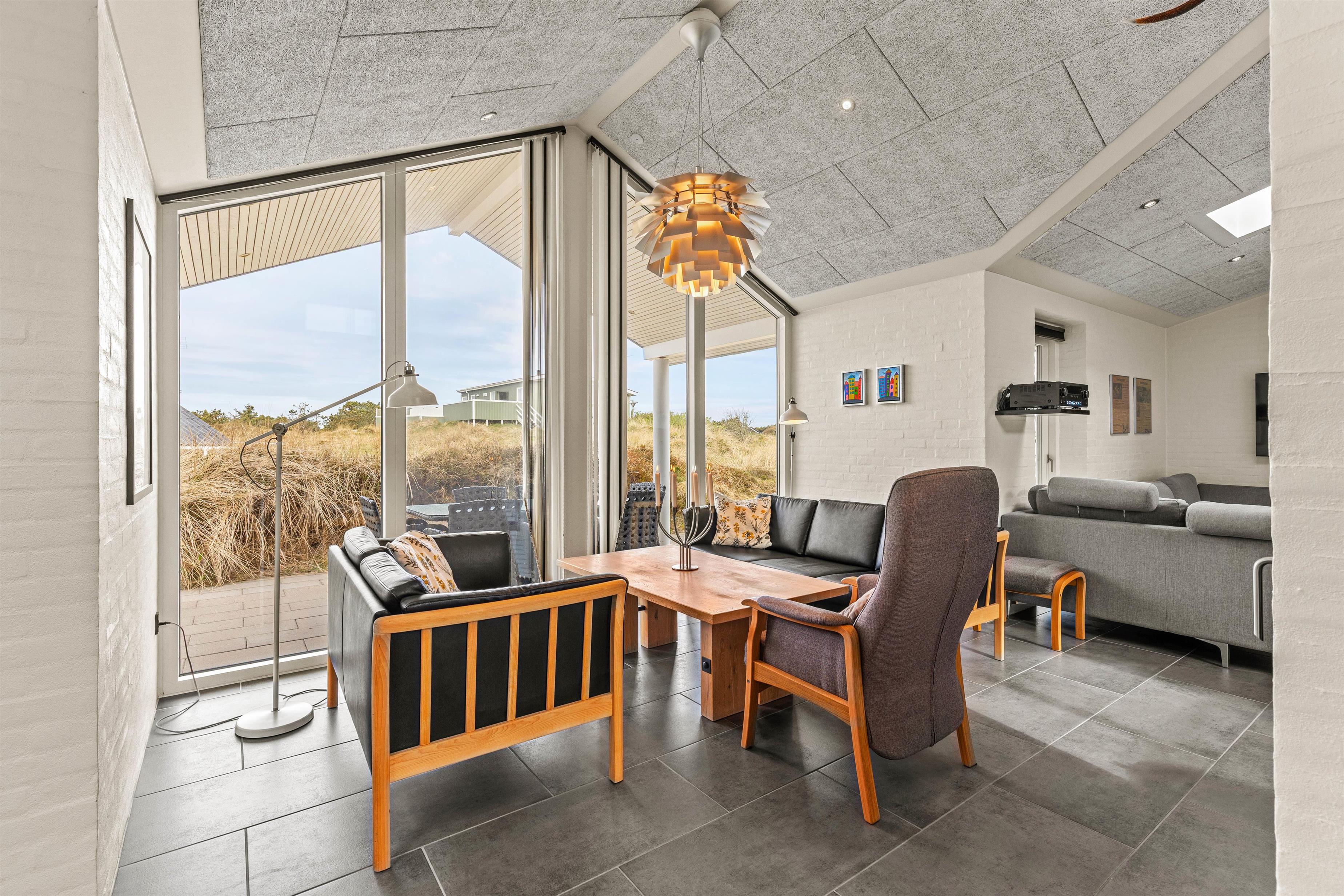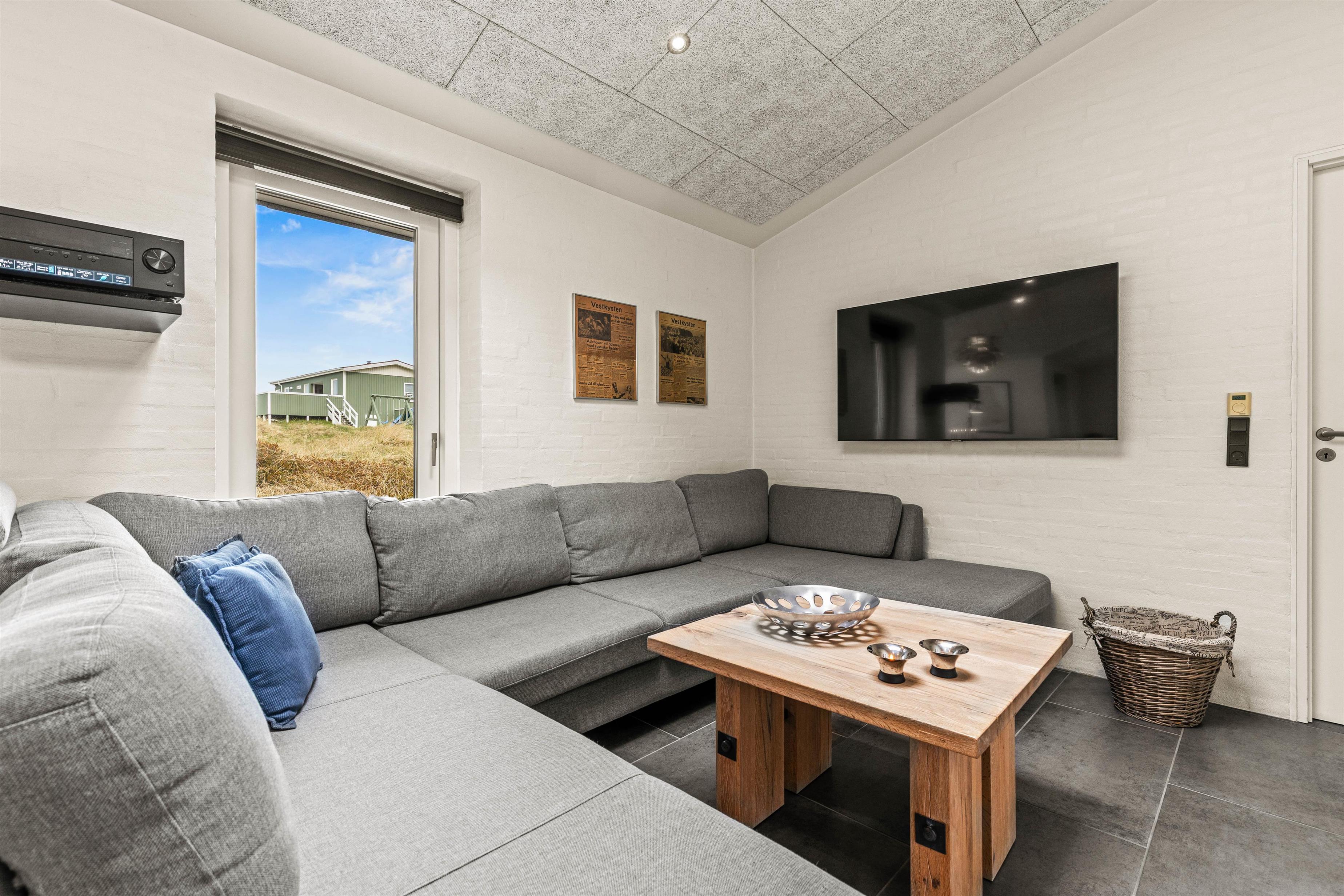 Stilfuldt indrettet med masser af gode bekvemme siddemuligheder indbyder Risvej 8 til en dejlig ferie for op til 8 personer. Det store smukke fællesrum med det store moderne køkken er lyst og venligt indrettet og det har store vinduespartier for smuk udsigt og godt lysindfald. Om aftenen, når mørket falder på, så sørger en brændeovn for en hyggelig stemning.