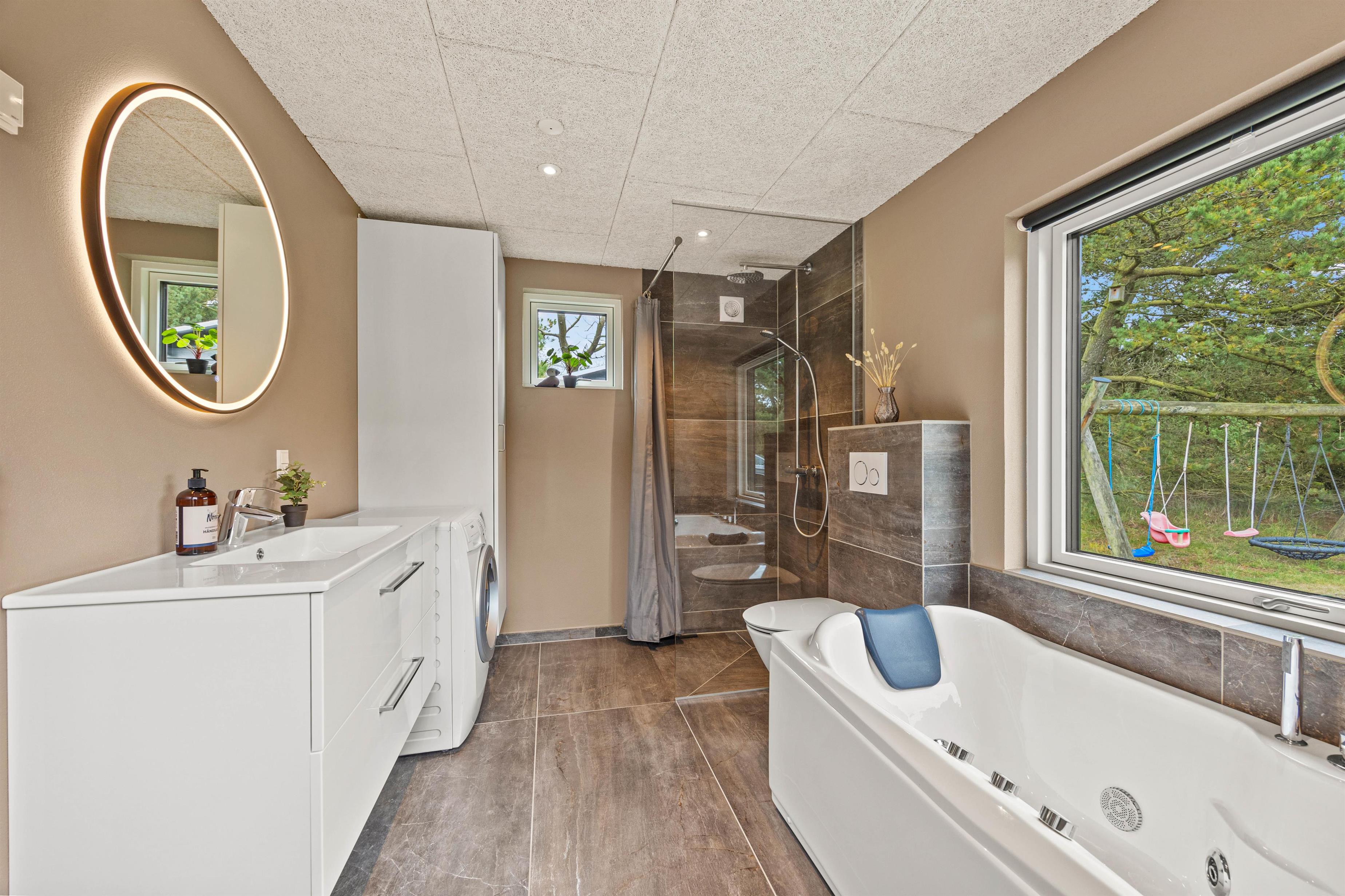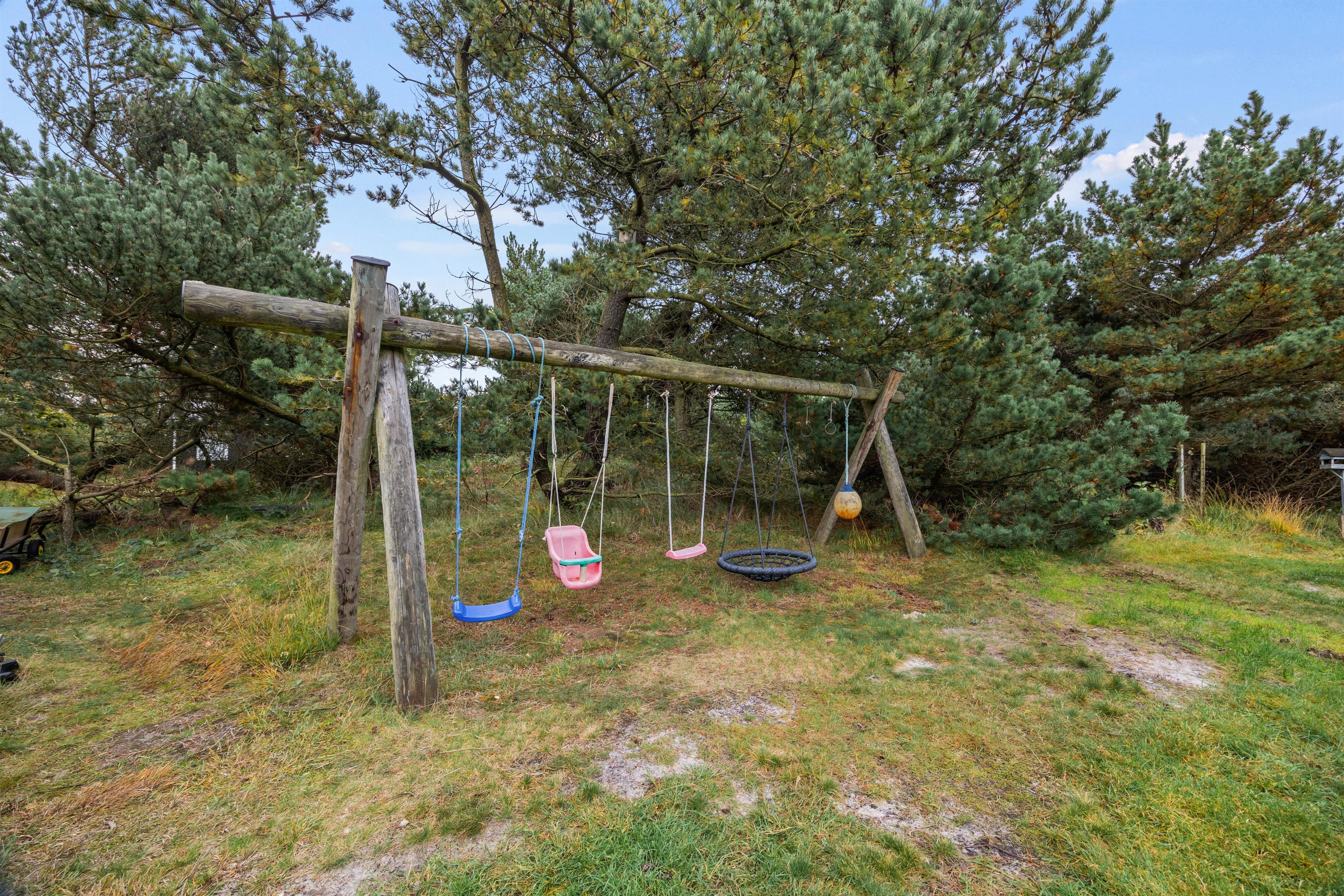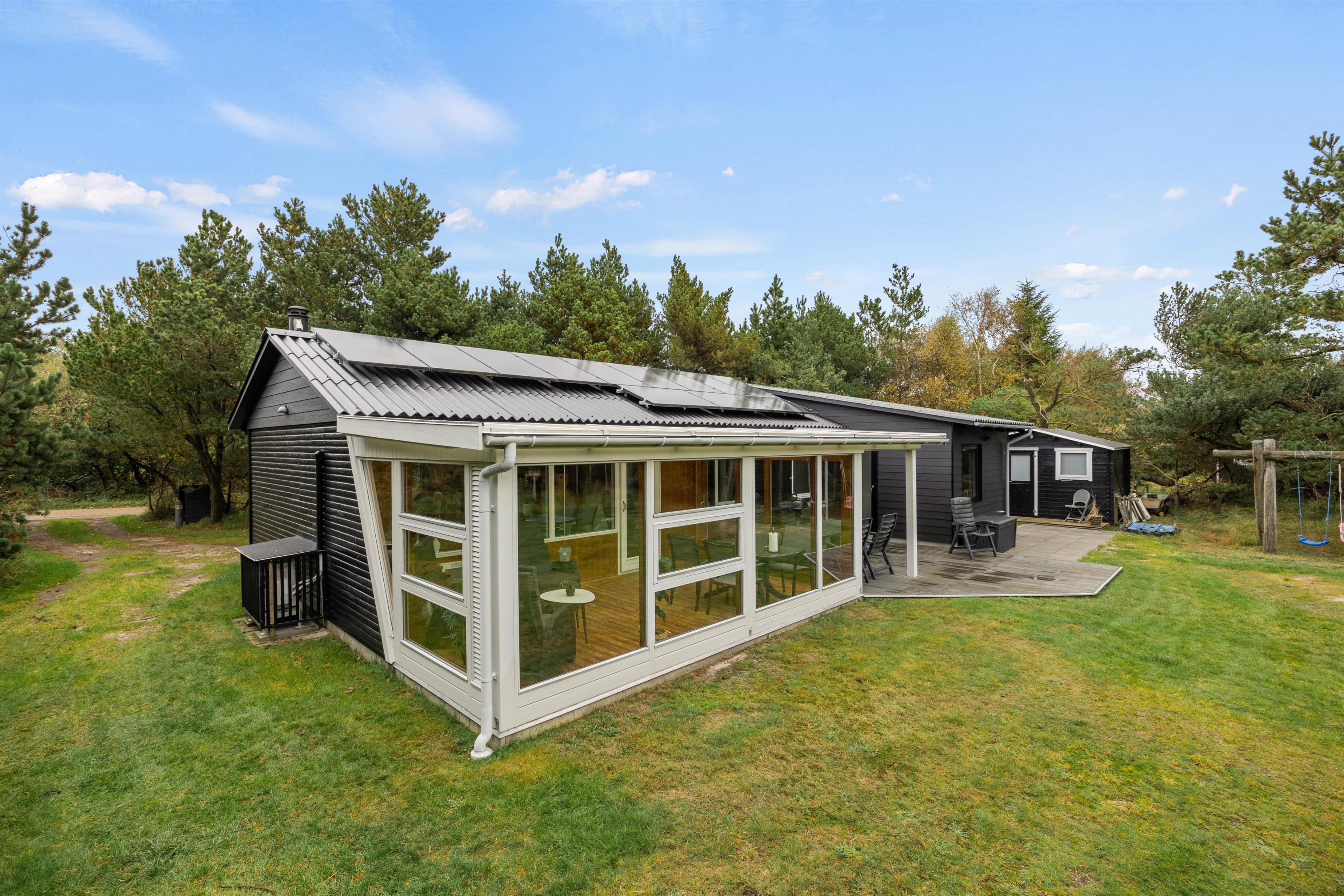 På den 1901 m² store grund kan jeres børn lege i sandkassen eller gynge på gyngestativet. Den delvist overdækkede terrasse udgør det idéelle sted at nyde lune sommeraftener på den danske vestkyst.