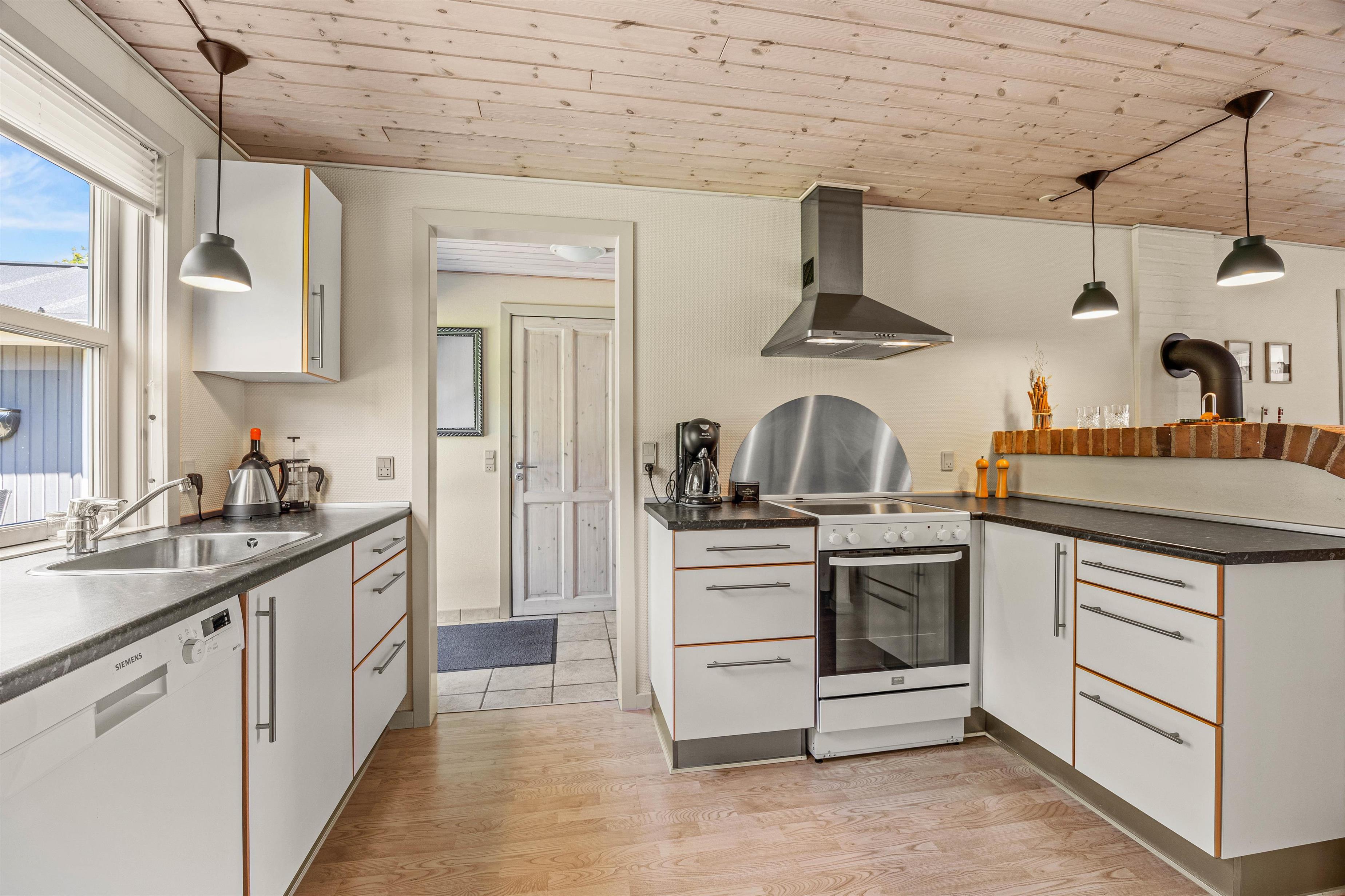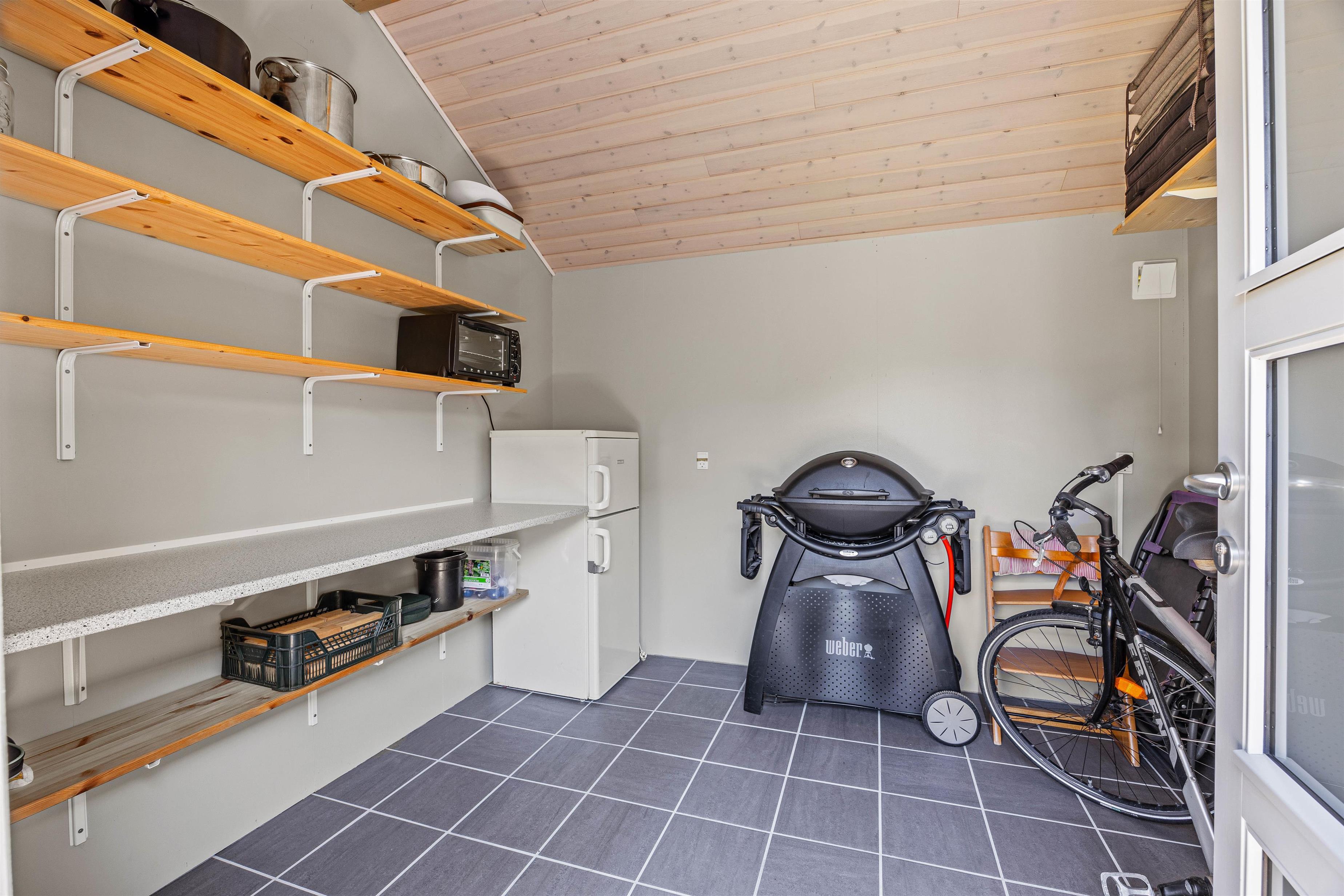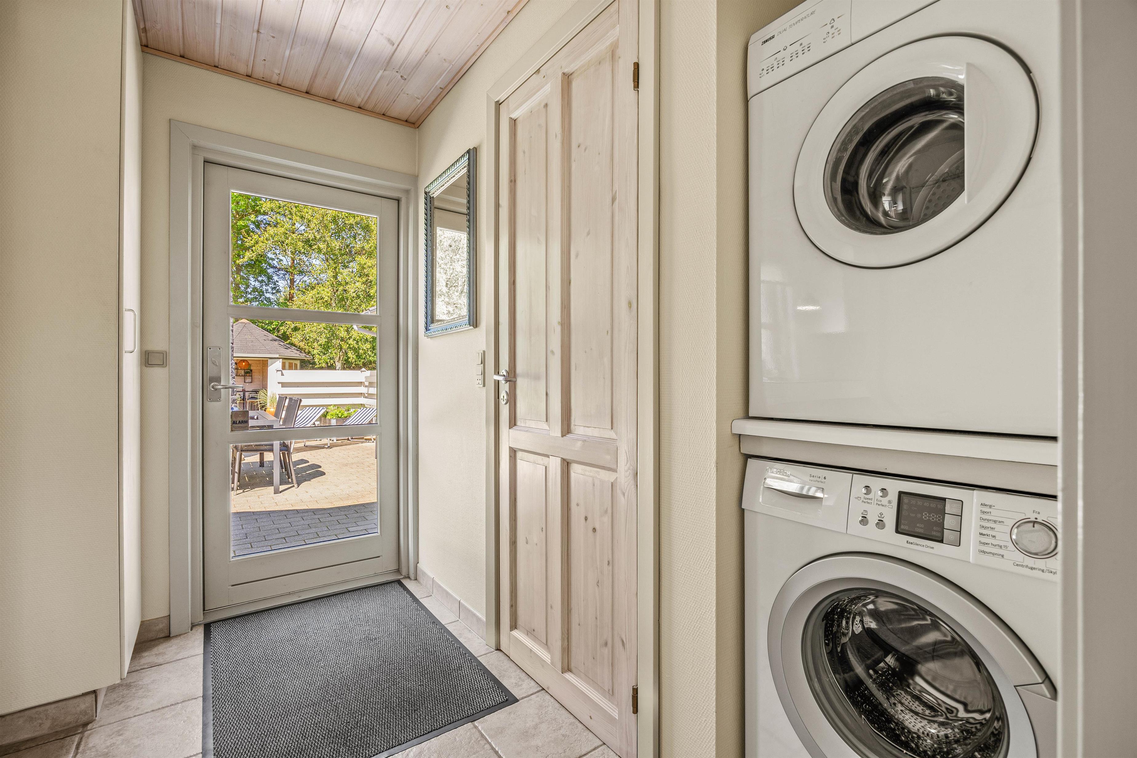 Det veludstyrede køkken med mikroovn og opvaskemaskine gør det sjovt og hyggeligt at tilberede måltider i fællesskab, mens vaskemaskine og tørretumbler vil være uundværlige, praktiske løsninger især under længerevarende ophold. Skulle I få brug for mere køleplads udover køleskabet i køkkenet, er der et ekstra køleskab med frostboks i skuret.