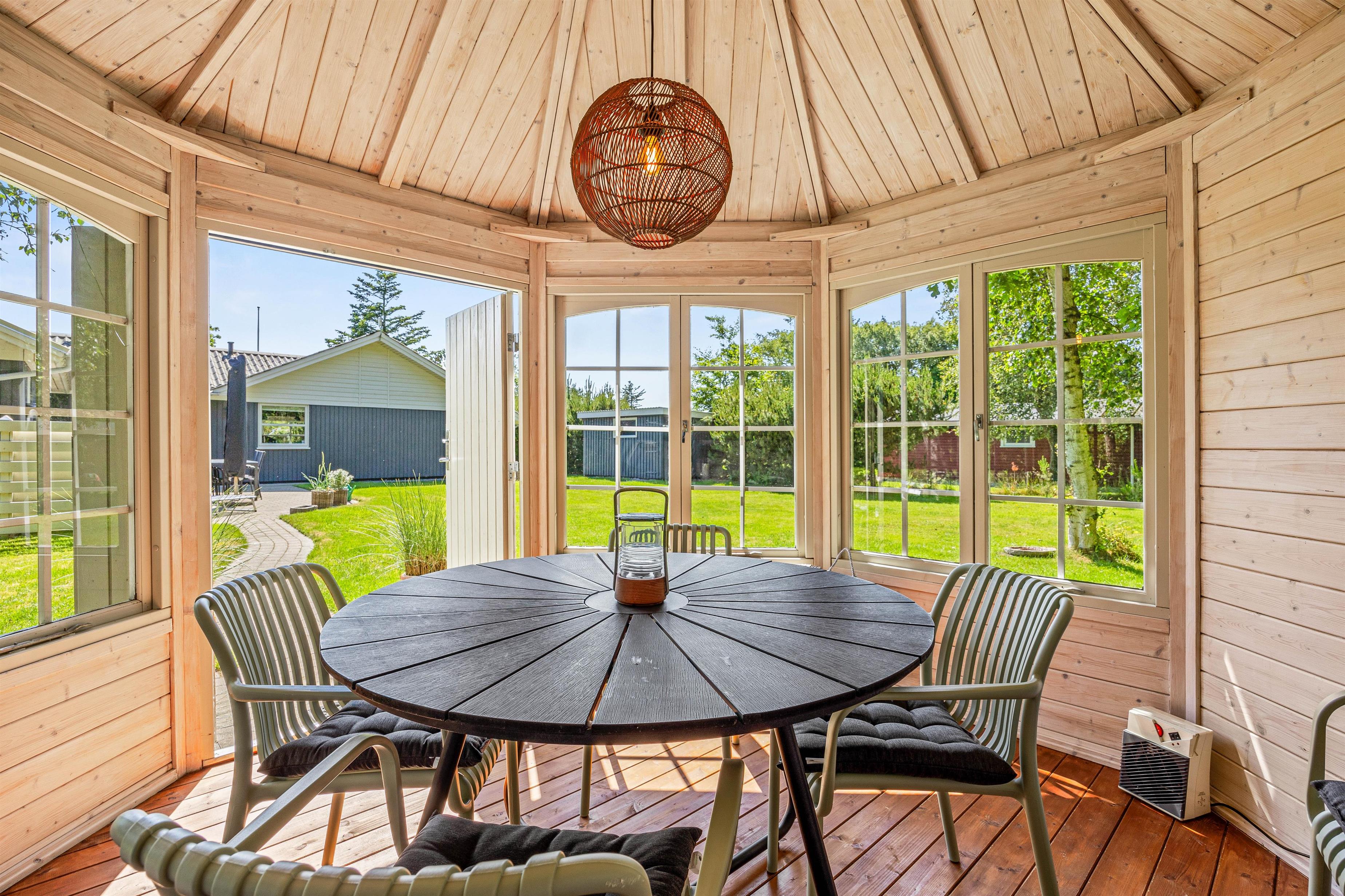 Skulle der falde lidt regn, er den lille havepavillon altid hyggelig at trække sig tilbage til og få en kop kaffe eller te og et stykke kage i, måske over en god bog.