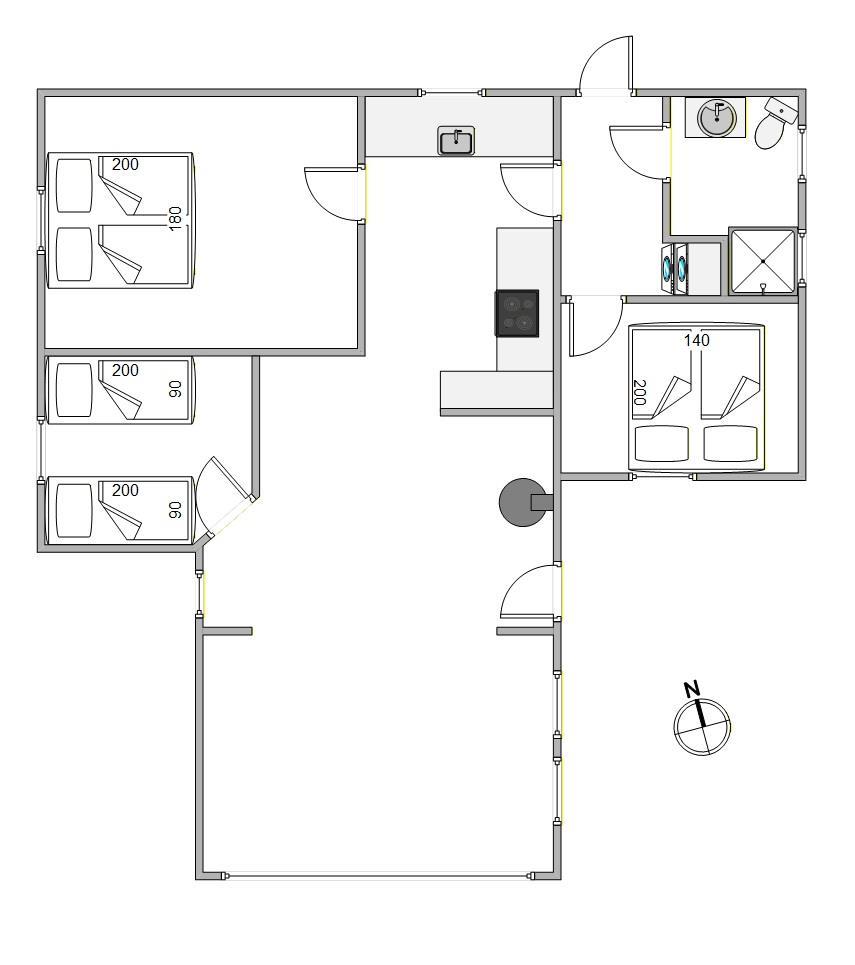 Med en rummelig boligflade på 89 m2 er sommerhuset i Vejers egnet til op til 6 personer. Det rummer 3 smagfuldt indrettede soveværelser med 2 dobbeltsenge og 2 enkeltsenge, hvorved det er idéelt til både familier og mindre grupper af venner.