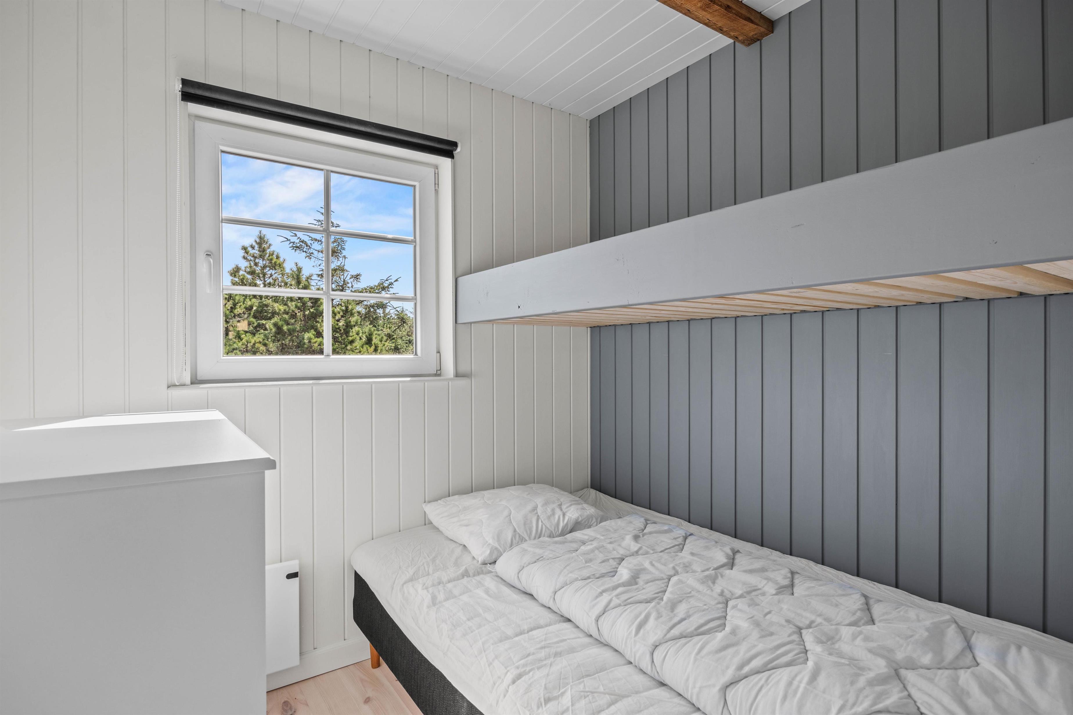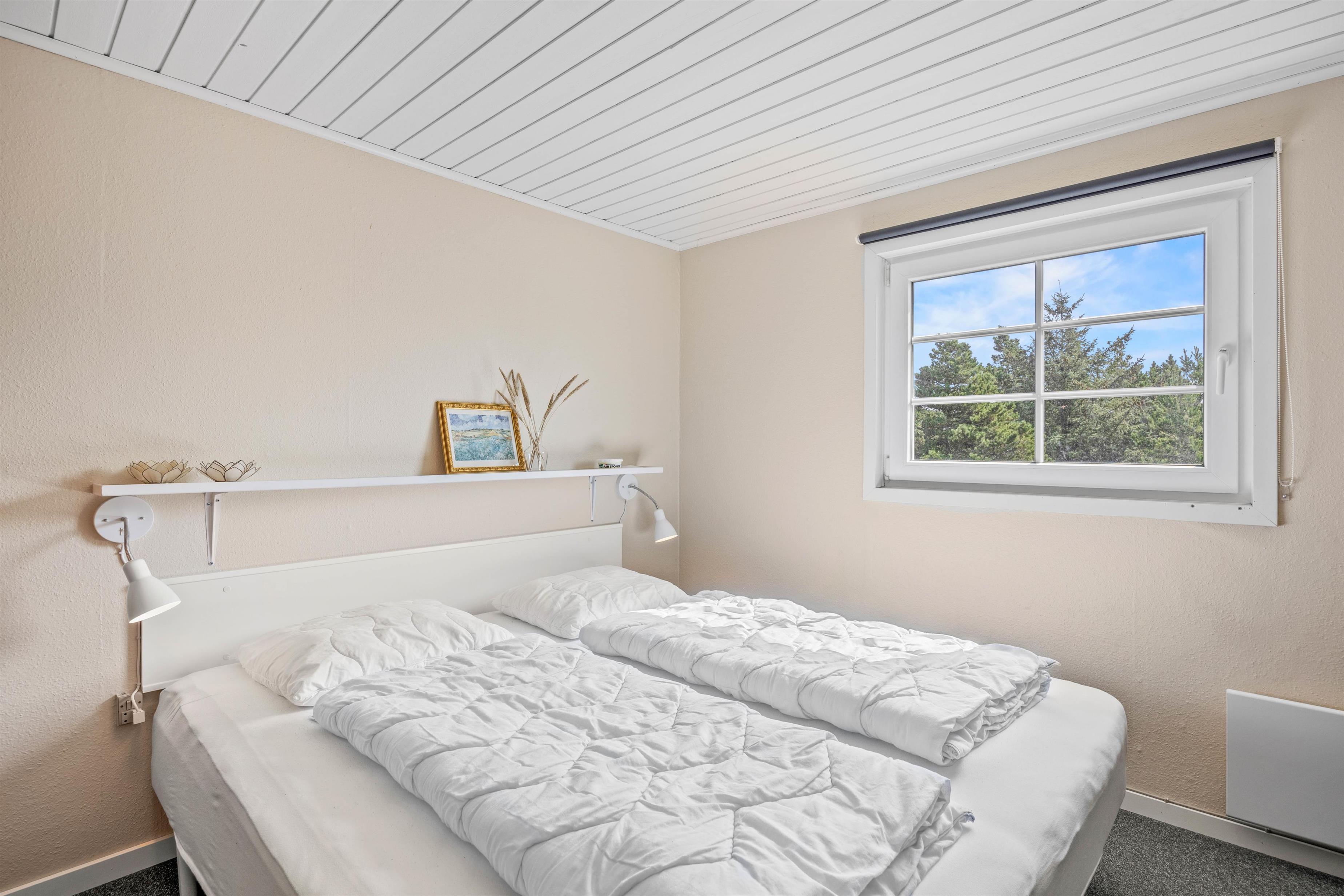 De 3 soveværelser er enkelt og funktionelt indrettede med gode sengepladser til i alt 6 personer; ét værelse har dobbeltseng, mens de 2 andre hver har en køjeseng med en underkøje på 120 cm og en overkøje på 70 cm.