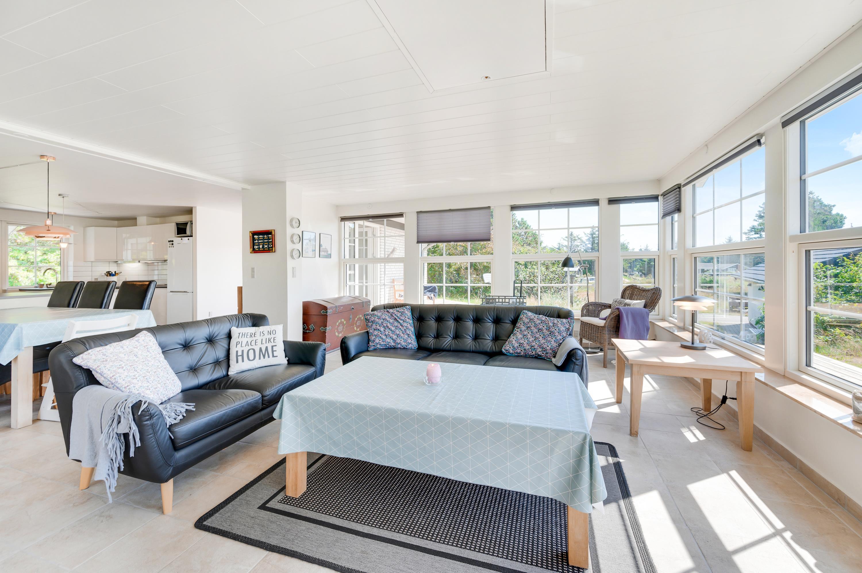 Foruden de 2 badeværelser er der 4 soveværelser og ét stort opholdsrum i sommerhuset. I opholdsrummet vil I helt sikkert komme til at tilbringe mange skønne timer sammen med lækker mad, gode spil og sjove film. Der er ikke dansk tv udover en google cromecast som I naturligvis kan caste fra(DR gratis)! Som prikken over i’et kan I tænde op i pejsen, der fuldender sommerhusstemningen.
