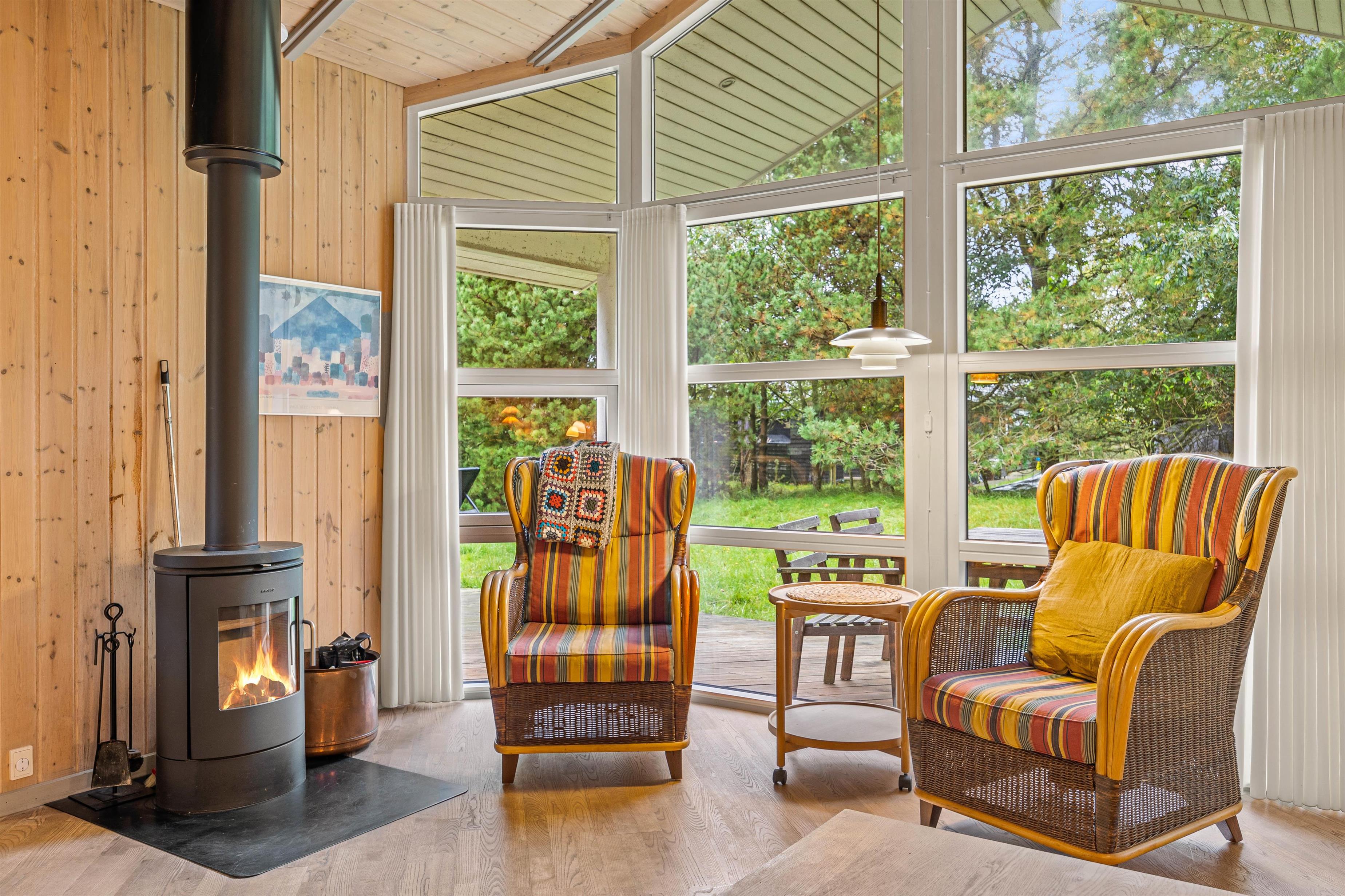 Lyst og åbent feriehus med sauna, spa og brændeovn