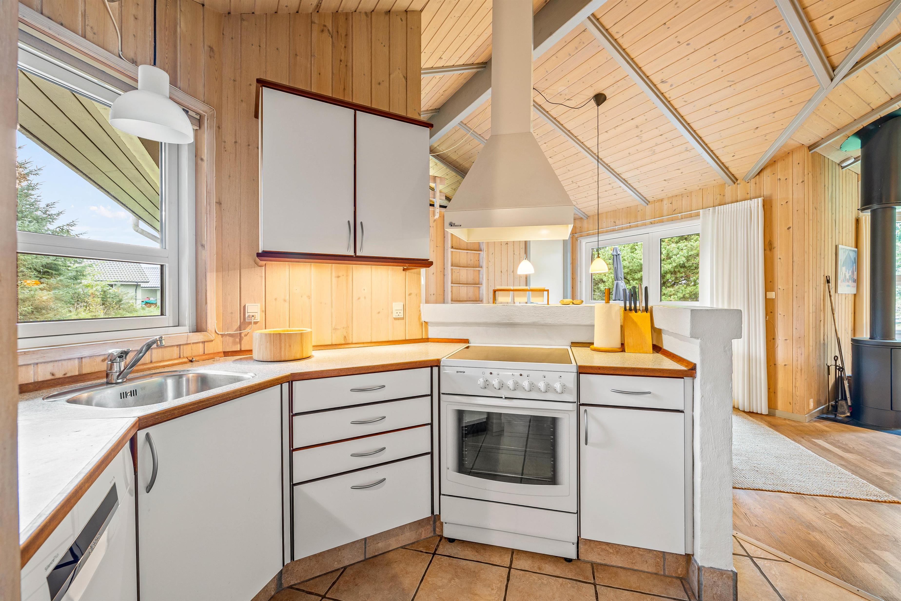 På en dejlig, velholdt naturgrund i Vejers ligger dette charmerende sommerhus og venter på jer. Huset rummer plads til i alt 6 feriegæster og er lyst og åbent indrettet med 2 badeværelser, en hyggelig brændeovn og ikke mindst både sauna og spabad.