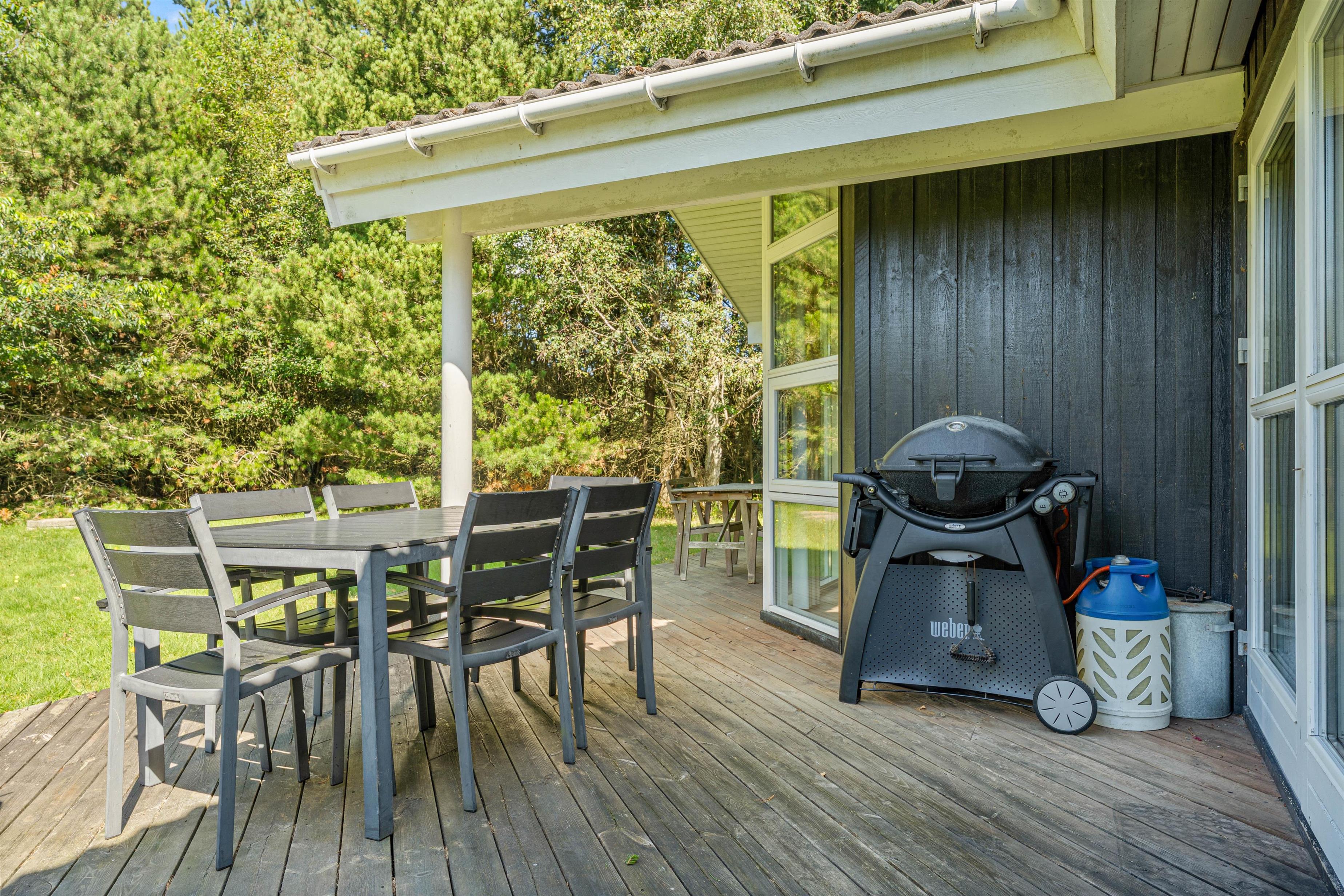 Der er både havemøbler og liggestole, så I kan holde ferie på ægte charter-manér, og med grillen kan der kokkereres en masse lækre feriemåltider, når vejret er til det.