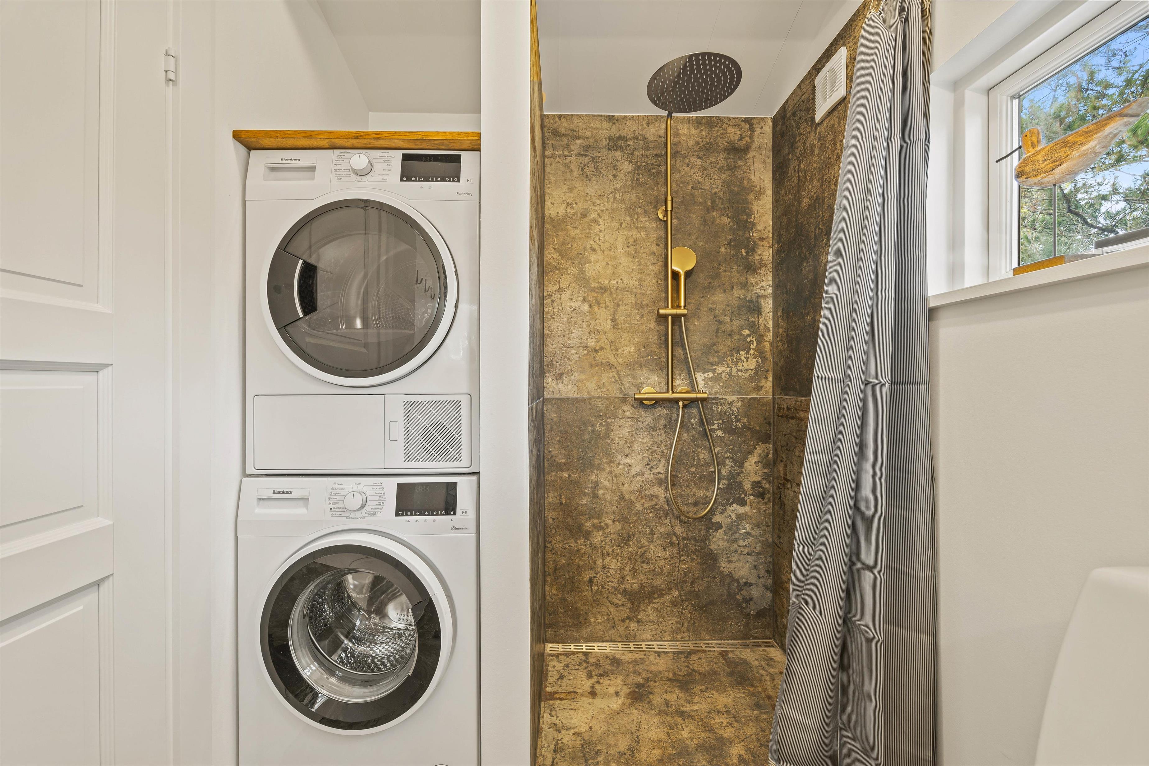 Feriehuset har i alt tre smukke soveværelser, som alle er indrettet med dobbeltsenge. Her er der garanti for en god nats søvn i den smukke atmosfære. Badeværelset og gæstetoilettet er også blevet stilfuldt renoveret og skiller sig ud med deres moderne vintagestil. Feriehuset har også vaskemaskine og tørretumbler til jeres rådighed.