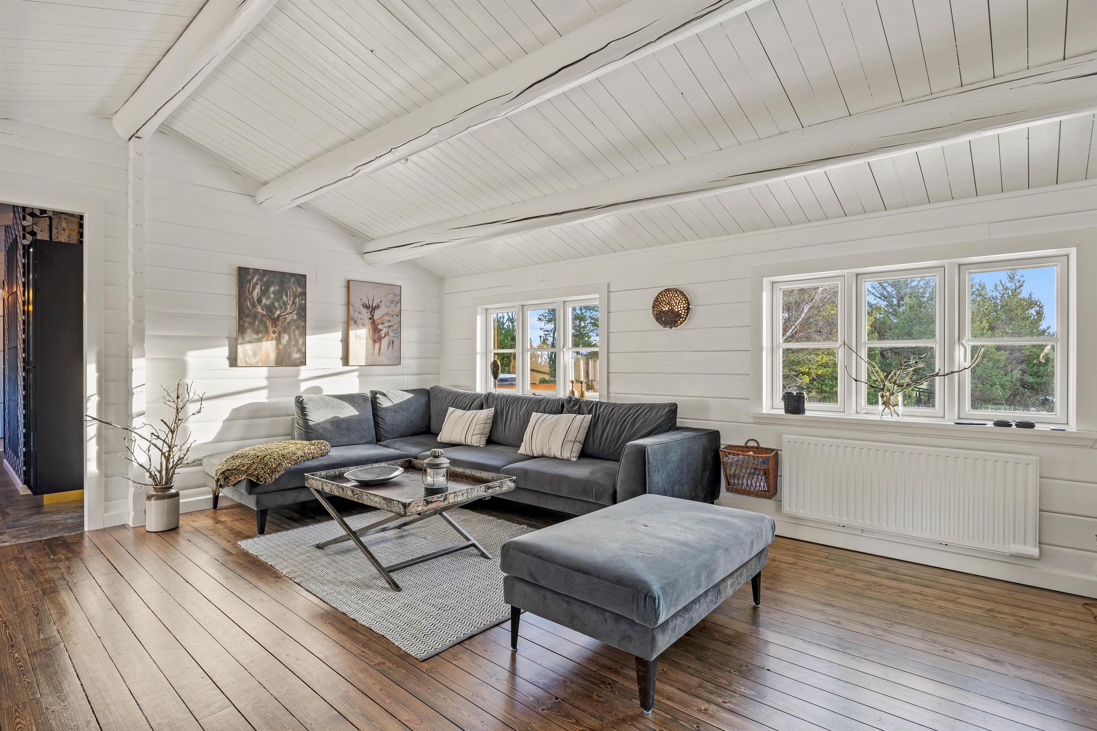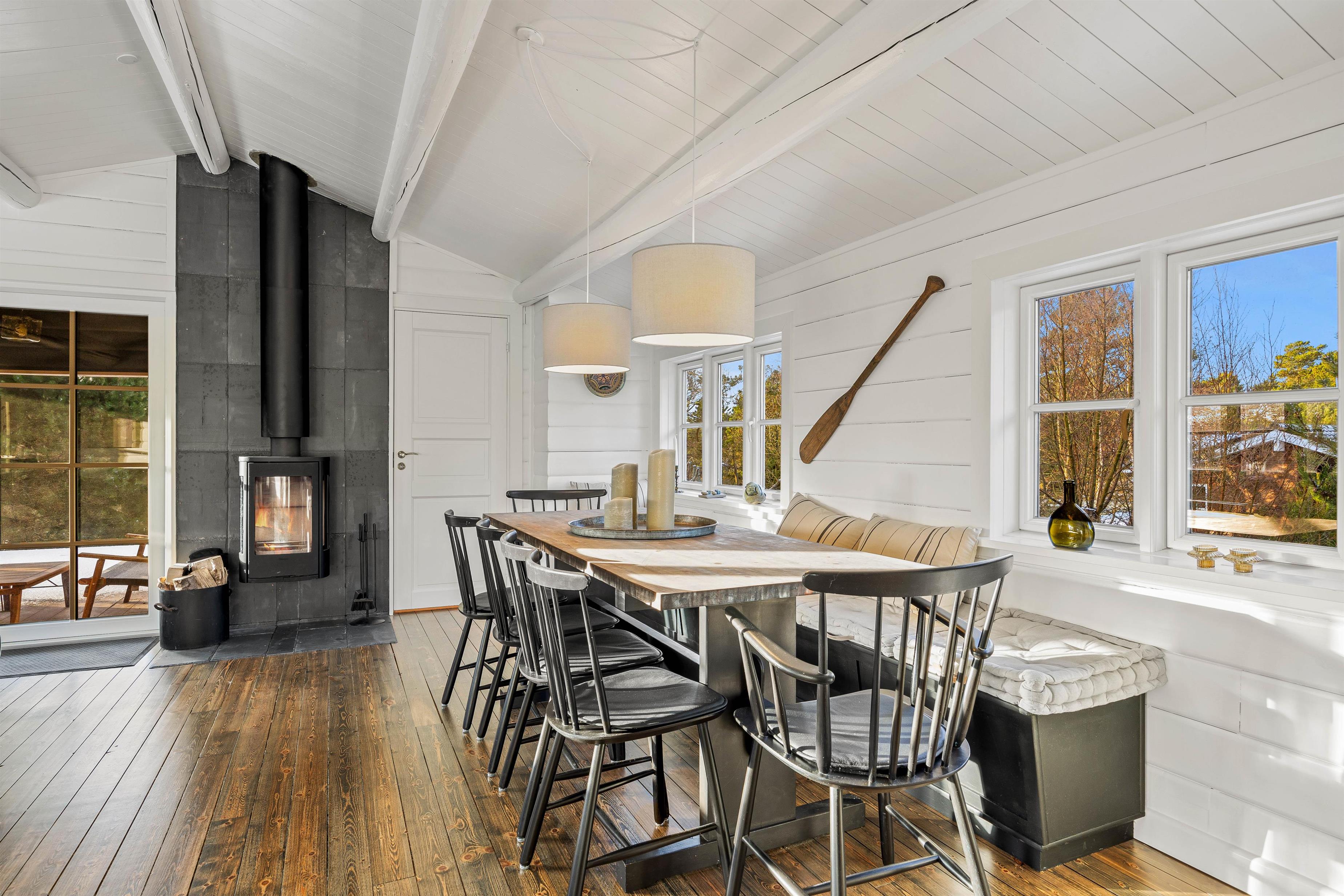 Den hyggelige stue med et stort sofaområde ligger side om side med spisebordet. Dette er det perfekte sted at tilbringe ferien sammen og gøre det rigtigt hyggeligt. Tænd op i brændeovnen, smæk fødderne op og nyd, at I ikke har nogen aftaler og bare lader dagen udfolde sig i jeres tempo.