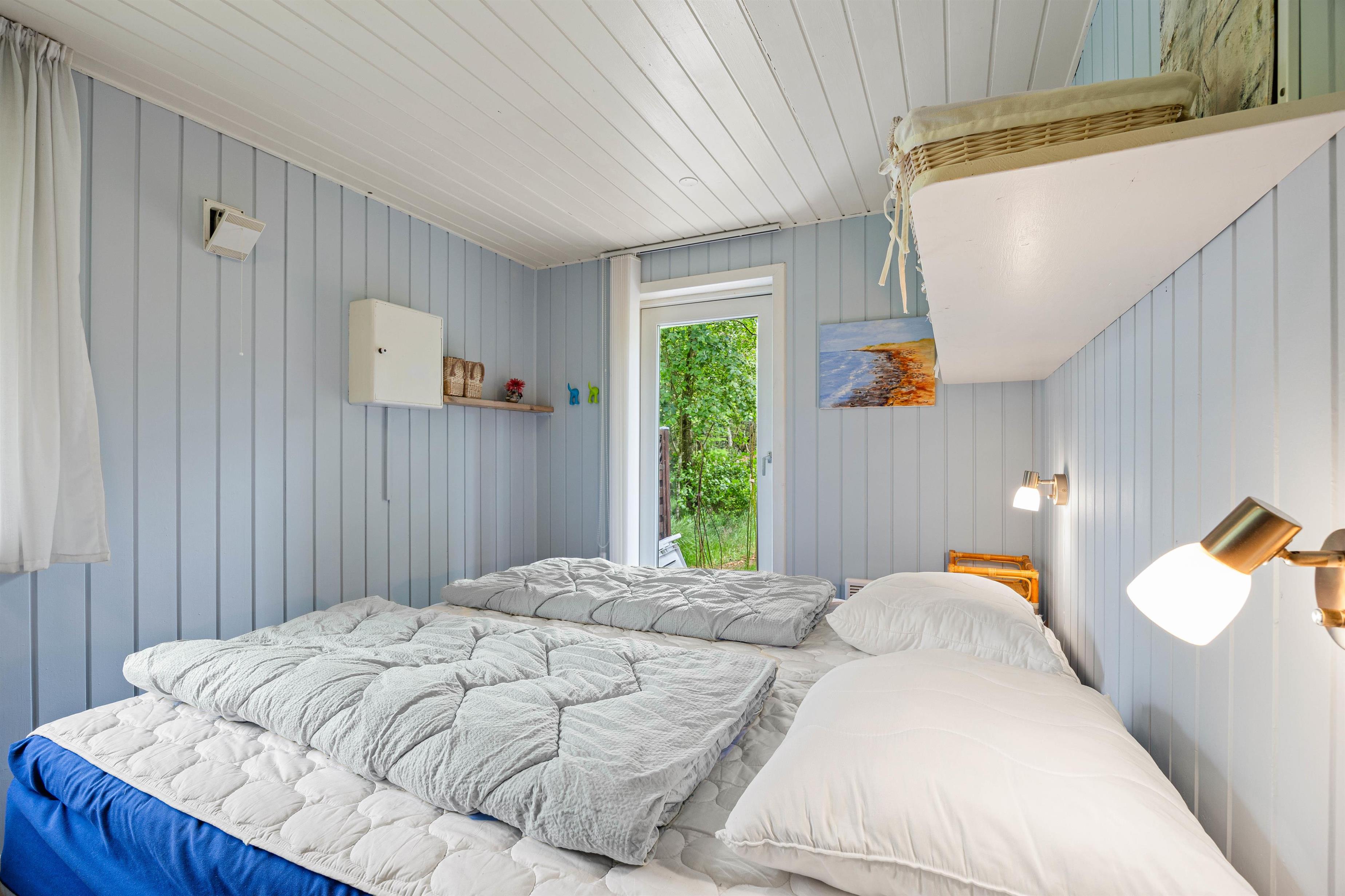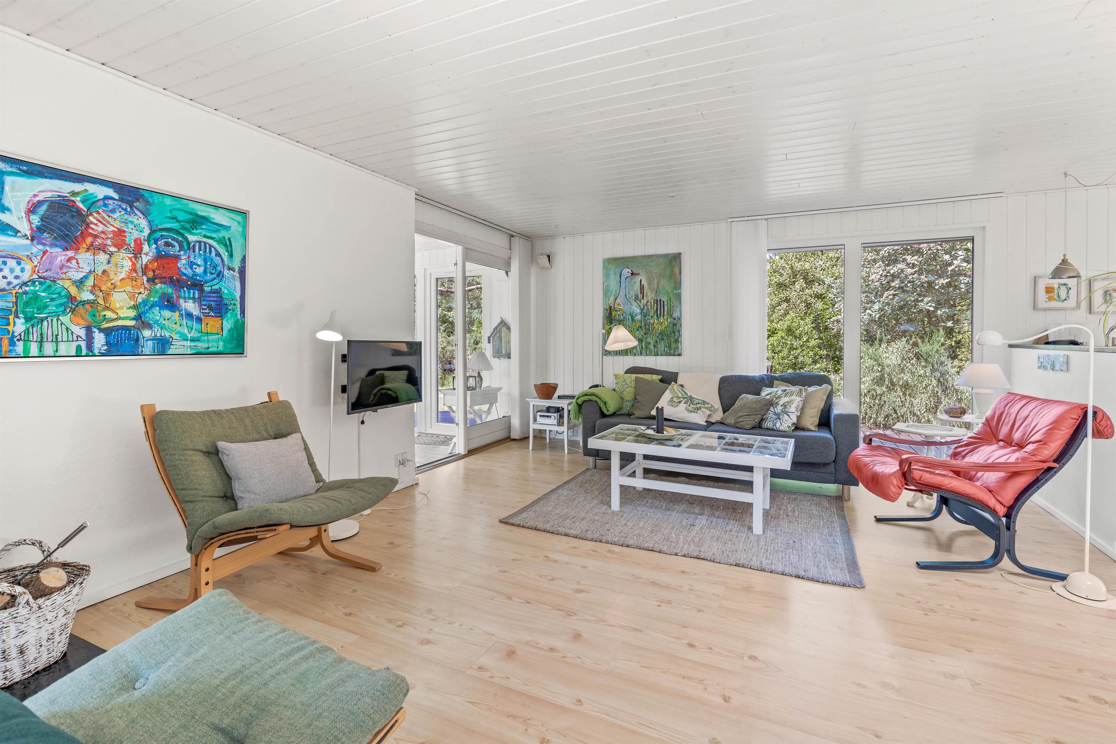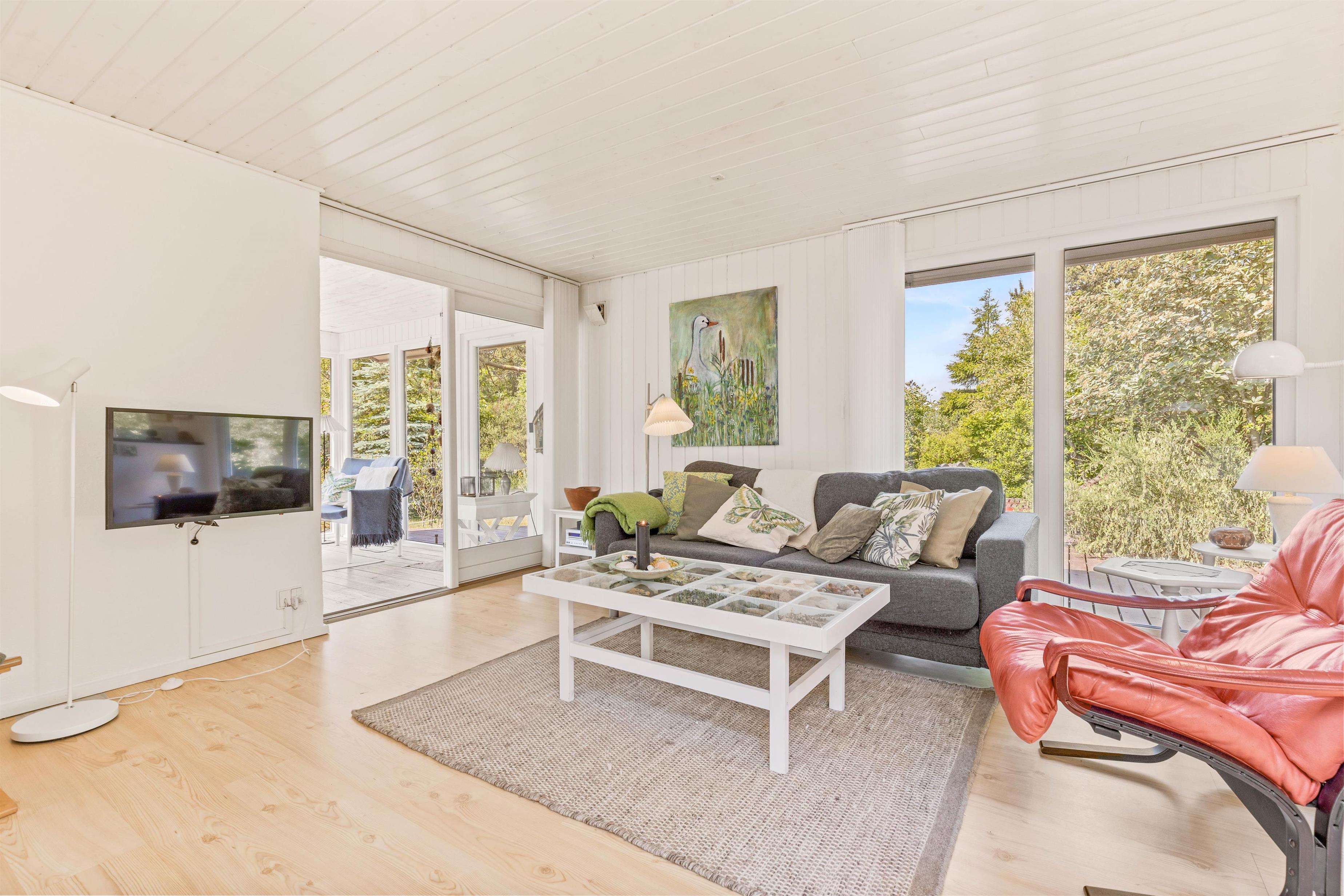Ekstra fin er den dejlige udestue med trægulvet – det perfekte sted at tanke lys og slappe af i læ og varme hele året rundt, imens man har udsigt til den skønne naturgrund. Skal man have en lille morfar eller vil ikke forstyrres midt i en spændende krimi, så er der mulighed for at trække sig tilbage til gæsteværelset med sovesofaen eller et af de to lyse soveværelser med dobbeltseng.