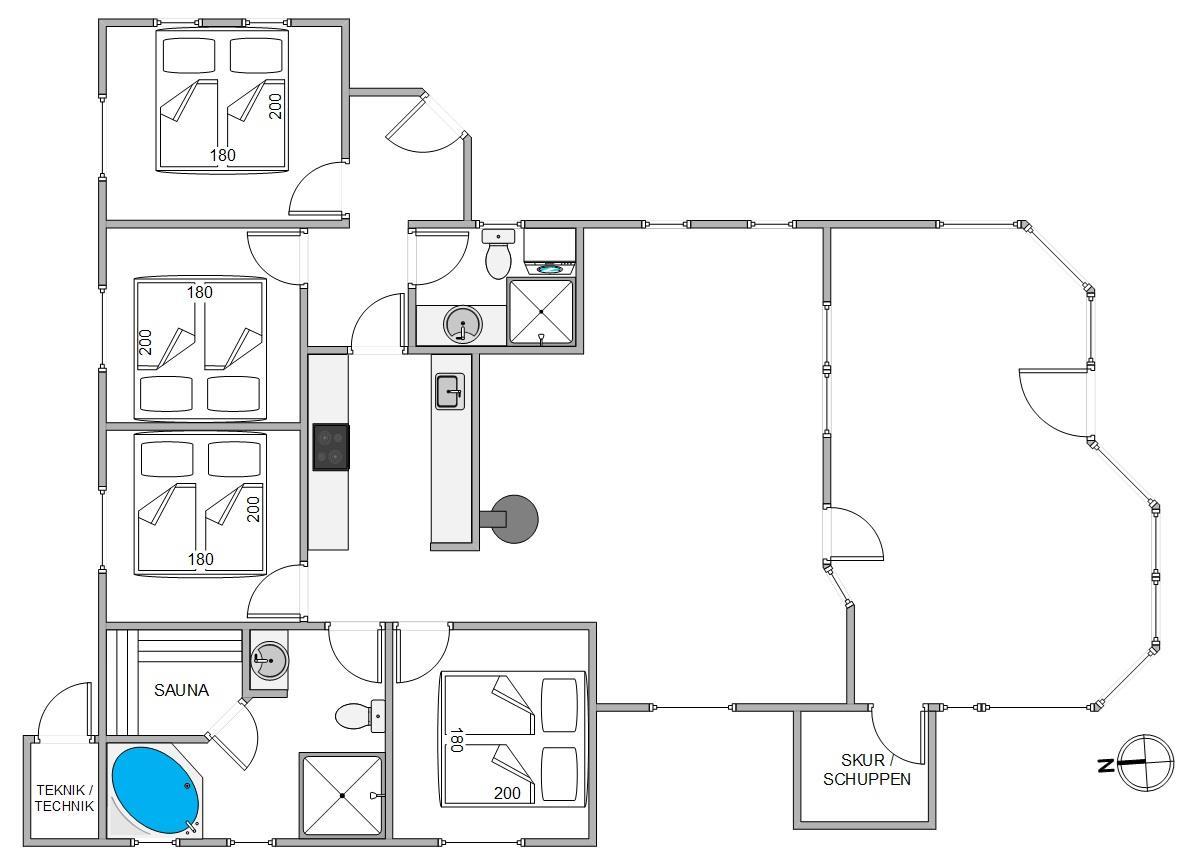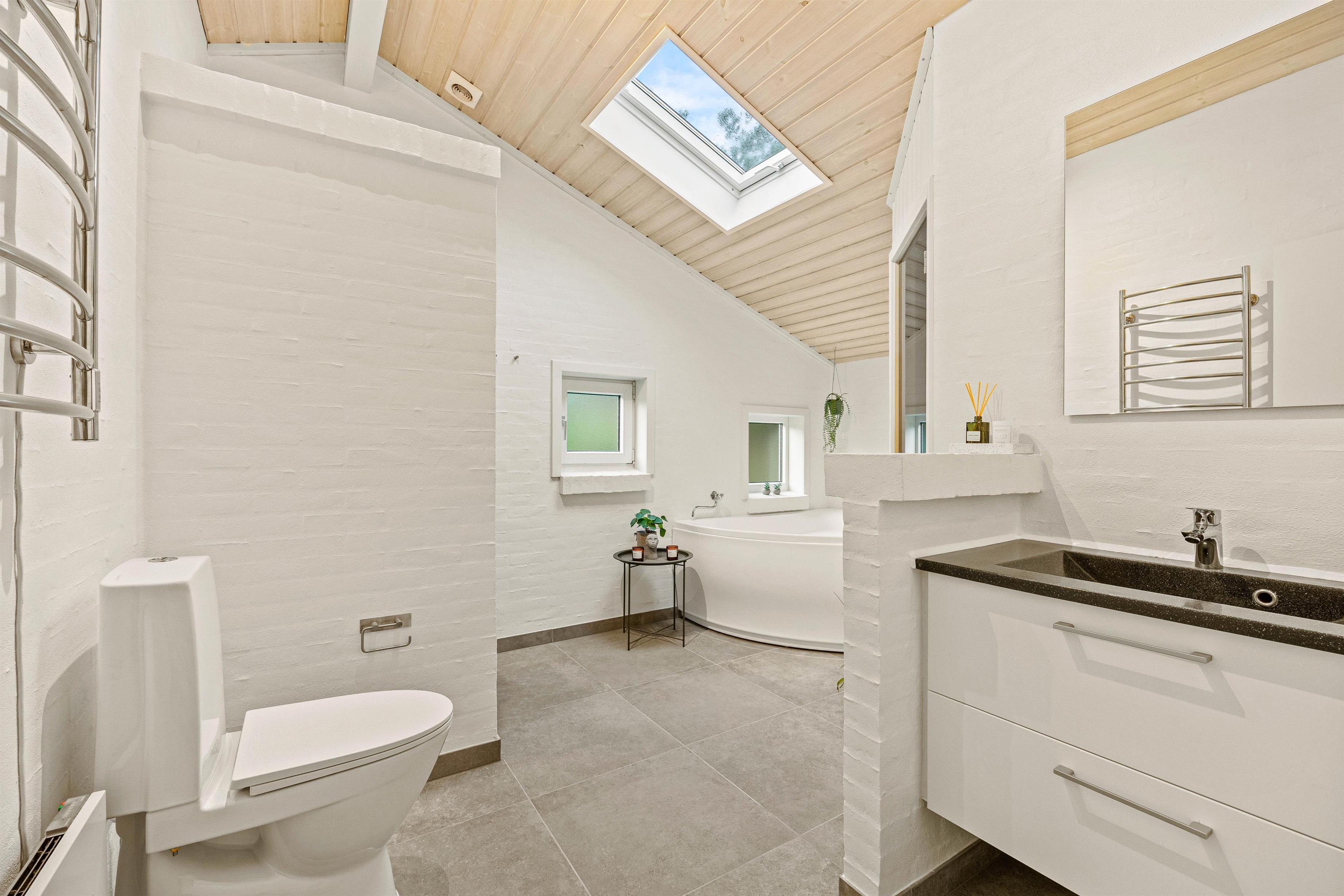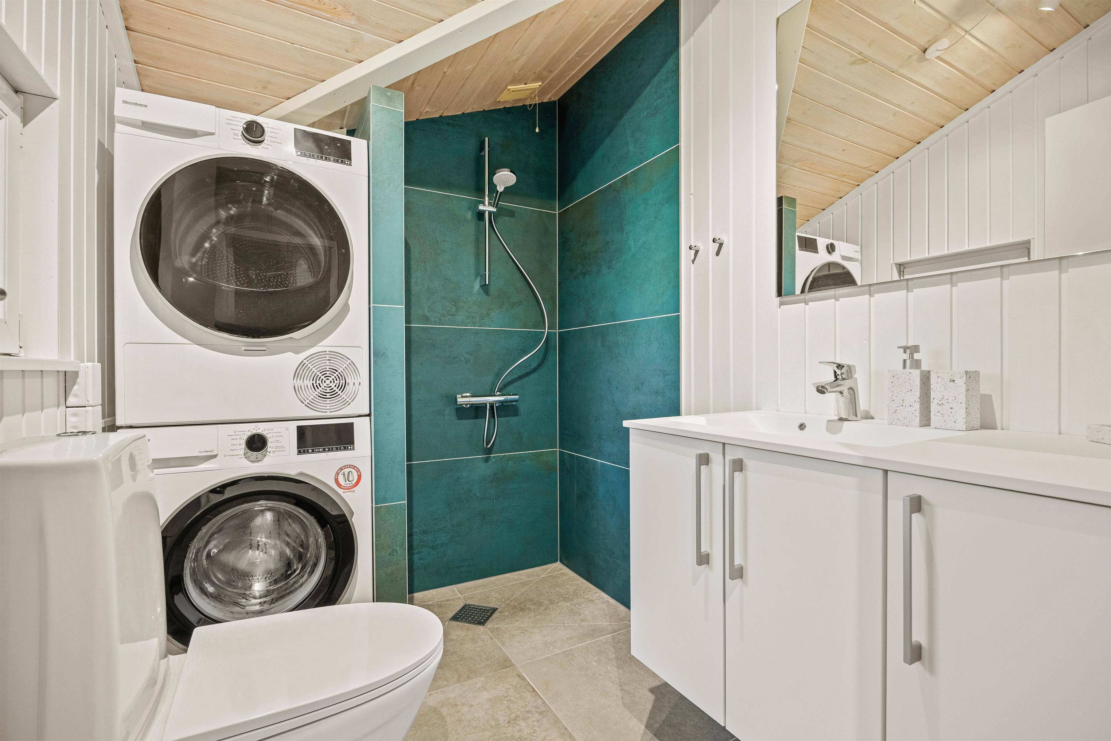Sommerhuset byder ikke kun på rummelighed, men også moderne faciliteter. Fra en effektiv varmepumpe, som holder temperaturen i sommerhuset behagelig året rundt, til praktiske hjælpemidler som opvaskemaskine, vaskemaskine og tørretumbler, der gør det nemt at klare de praktiske gøremål under opholdet.